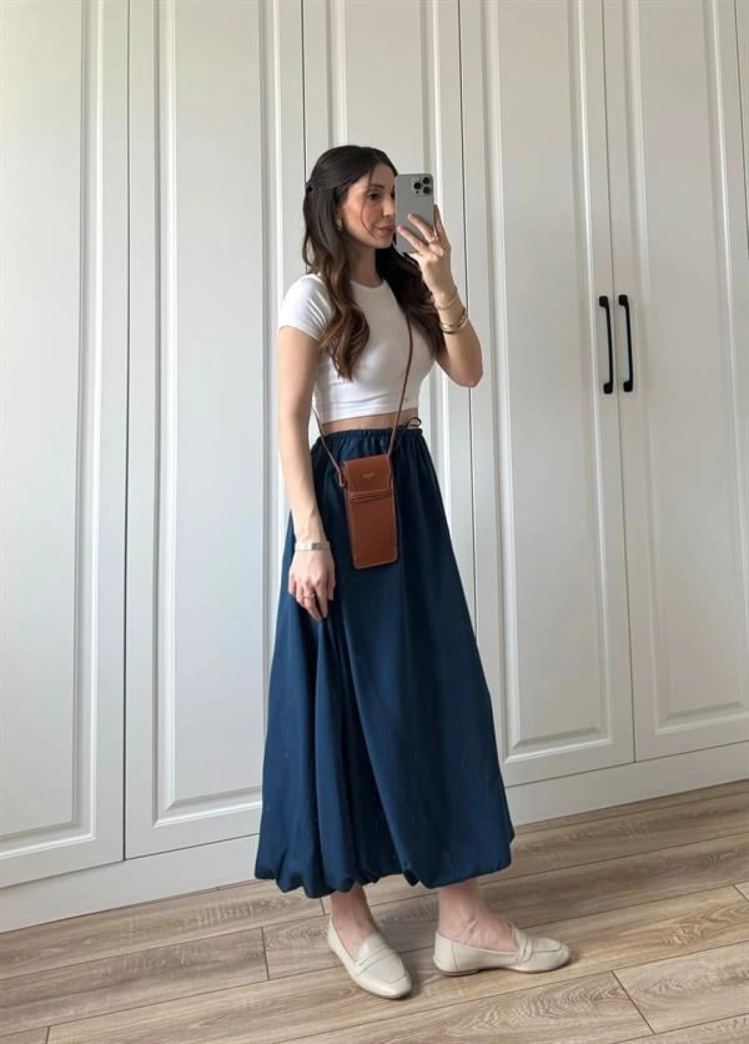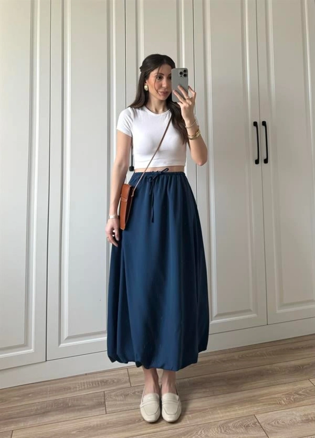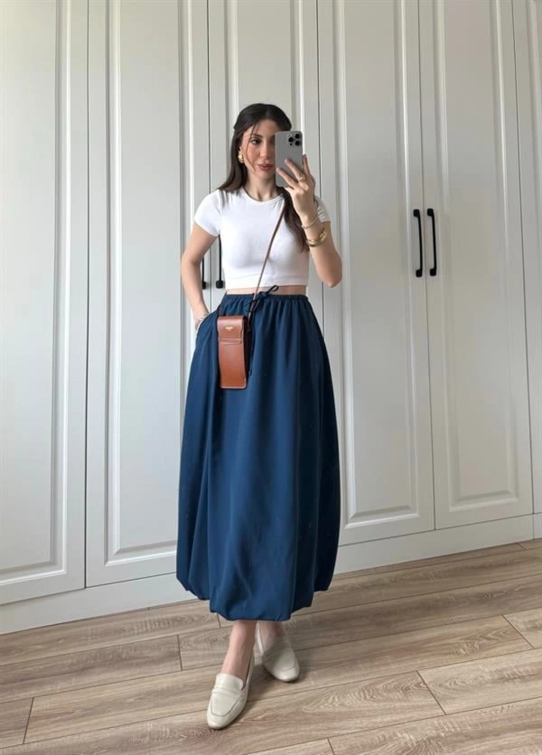 Tensel Beli Lastikli Lacivert Kilos Etek