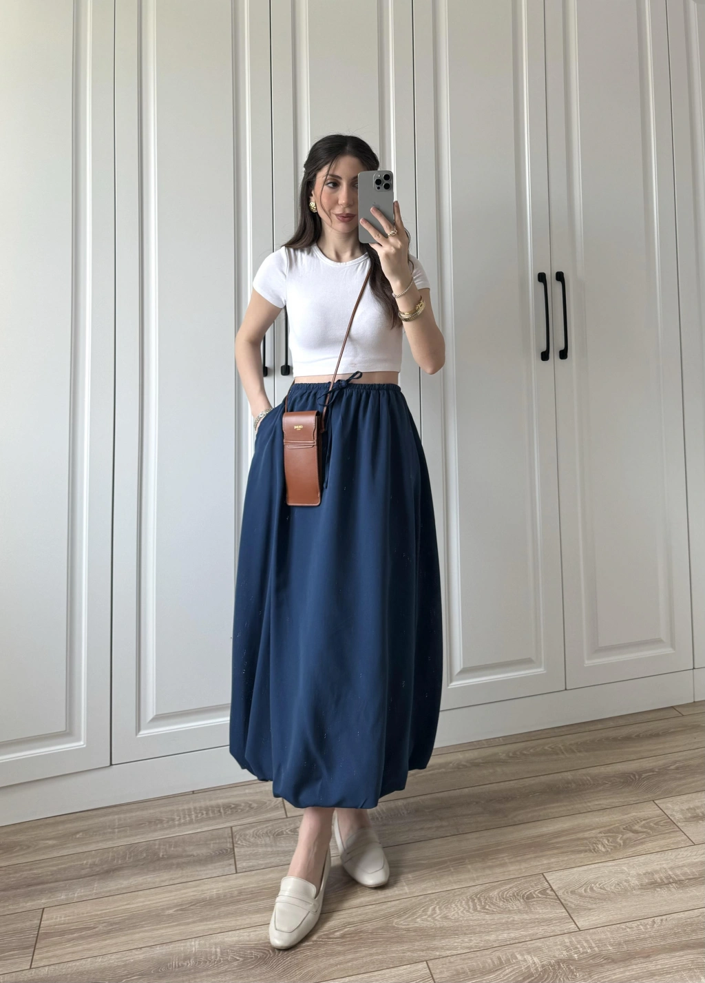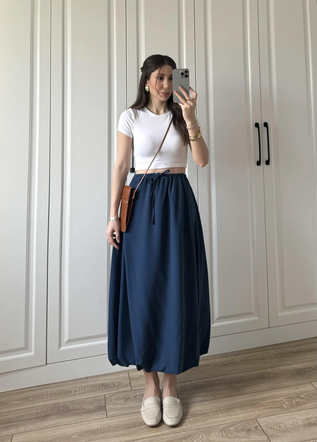 Holla Astarlı Kırışık Tarçın Tül Etek