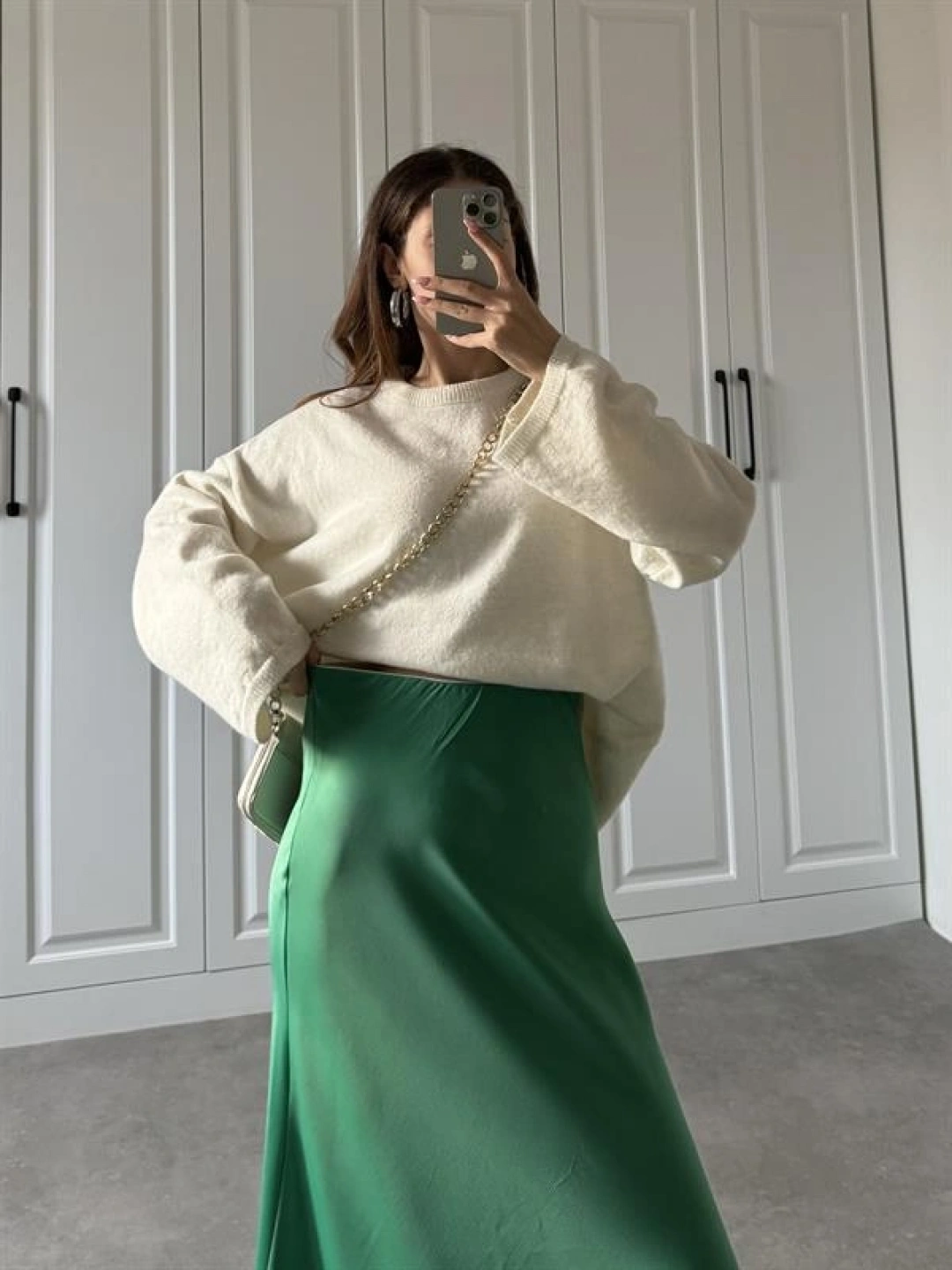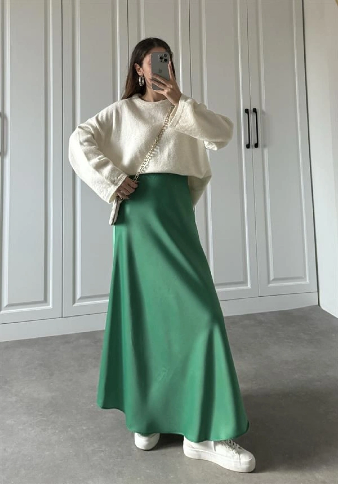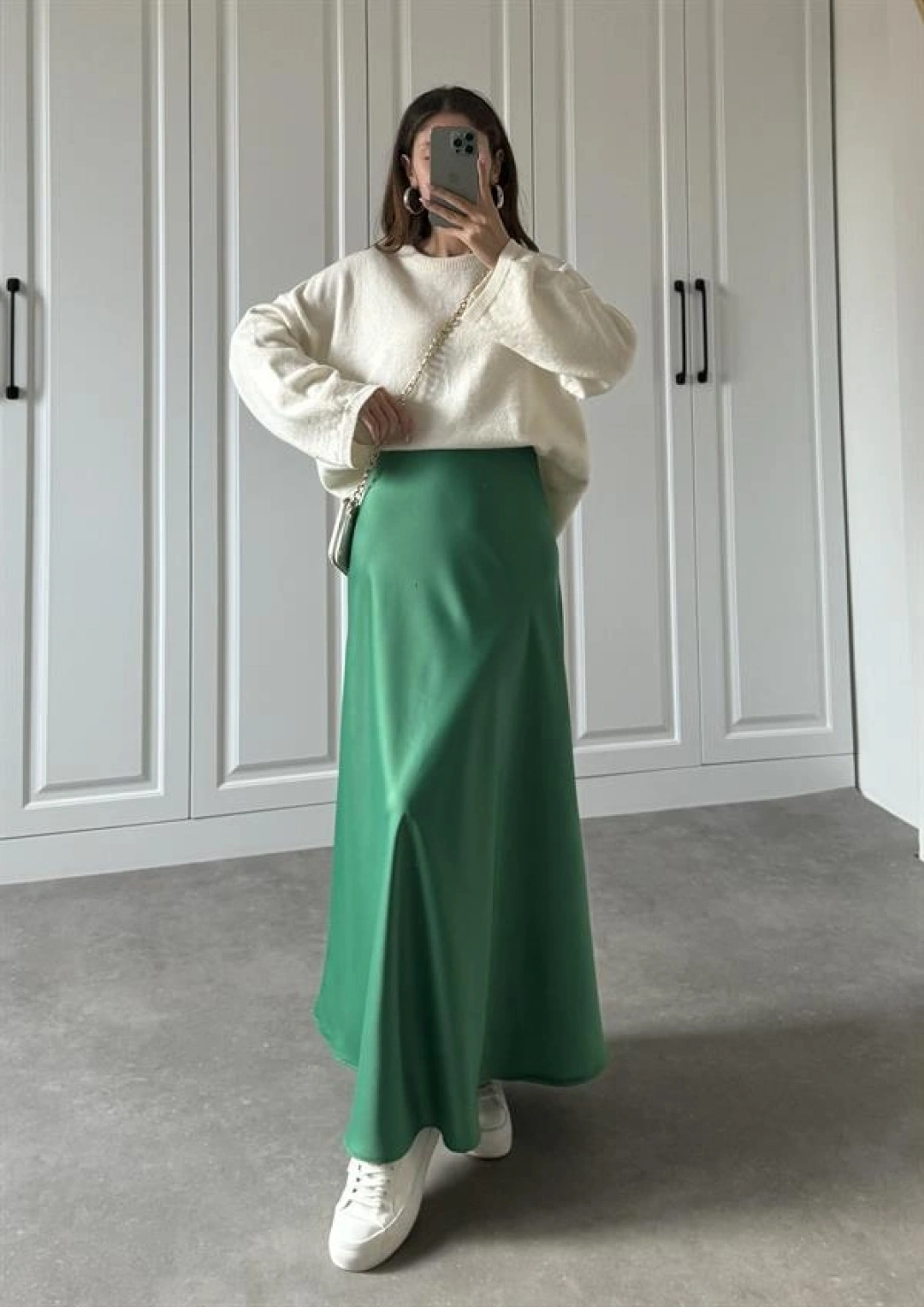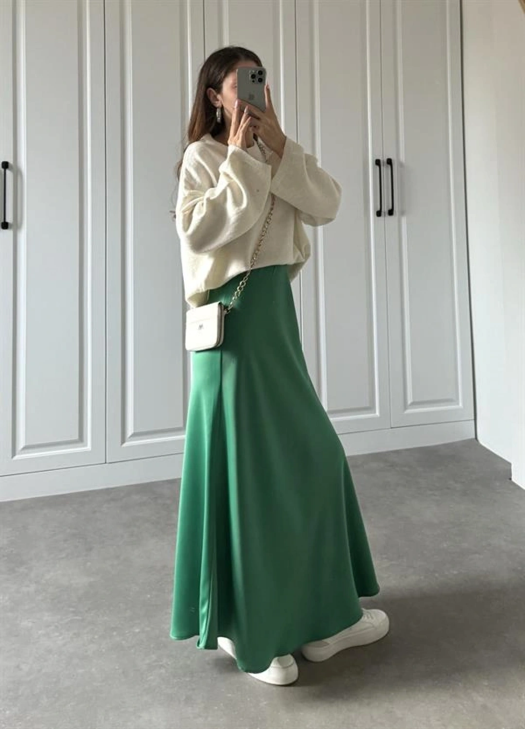Maxi Boy Yeşil Saten Etek