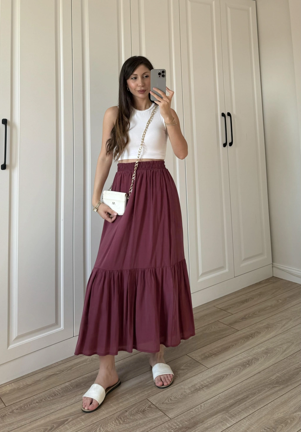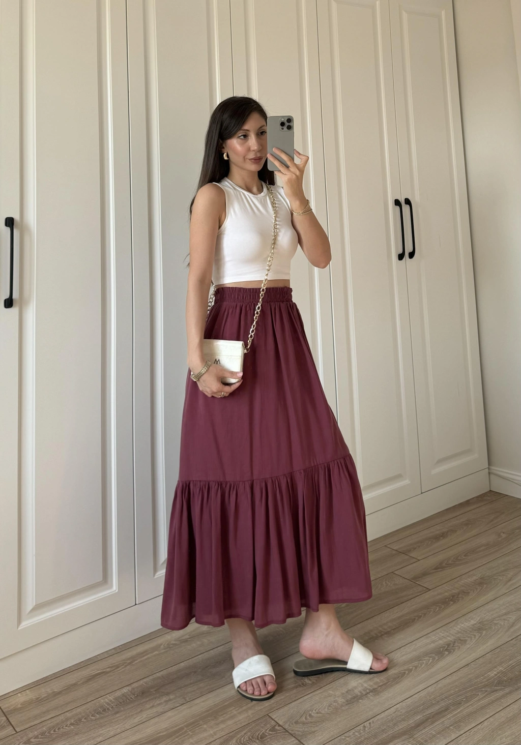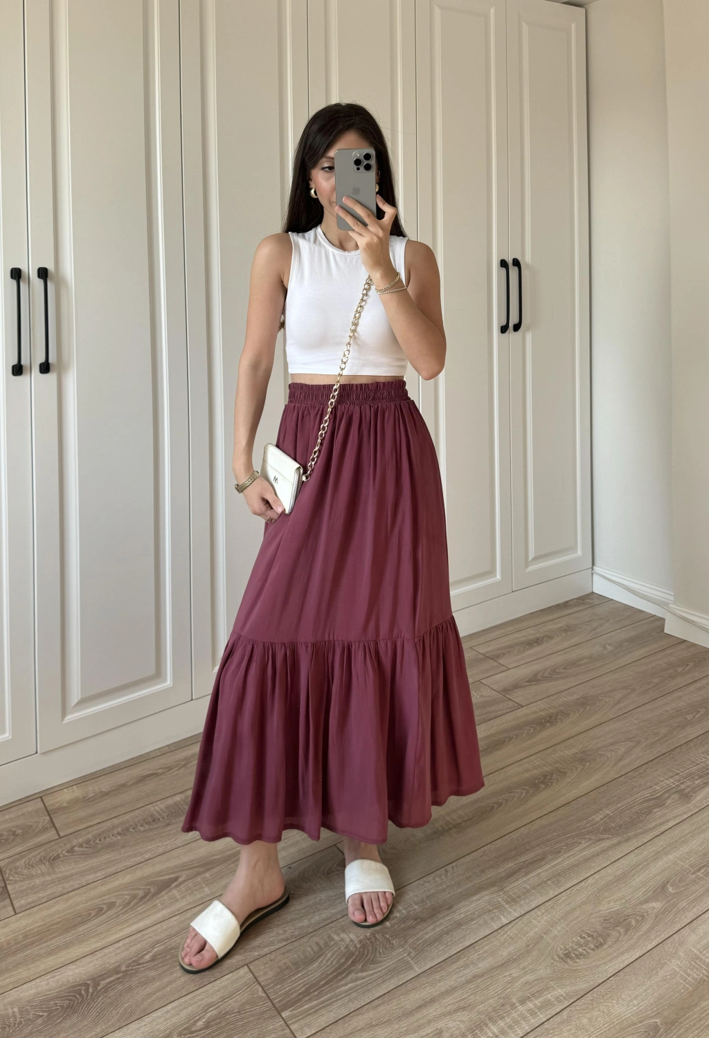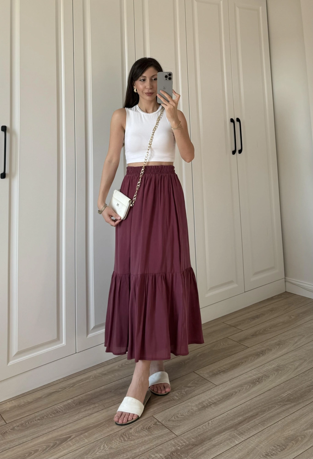 Midi Boy Şifon Astarlı Cappuccino Etek