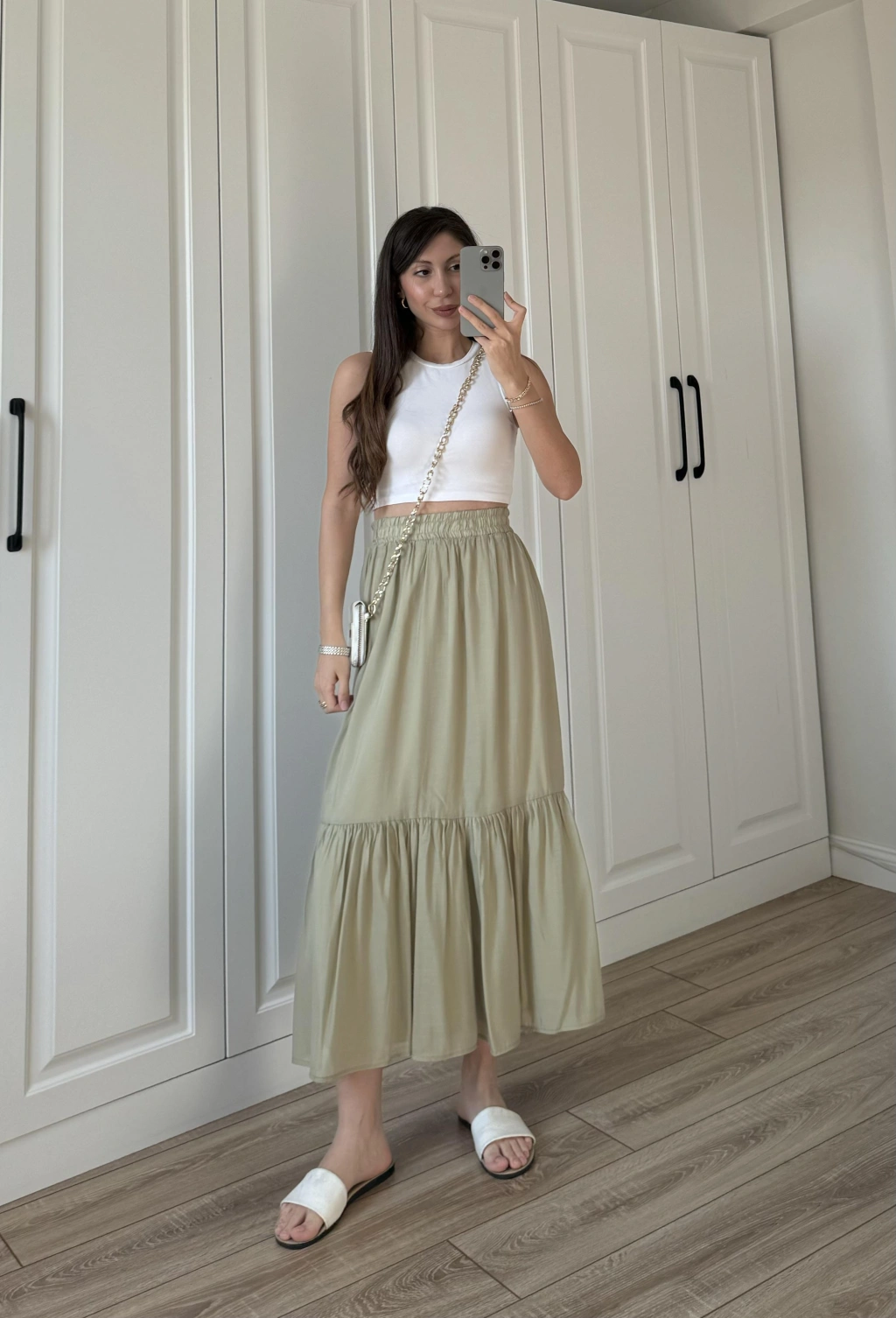 Midi Boy Şifon Astarlı Cappuccino Etek