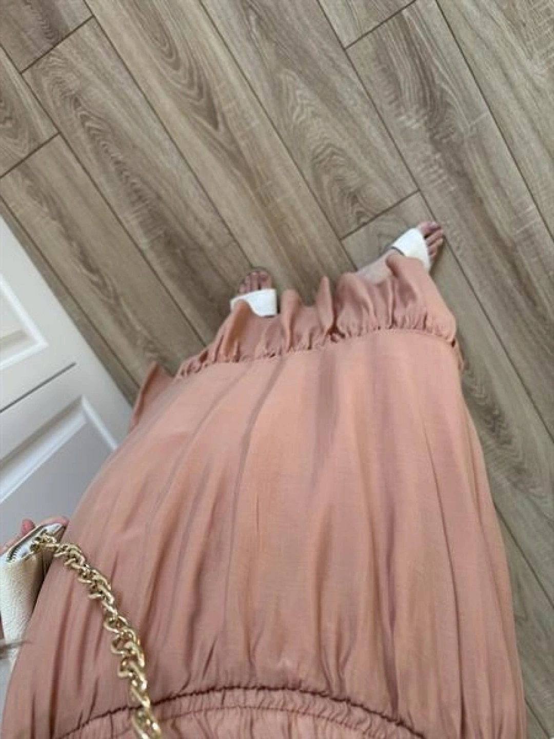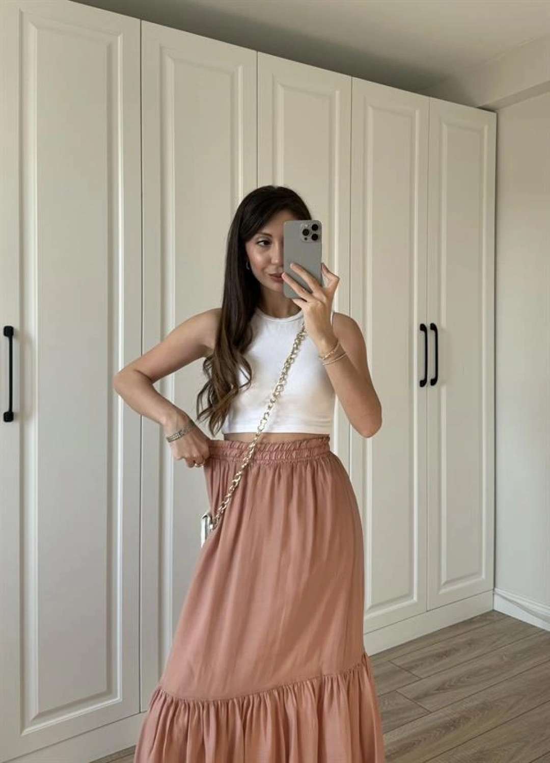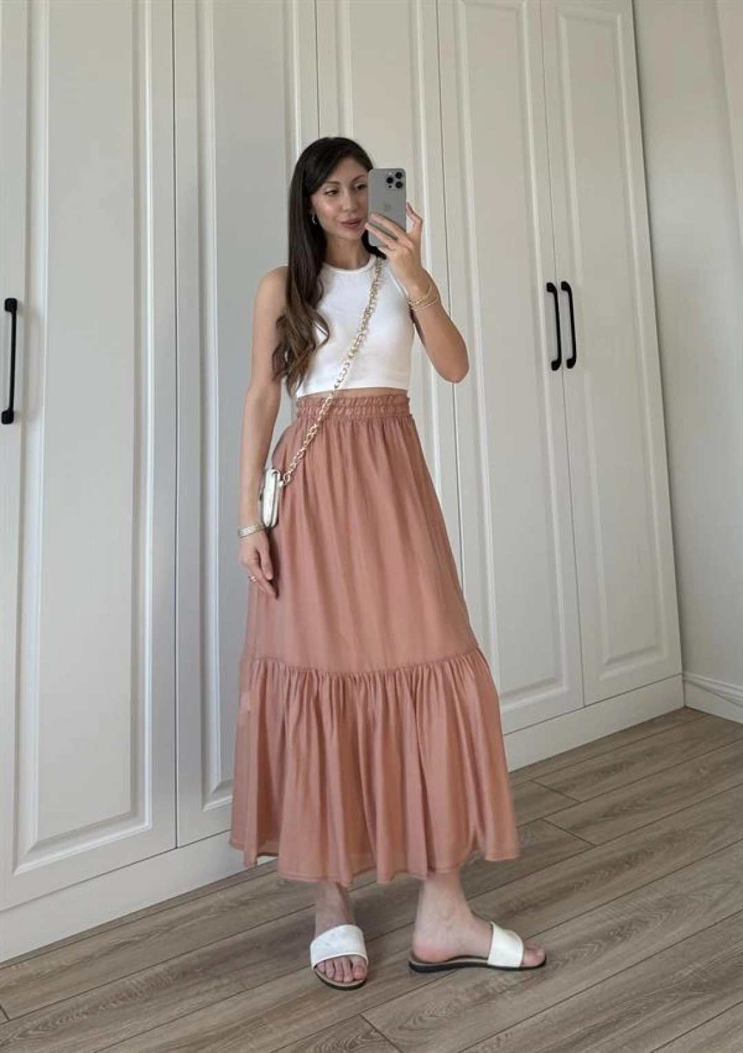 Beli Lastikli Tarçın Tensel Kırışık Etek