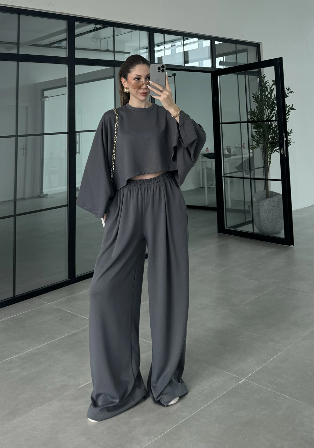 Modal Kumaş Yarasakol Oversize Antrasit Takım