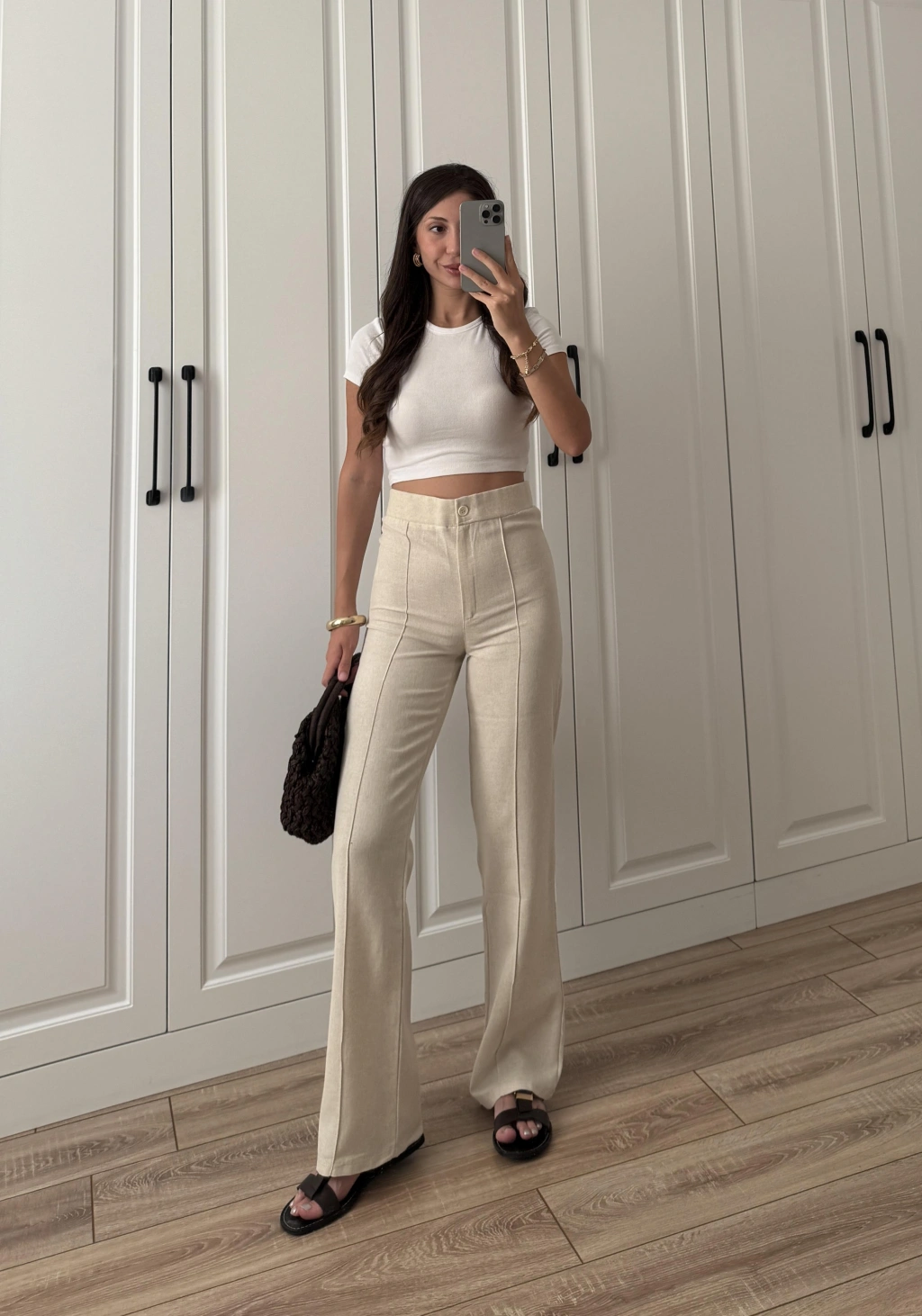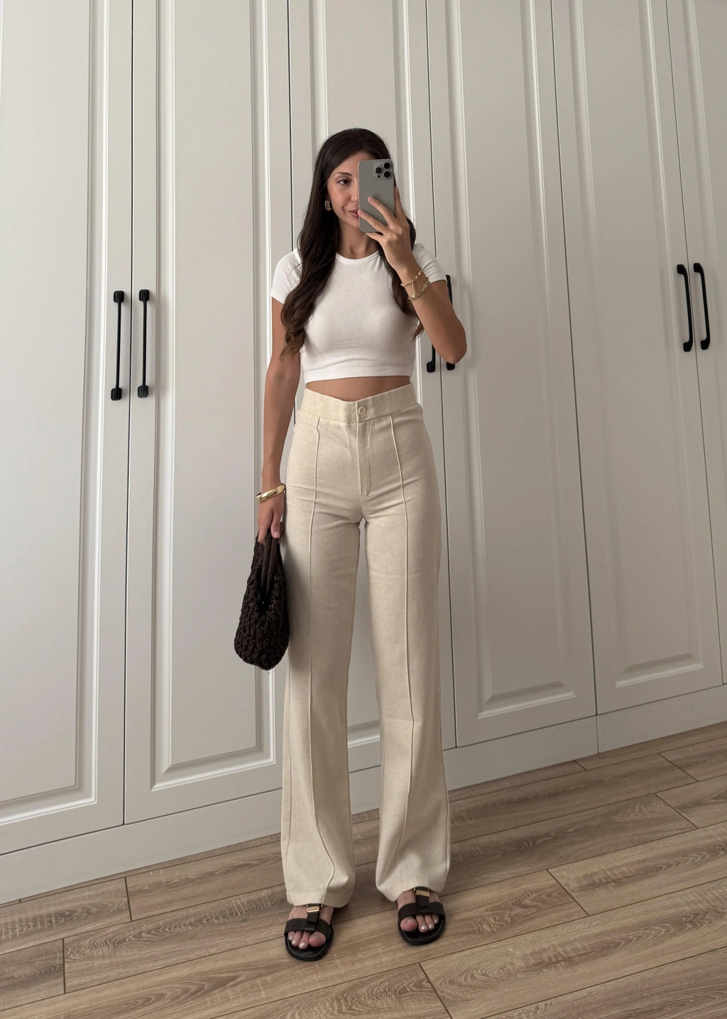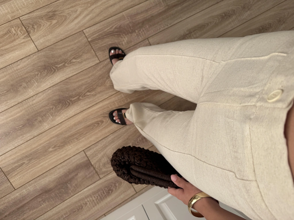 Nervür Dikişli Yükselbel Keten Pantolon