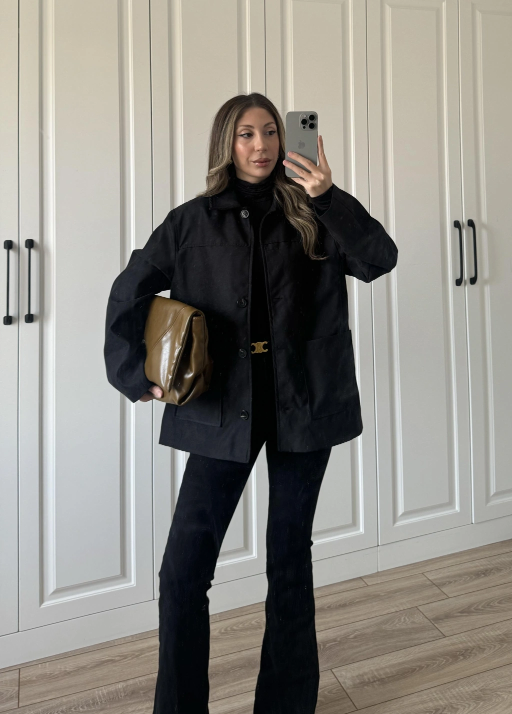 Kuşaklı Astarlı Siyah Kapitone Ceket