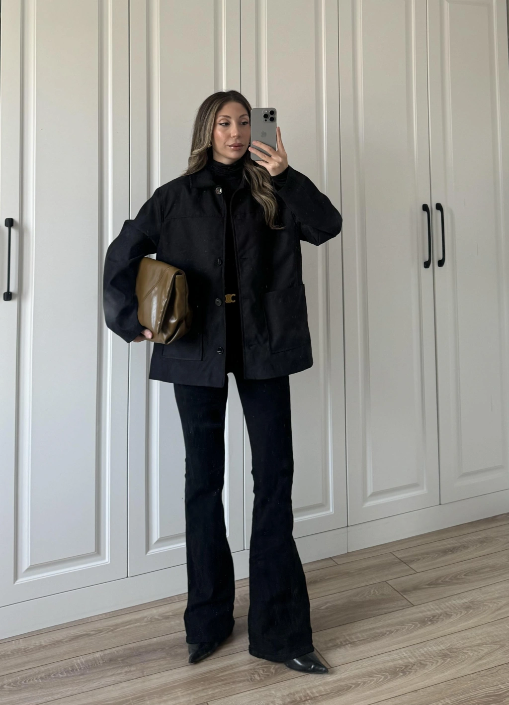 Dik Yaka Astarlı Premium Siyah Deri Ceket