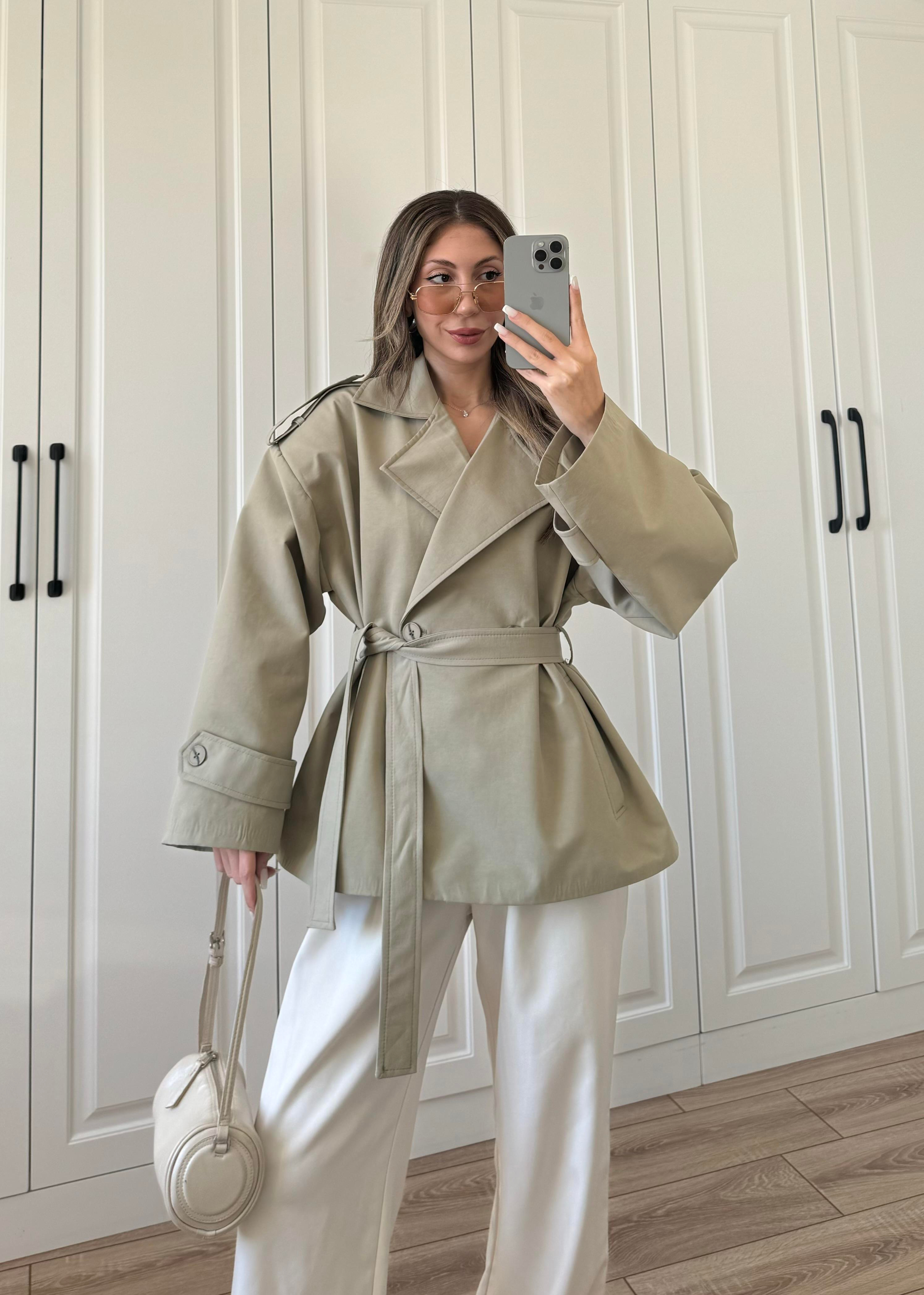 Nuve Premium Astarlı Nude Yeşili Trençkot