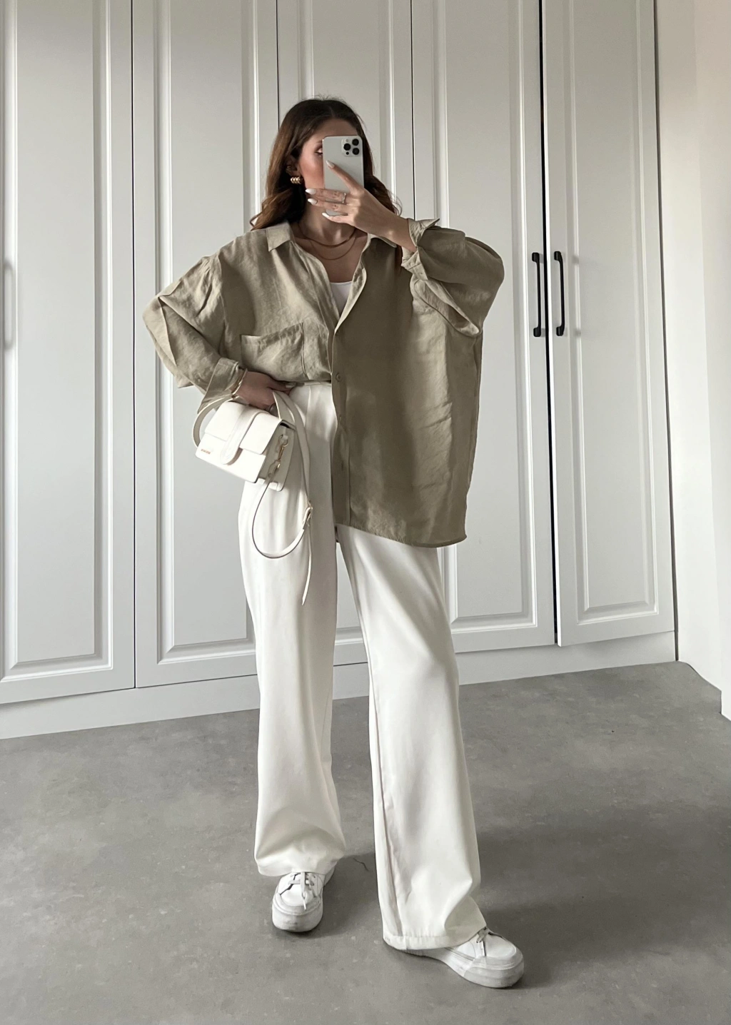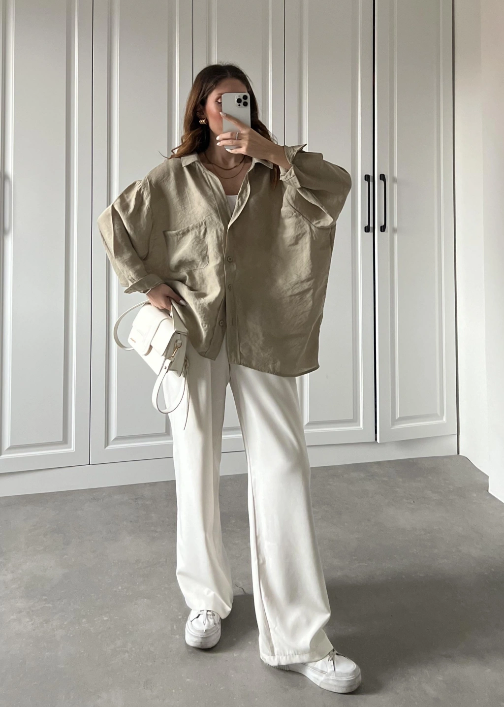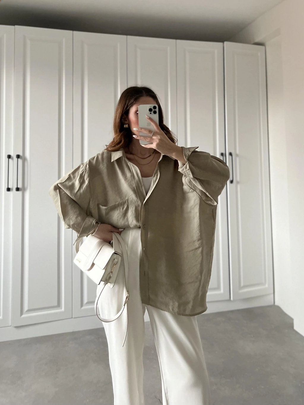Olive Oversize Tensel Gömlek