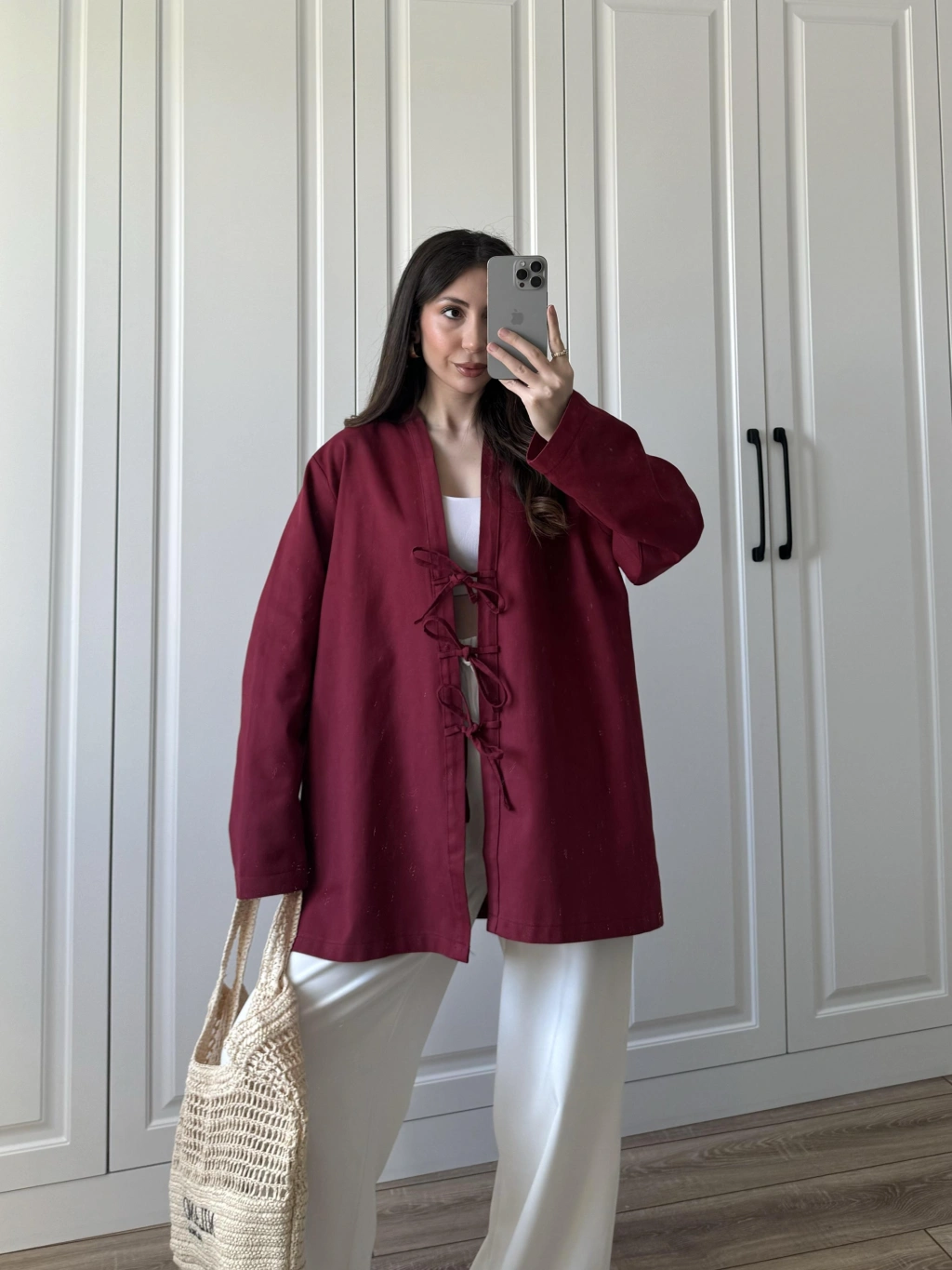 Taş Yandan Bağlamalı Tensel Kimono Ceket