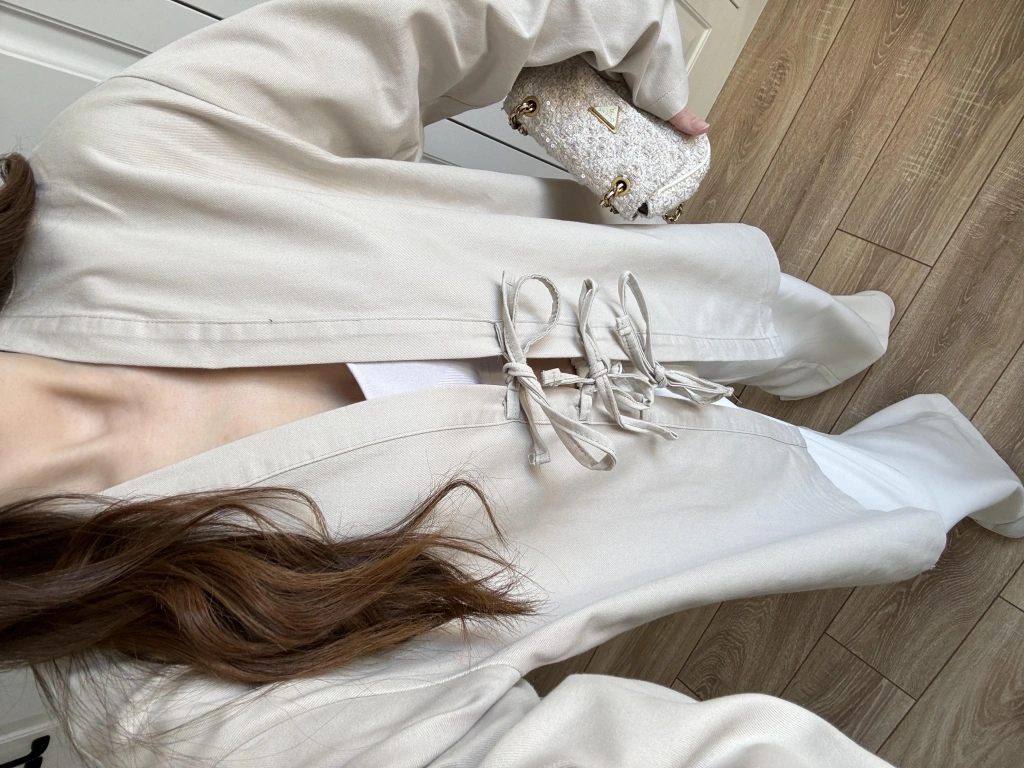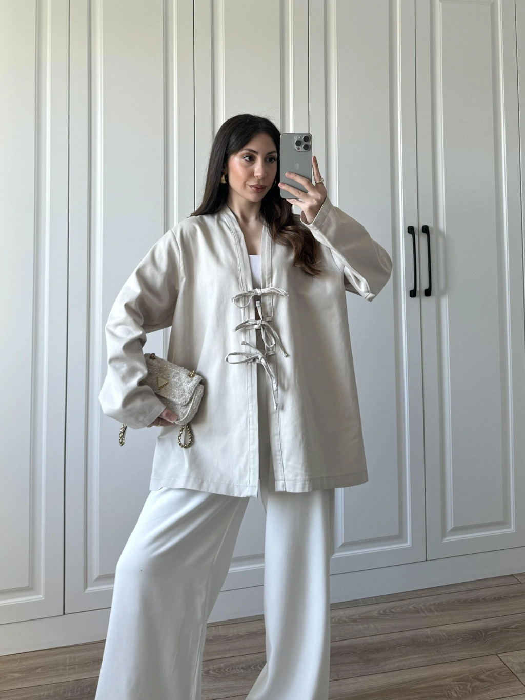 Önü Bağlamalı Beyaz Keten Kimono
