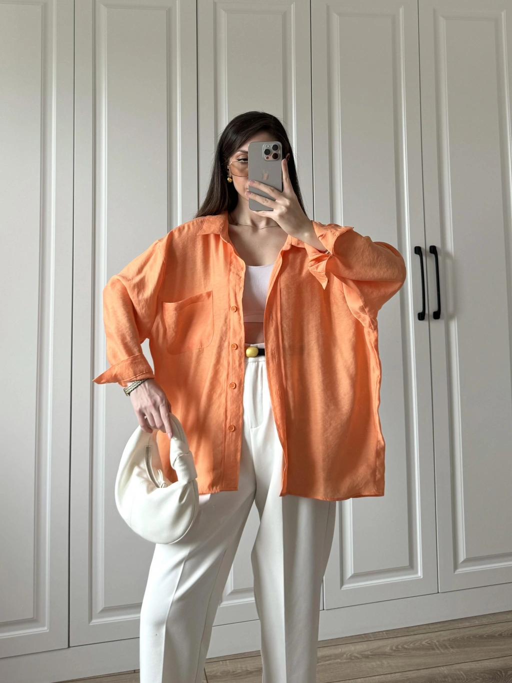 Orange Oversize Tensel Gömlek
