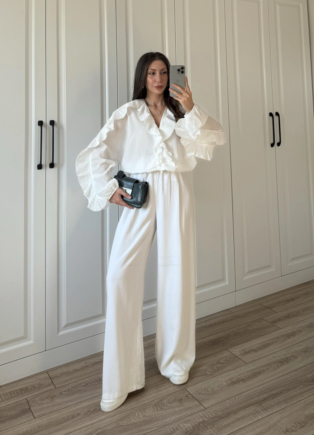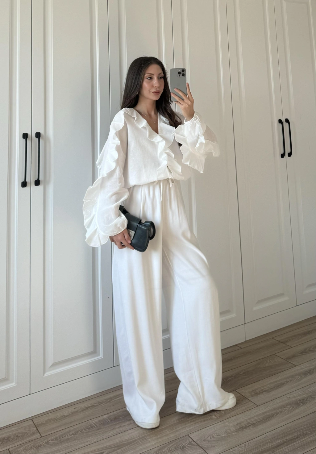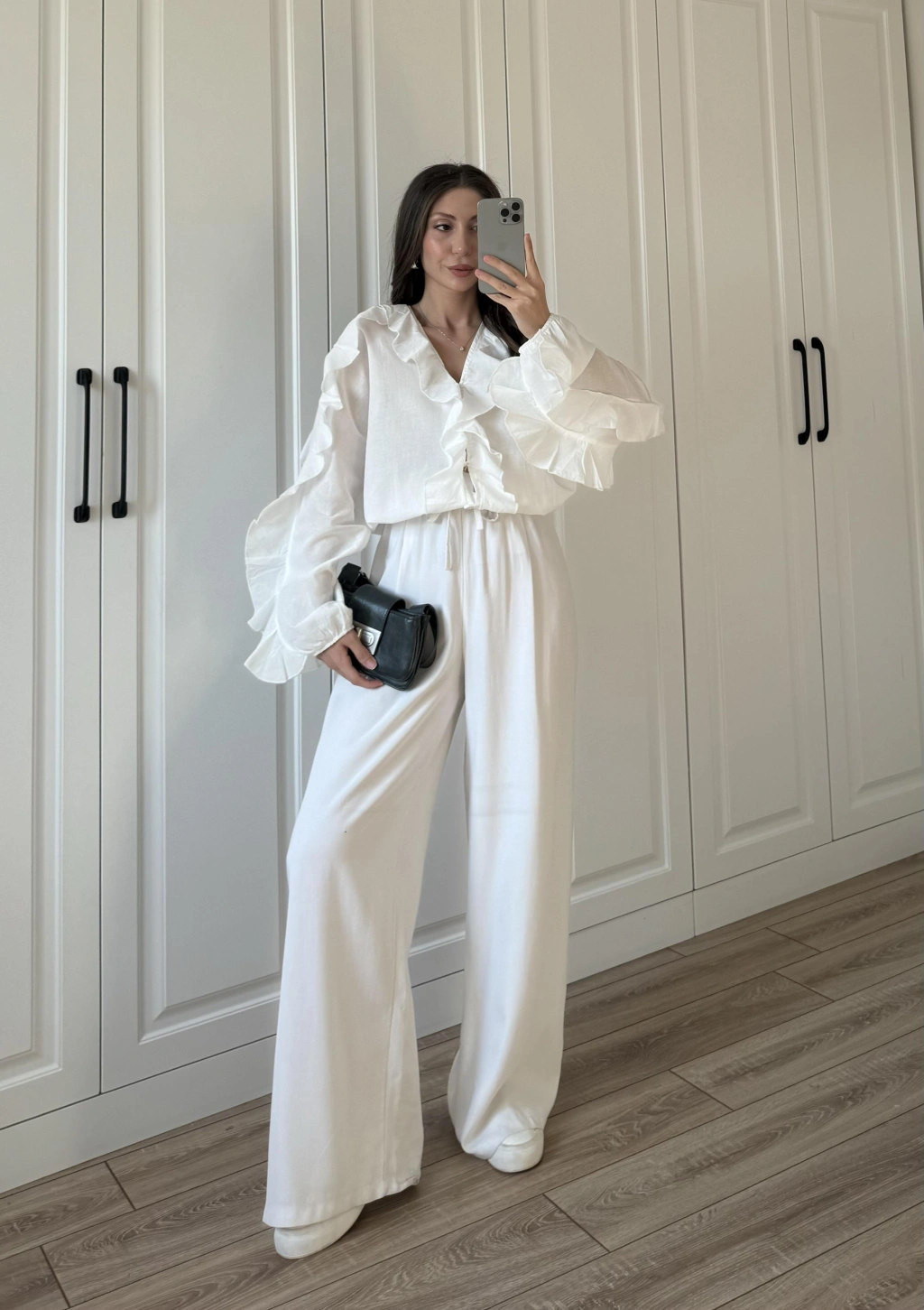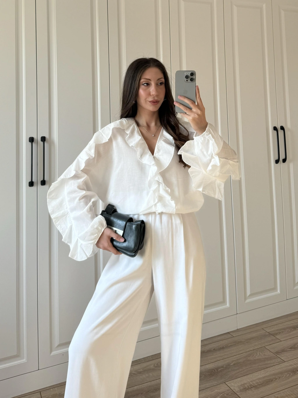 Orj Marka Wien Volanlı Premium Beyaz Gömlek