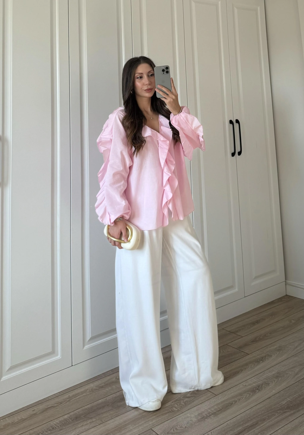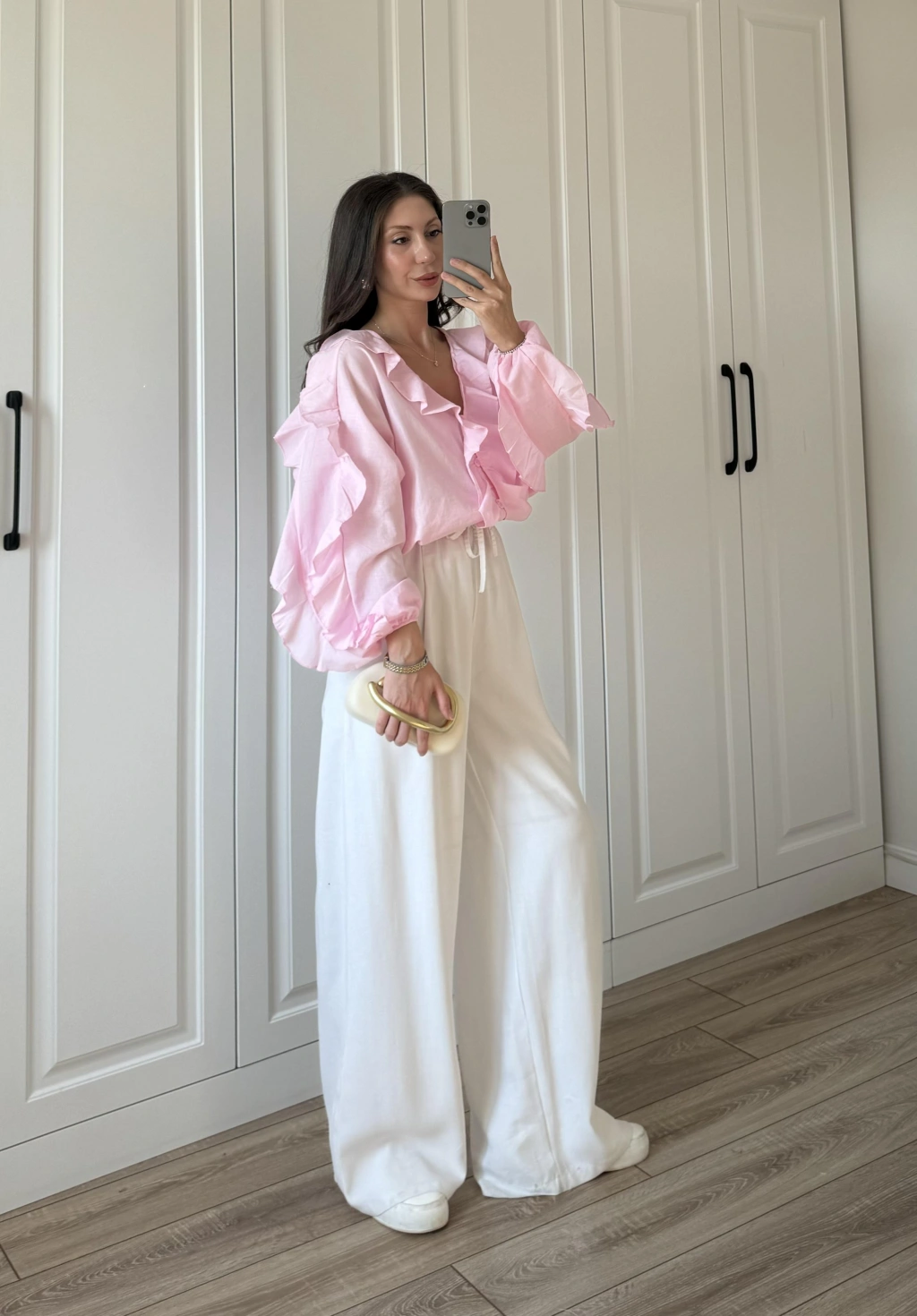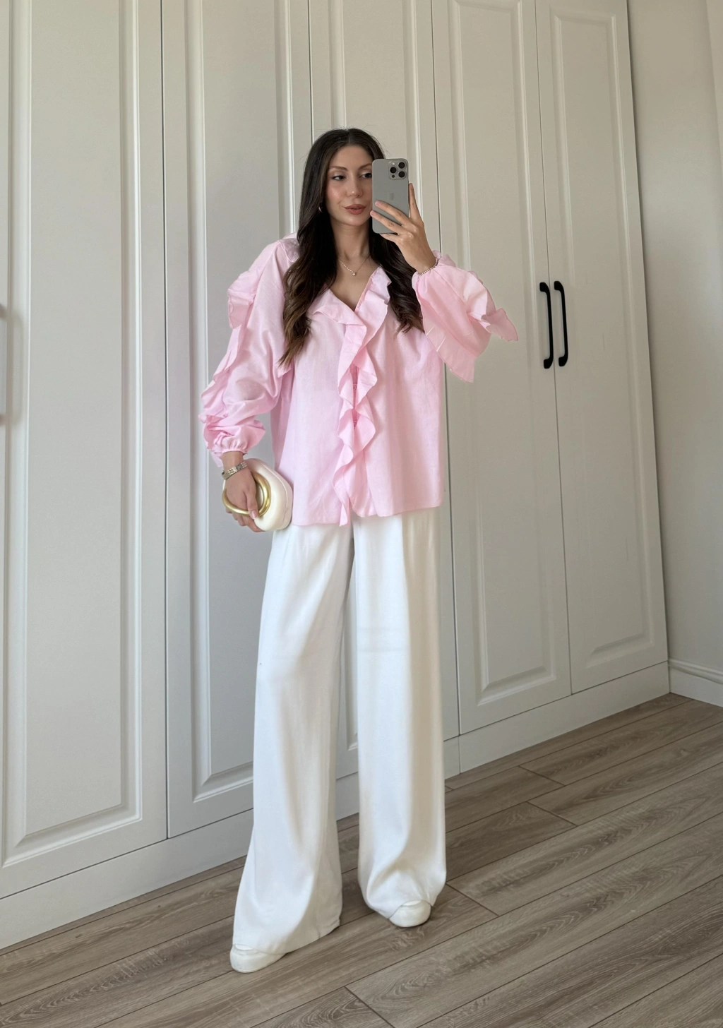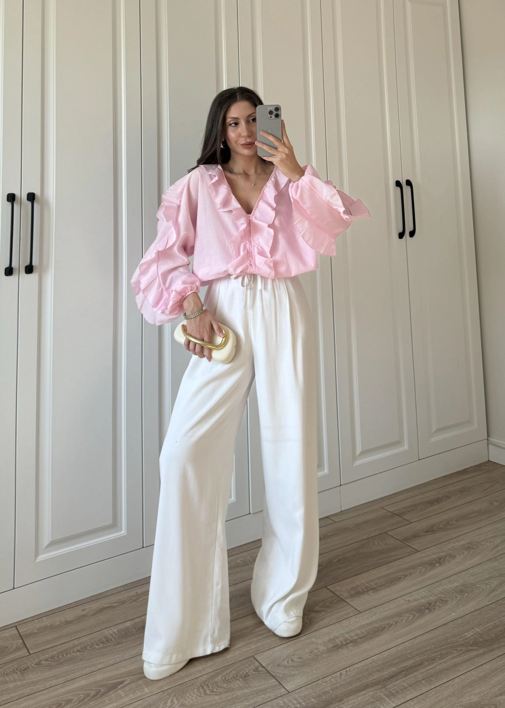 Kolları Volanlı Pinterest Viral Gri Gömlek
