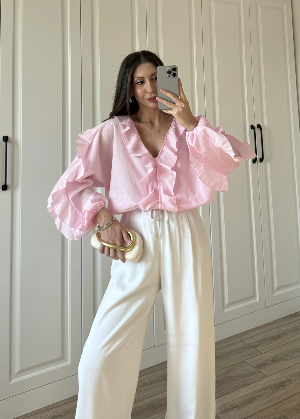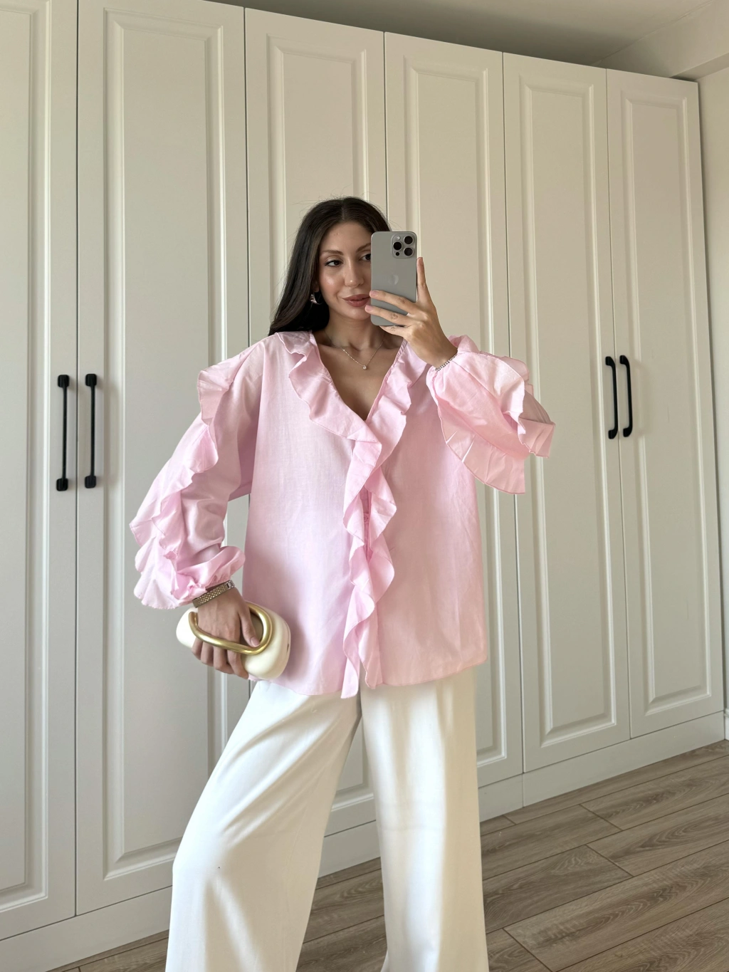 Orj Marka Wien Volanlı Premium Pembe Gömlek