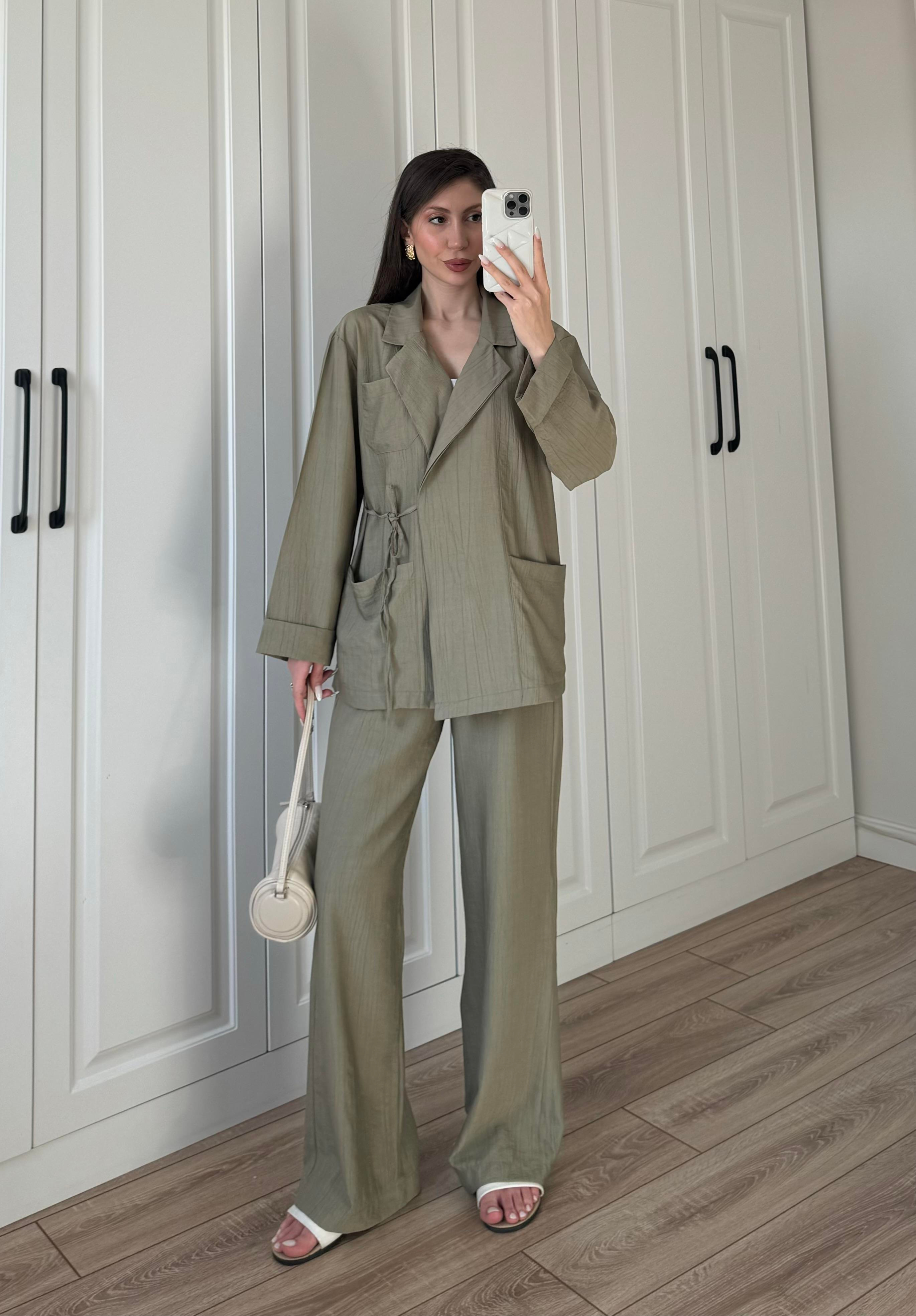 Oslo İthal Yandan Bağlamalı Haki Kimono Takım