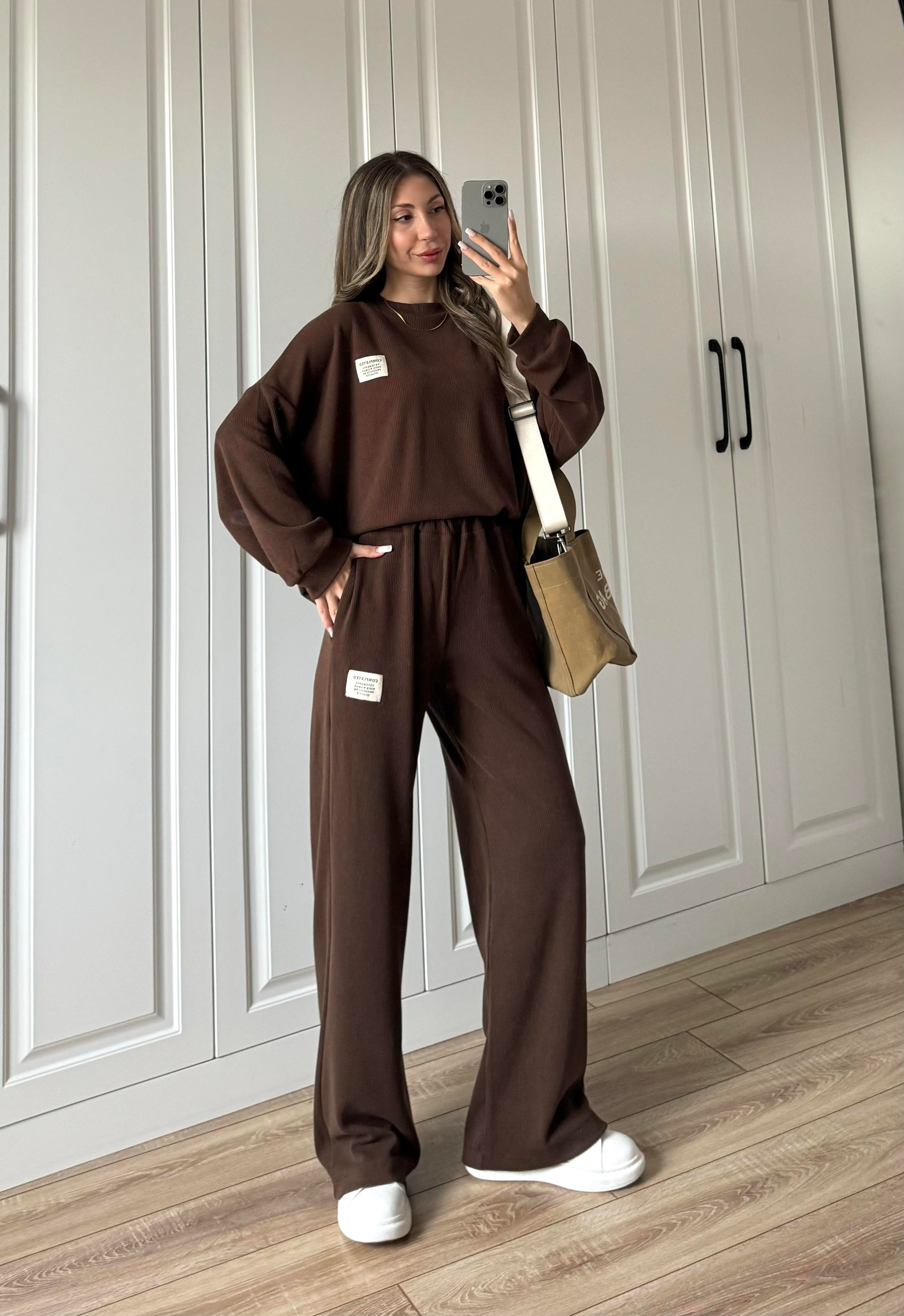 Elsa Oversize Fitilli Basic Kahve Eşofman Takımı
