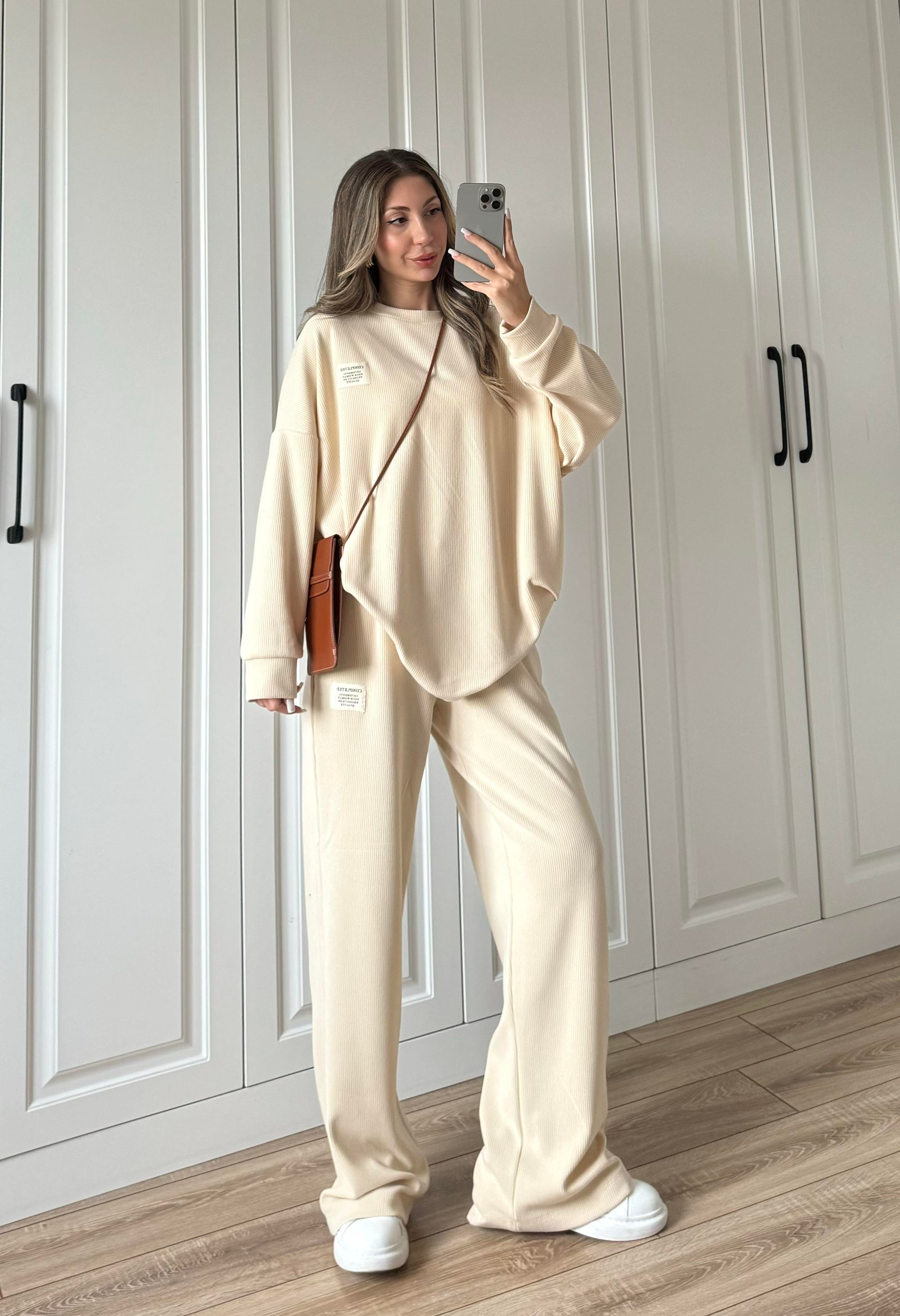 Elsa Oversize Fitilli Basic Taş Eşofman Takımı