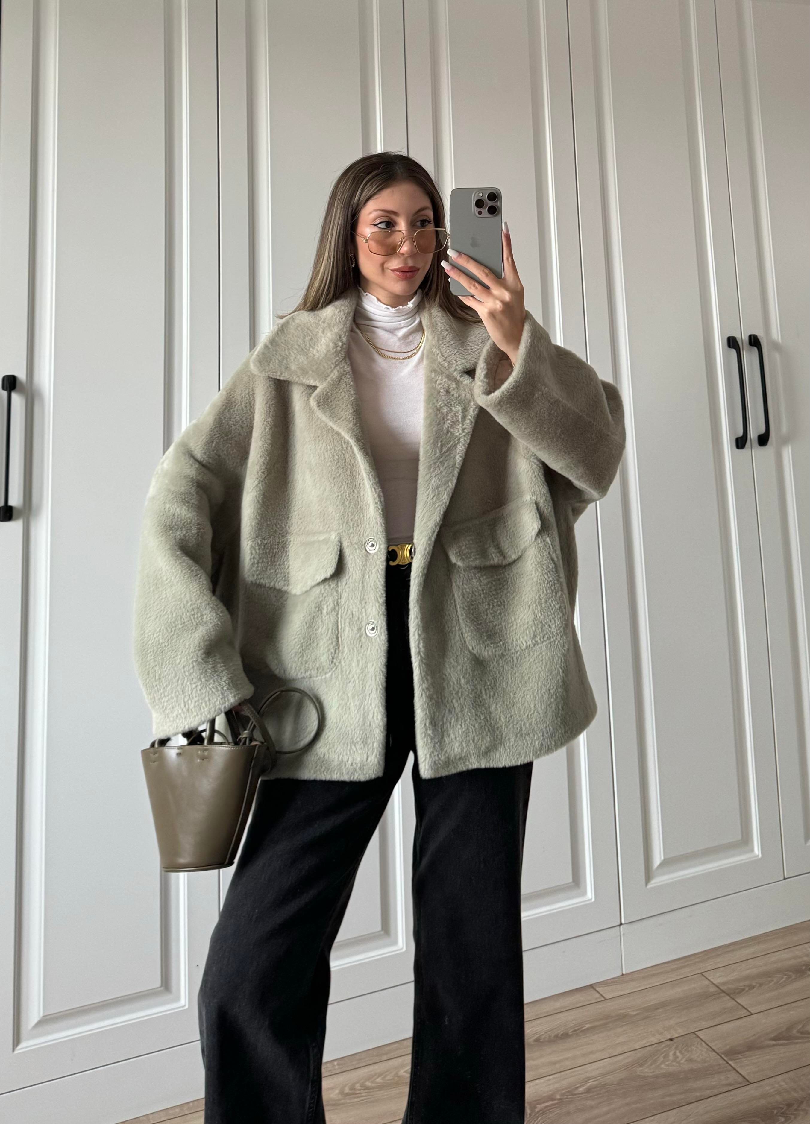 Oversize Premium Astarlı Haki Kürk Ceket