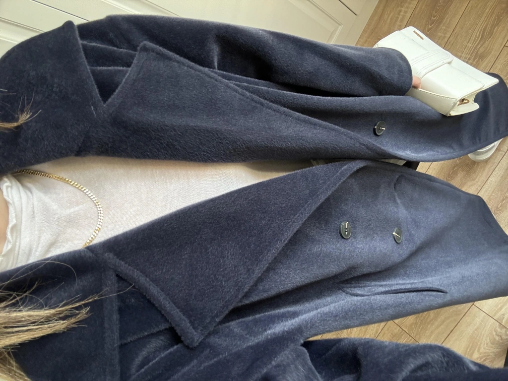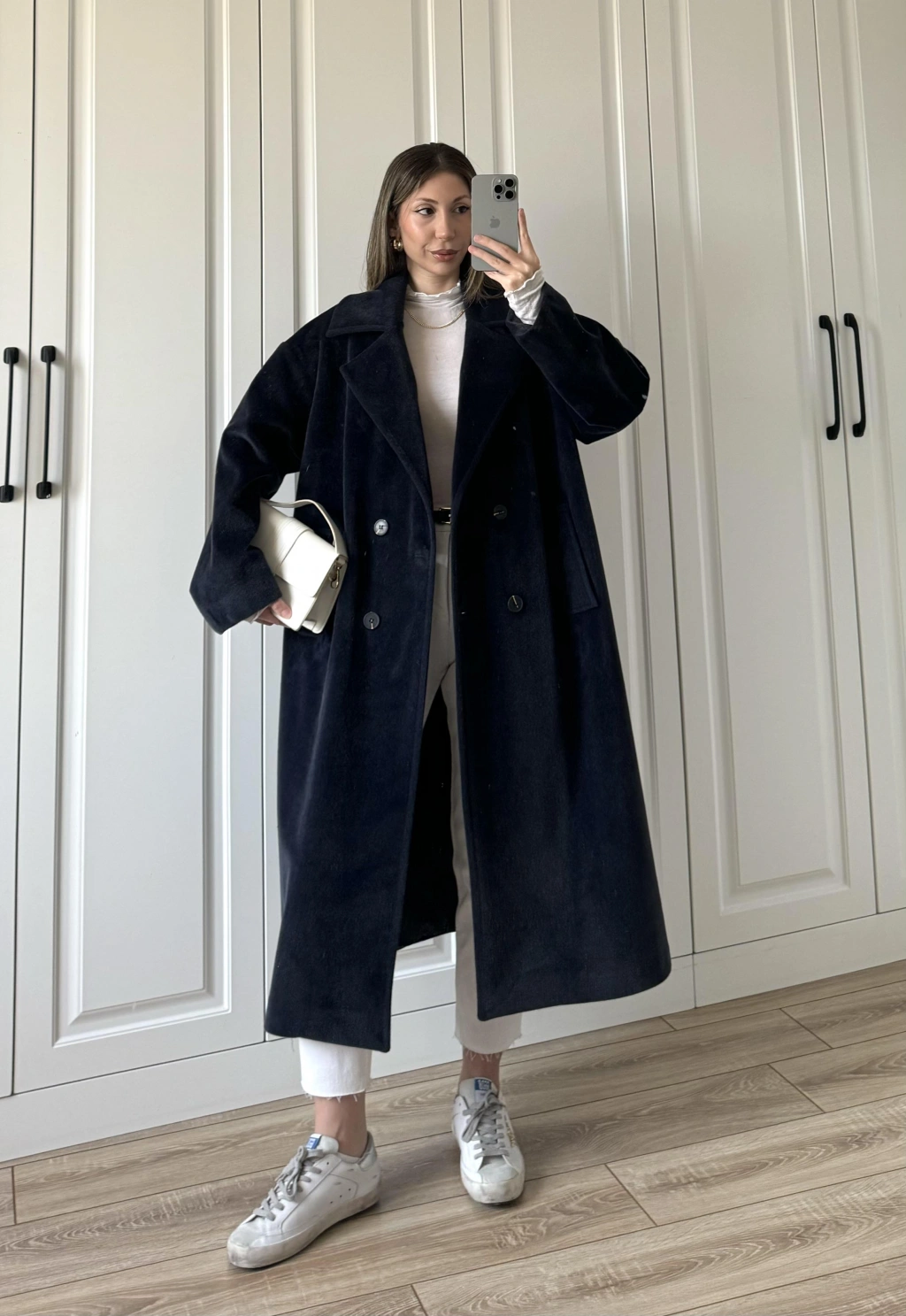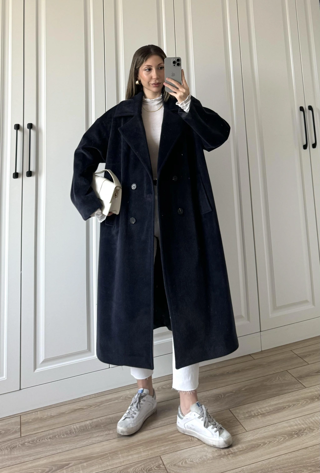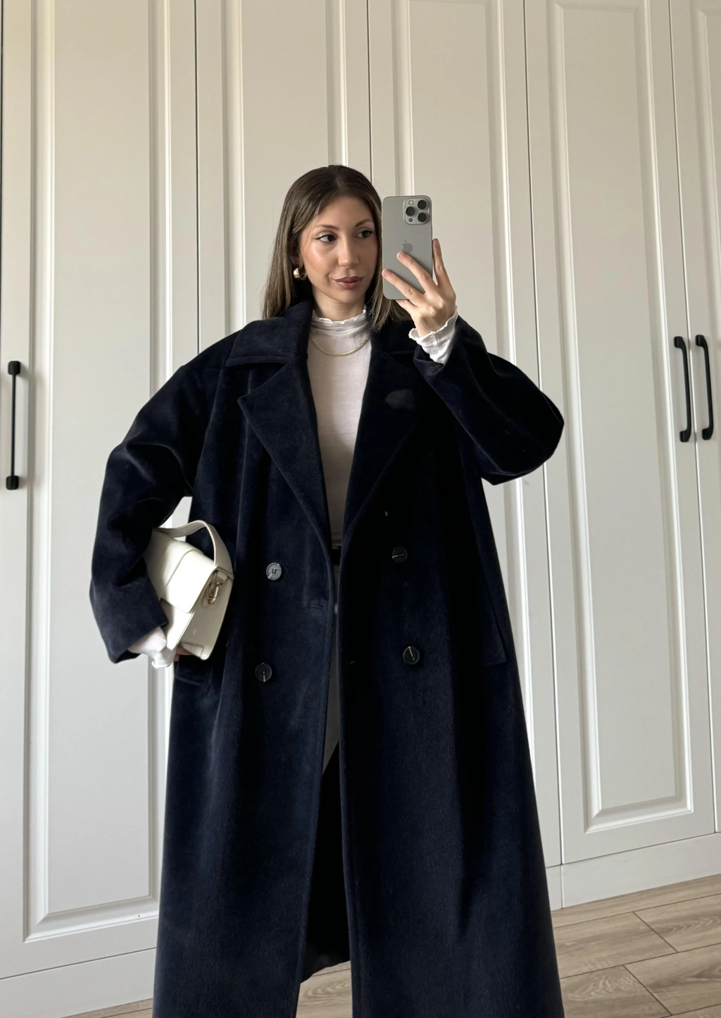Oversize Premium Astarlı Lacivert Yün Kaban