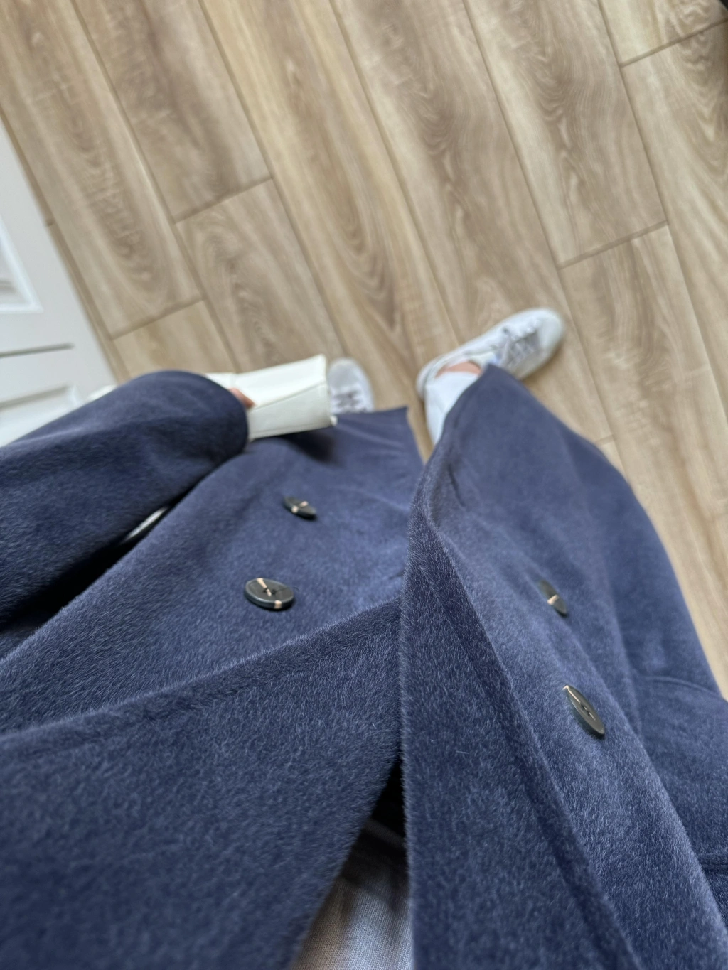 Kuşaklı Premium İthal Lacivert Yün Kaban