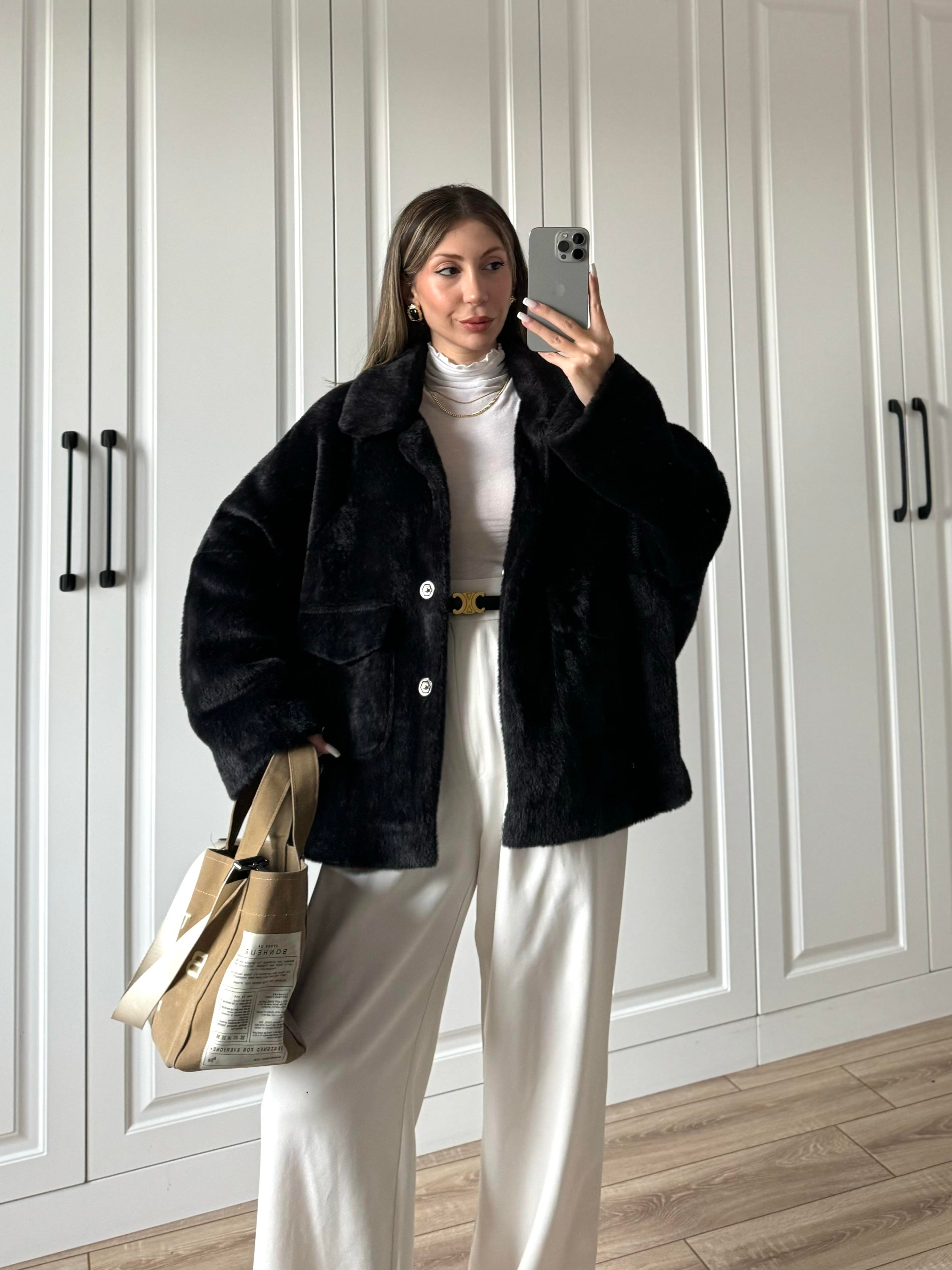Oversize Premium Astarlı Siyah Kürk Ceket