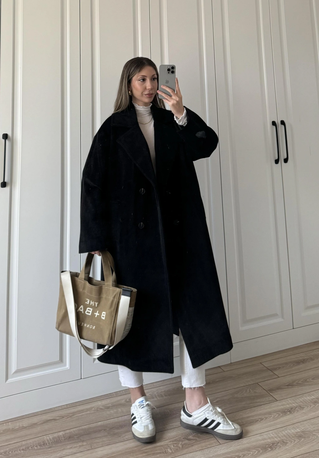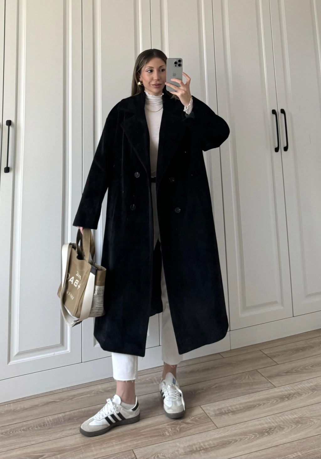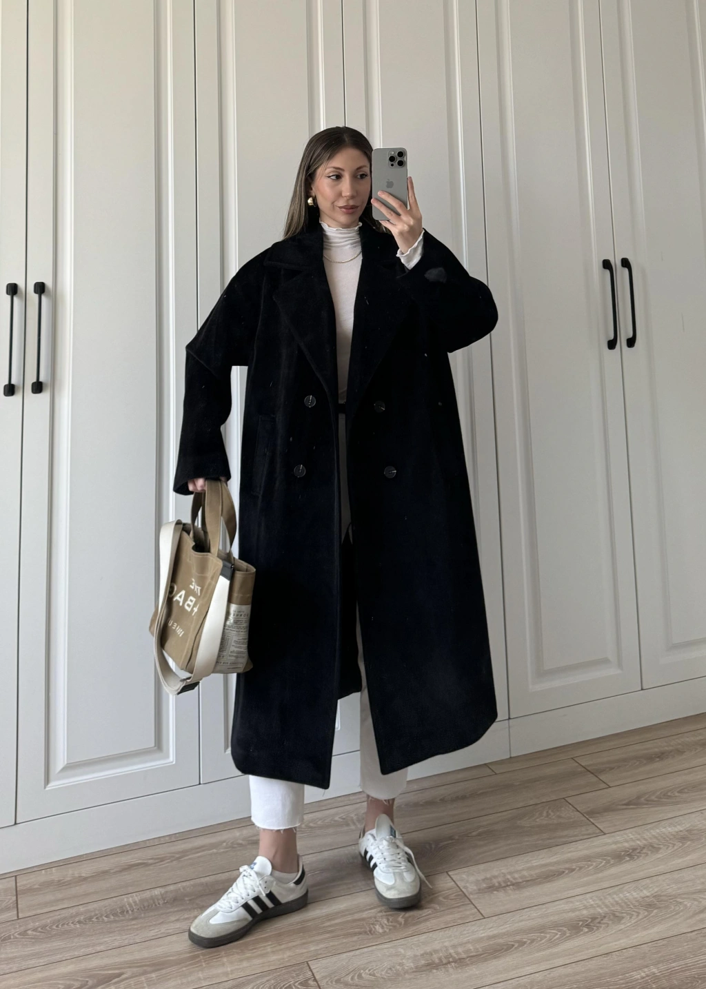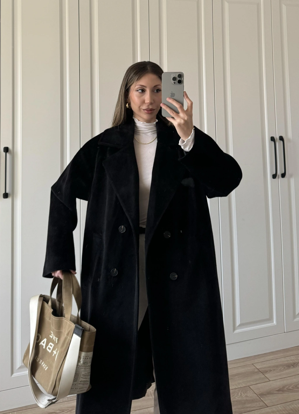 Oversize Premium Astarlı Siyah Yün Kaban