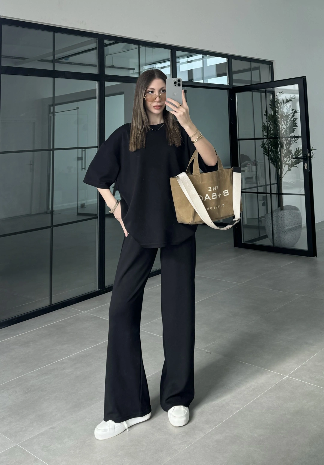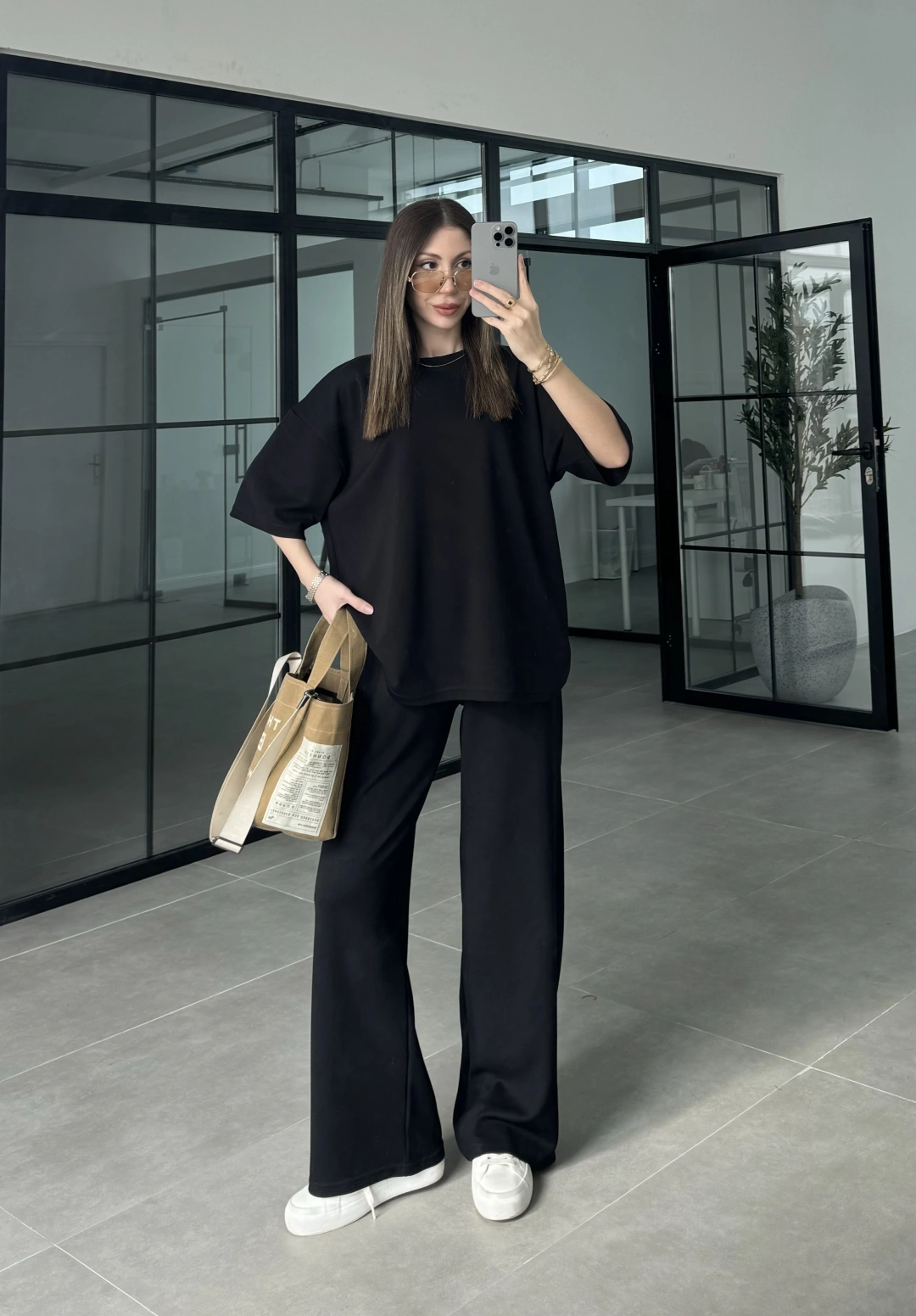 Dania Premium Siyah Tensel Palazzo Pantolon