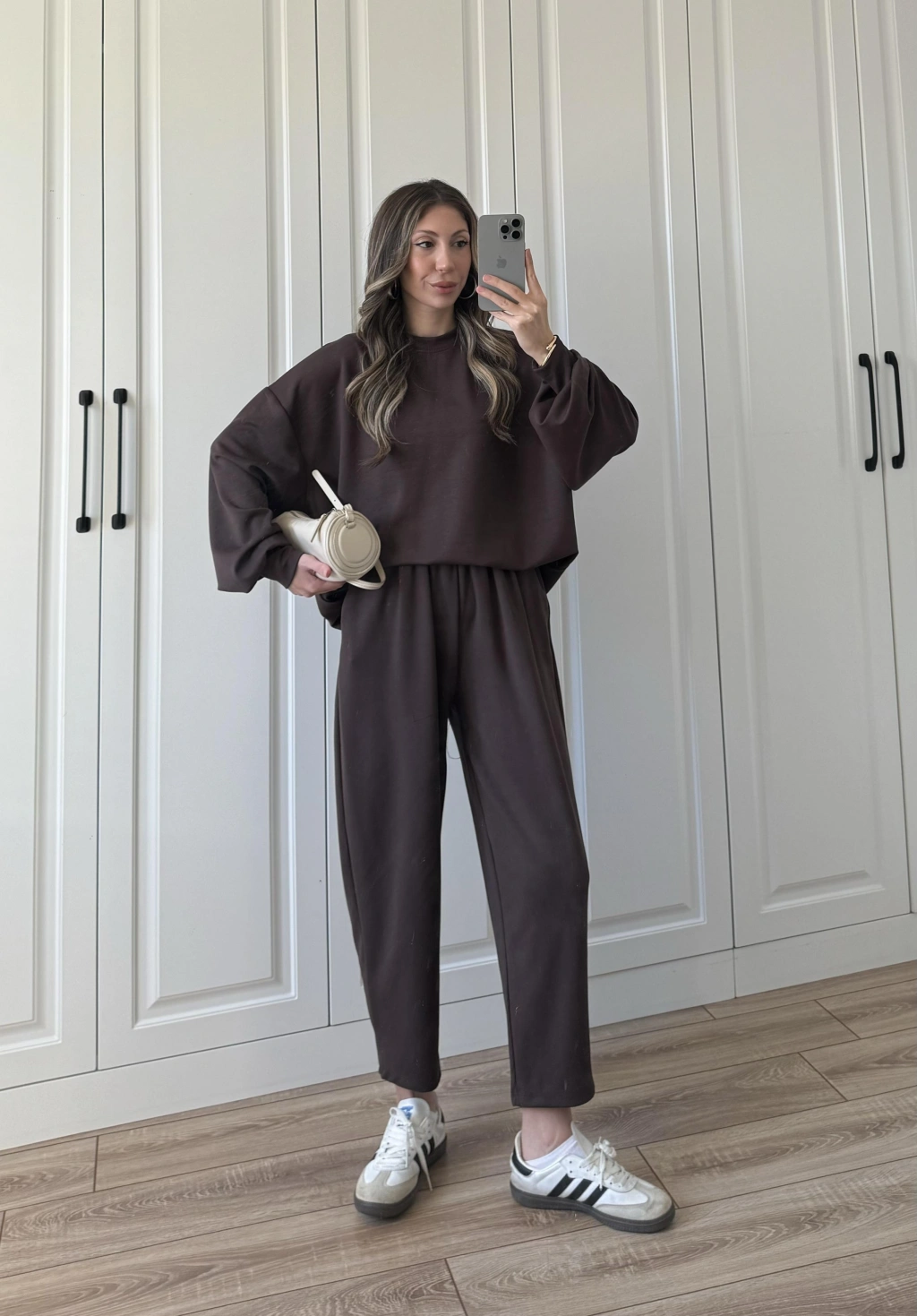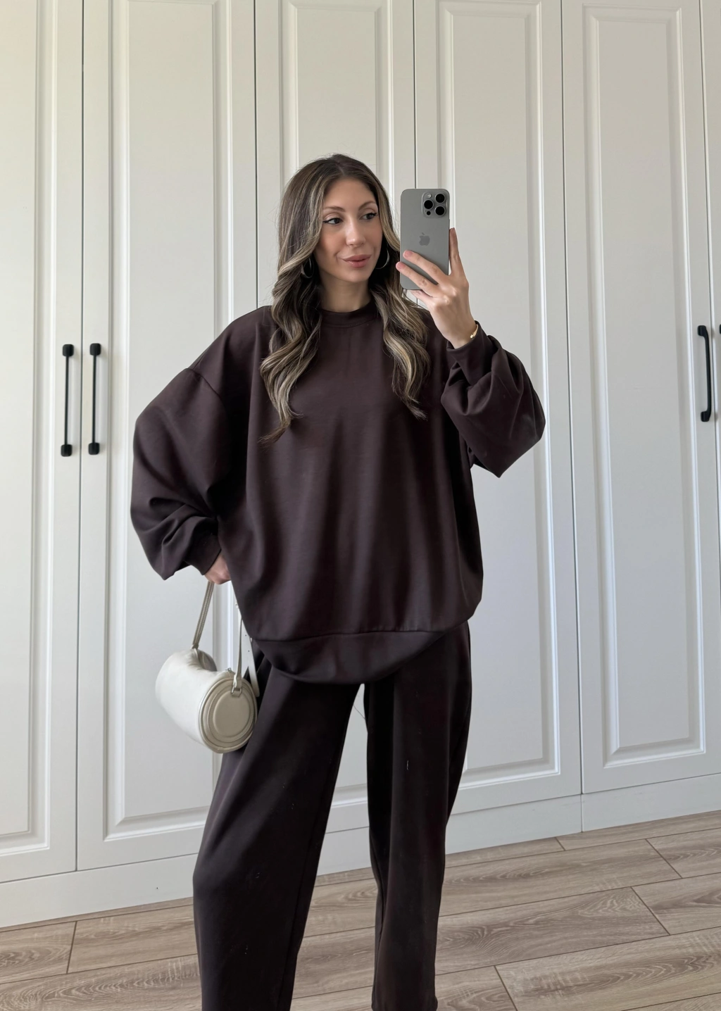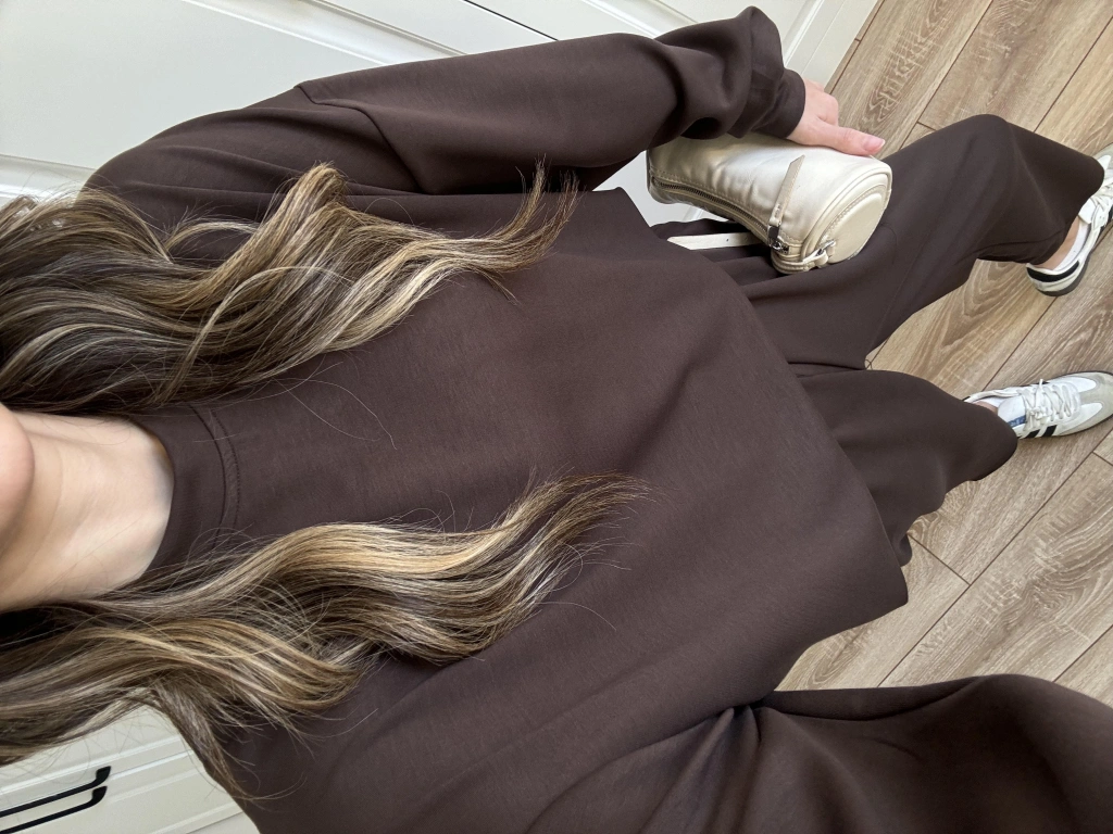 Üç İplik Şardonlu Oversize Kahve Takım
