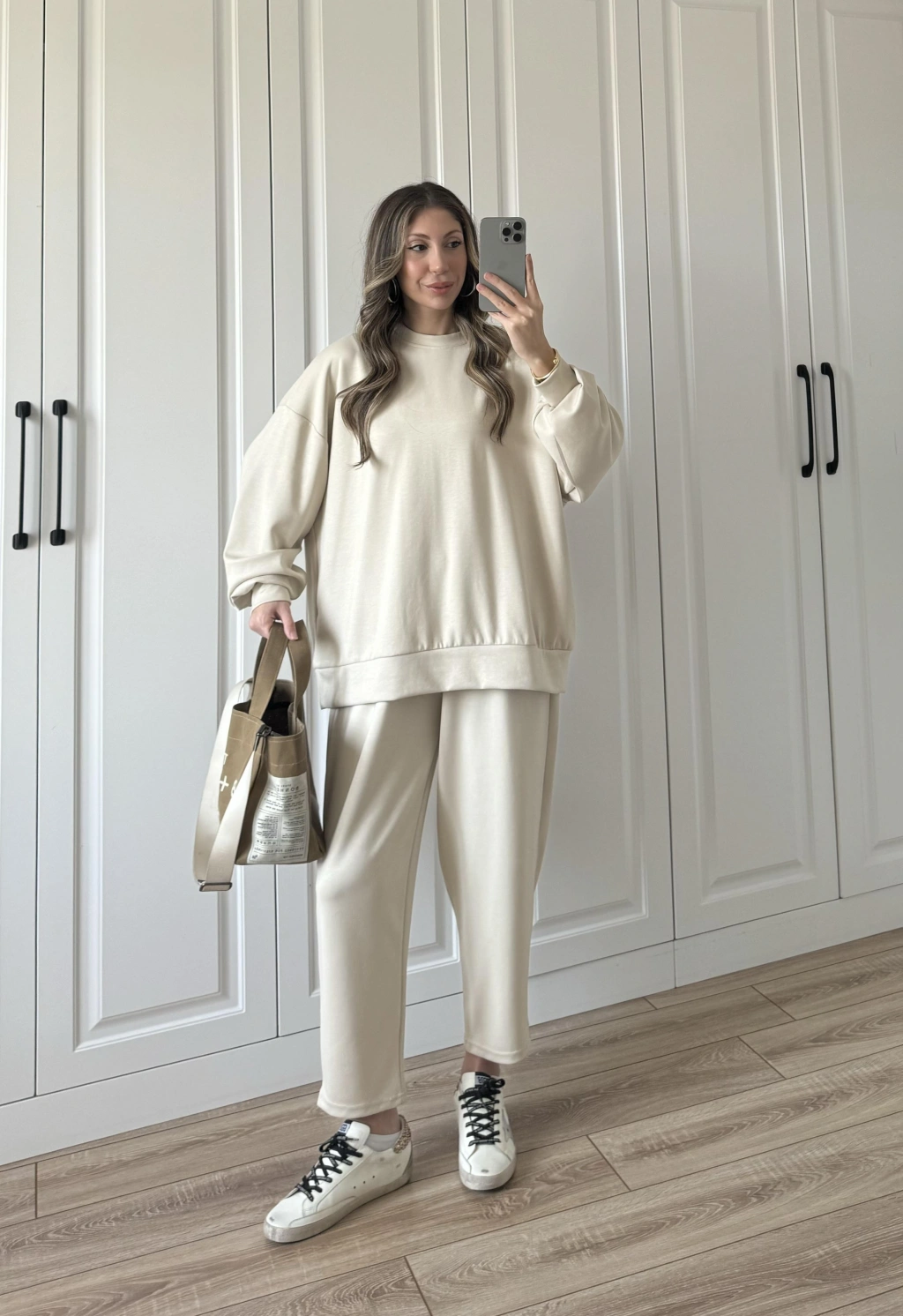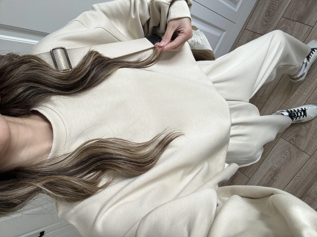 Üç İplik Şardonlu Oversize Kahve Takım