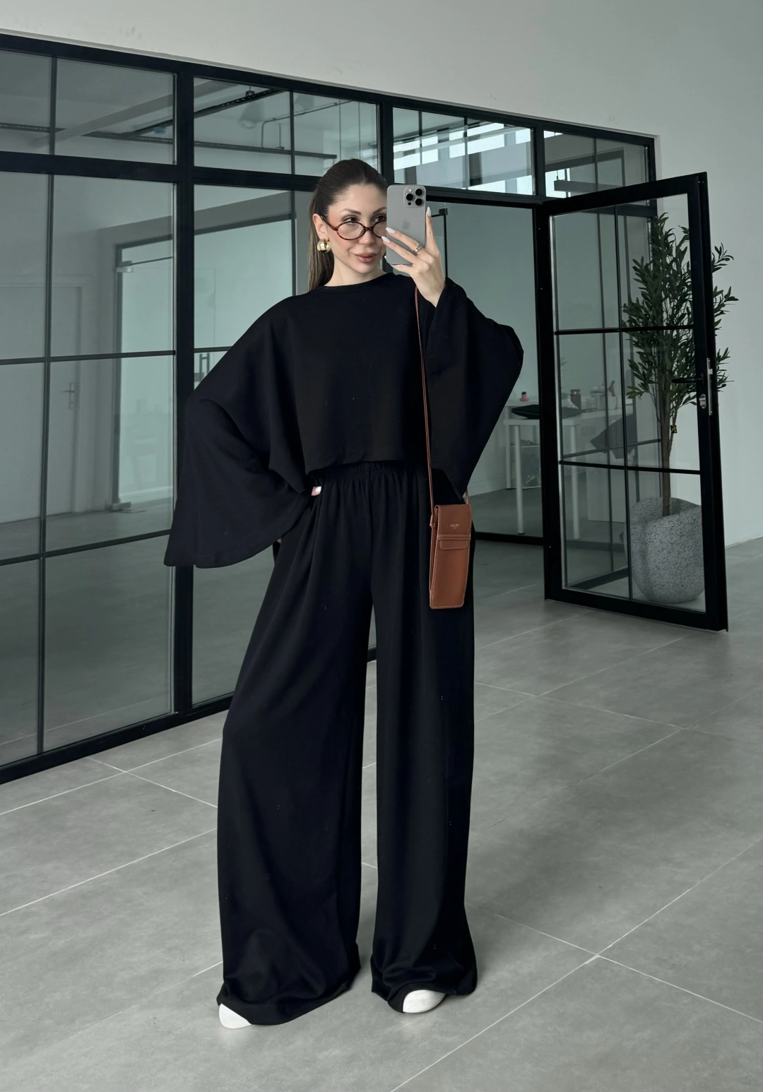 Modal Kumaş Yarasakol Oversize Siyah Takım