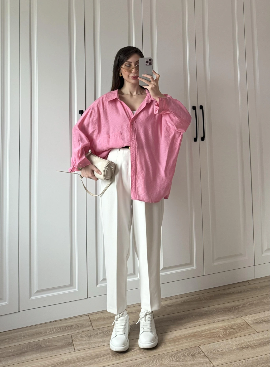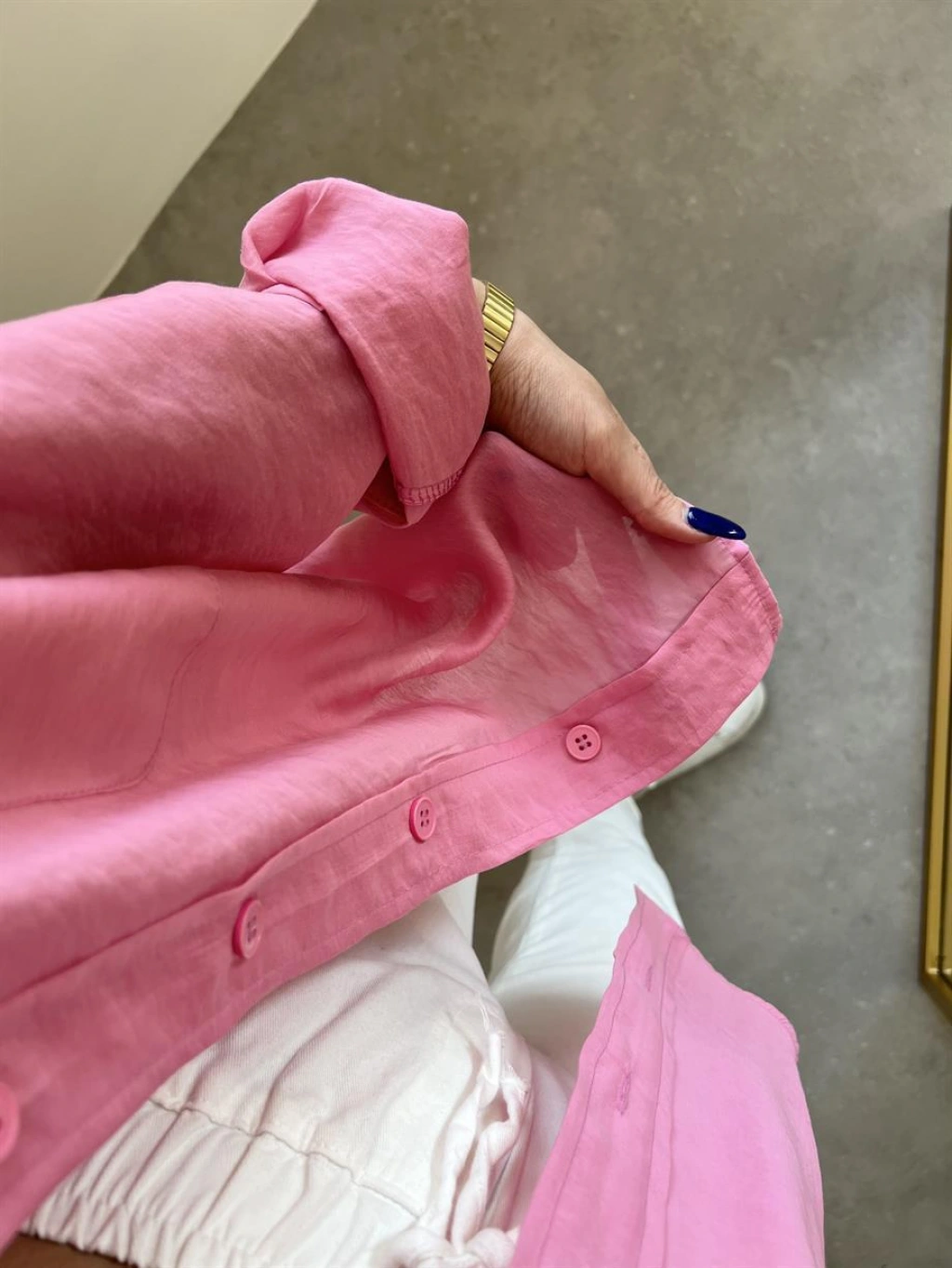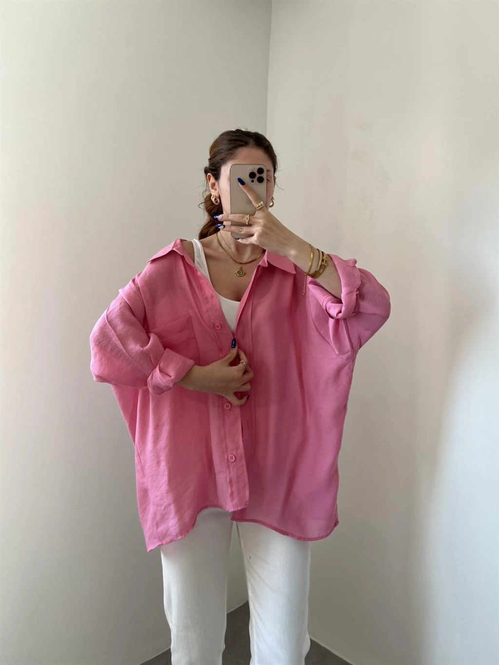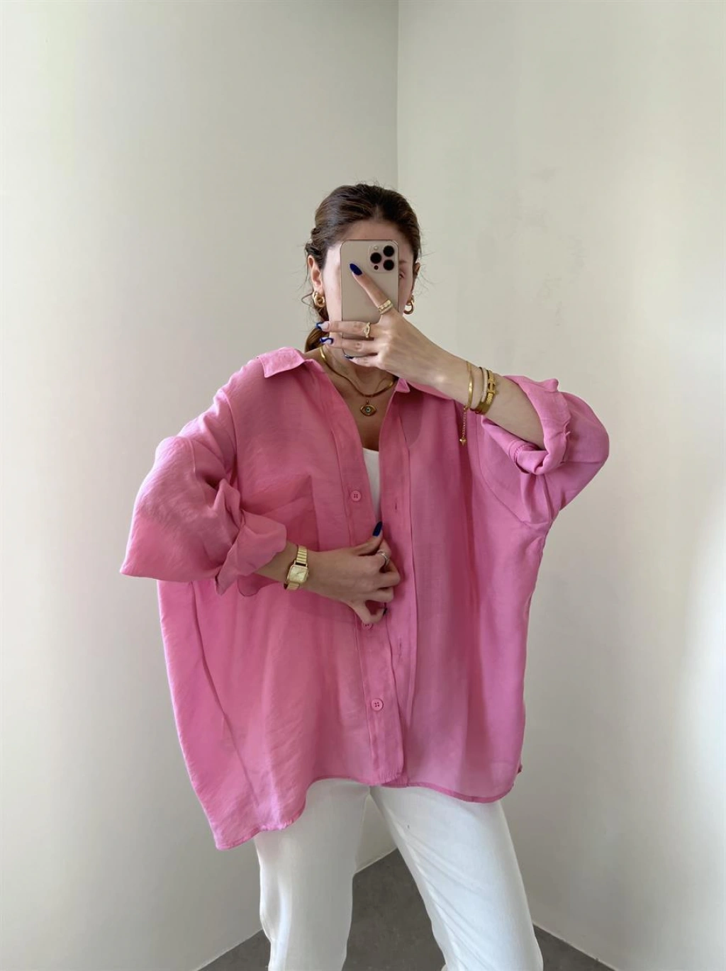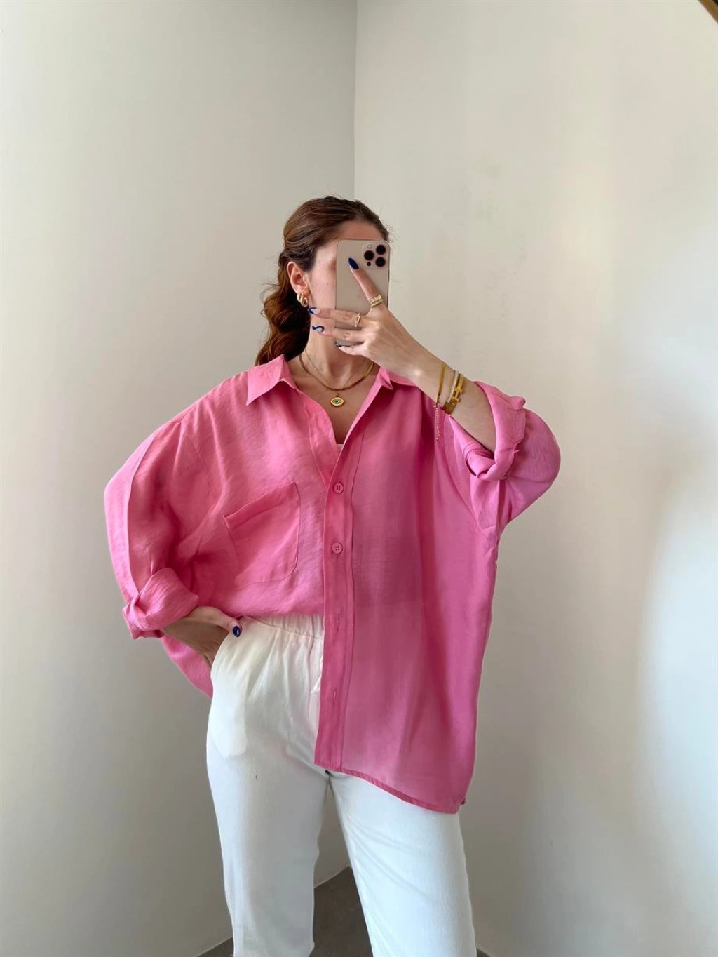 Pembe Oversize Tensel Gömlek