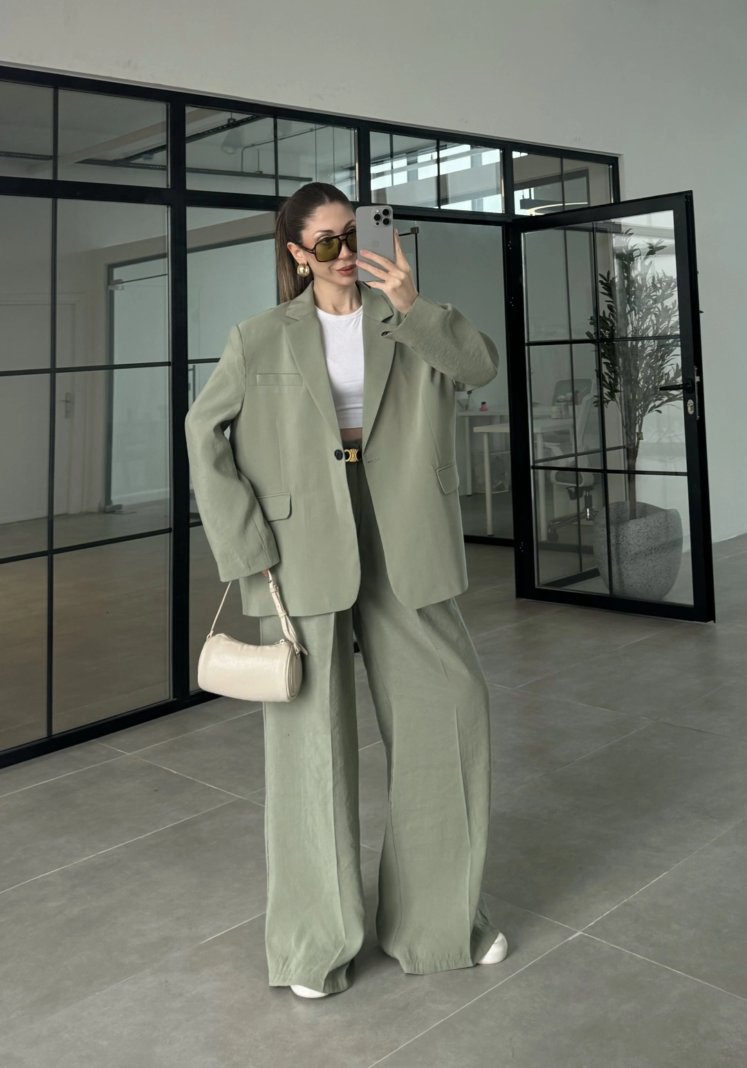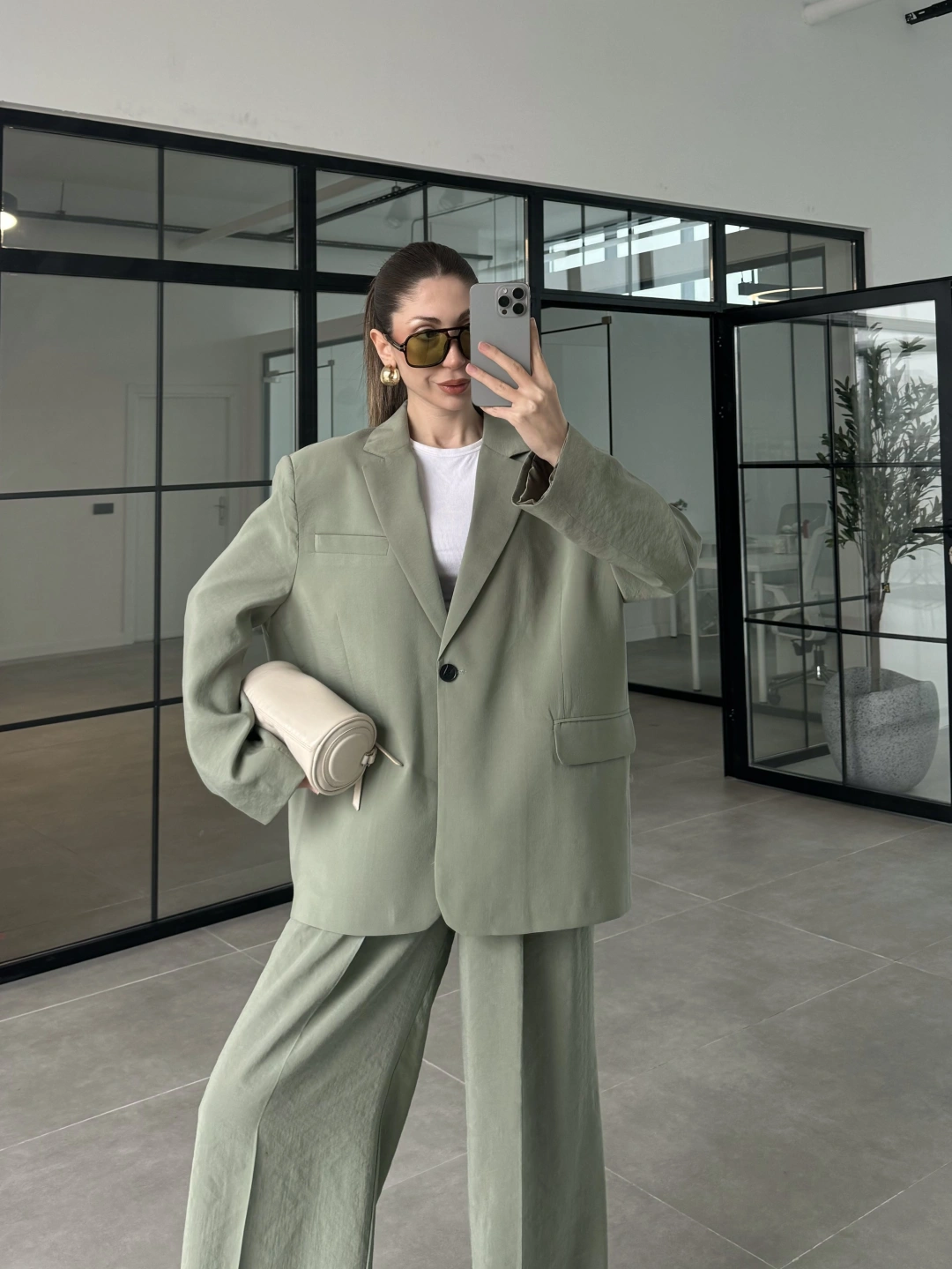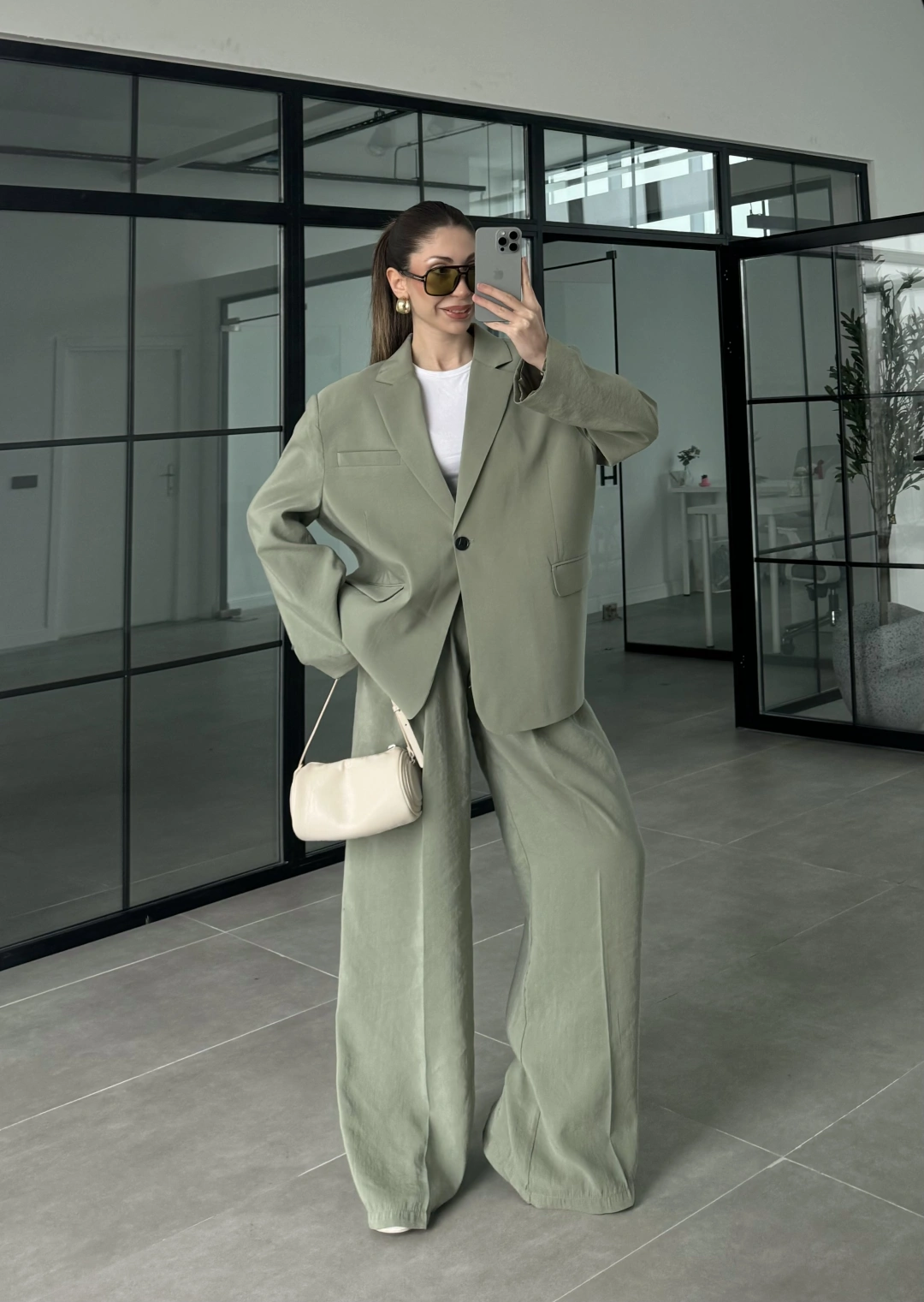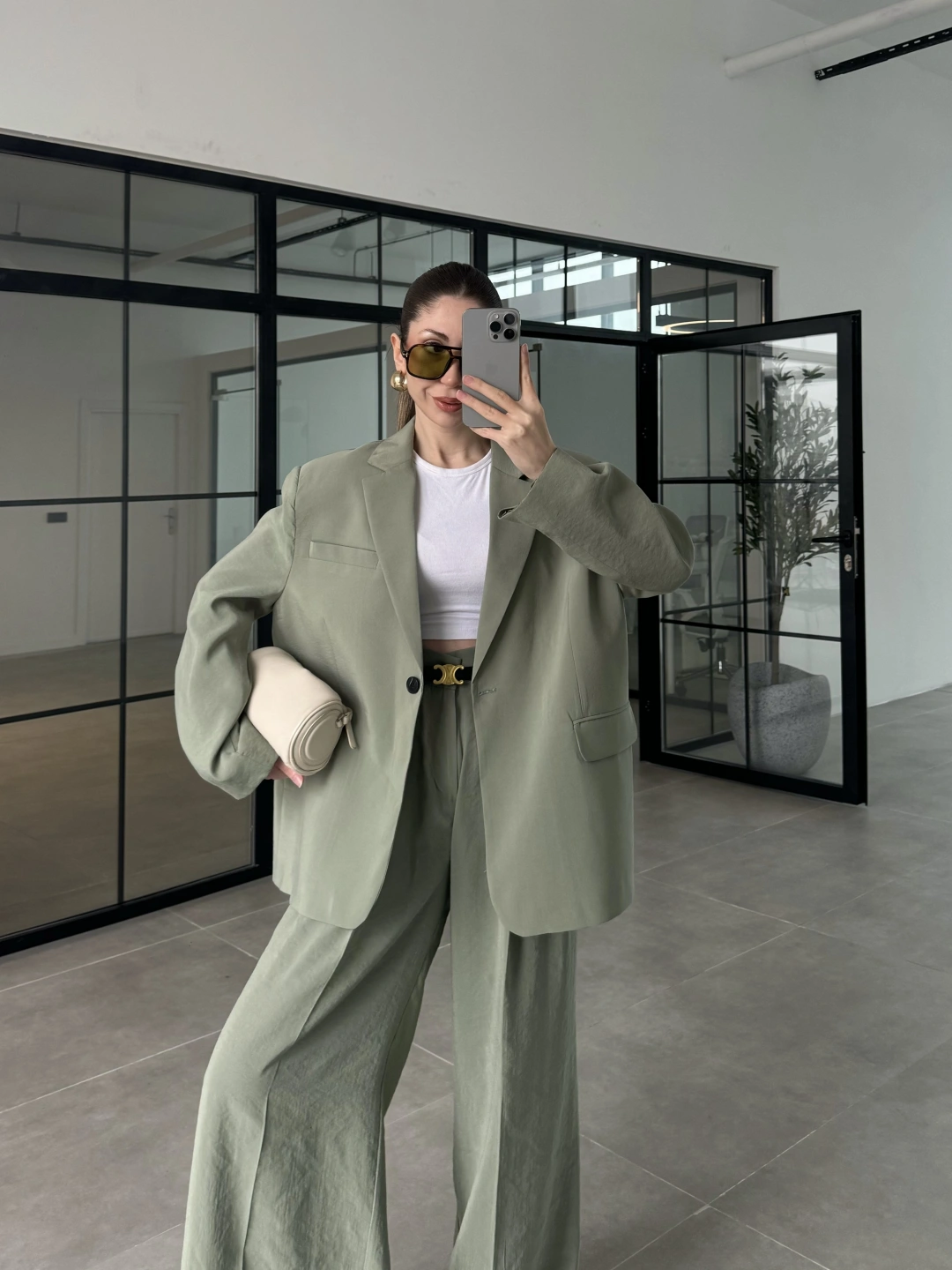 Asimetrik Kesim Marve Premium Haki Takım