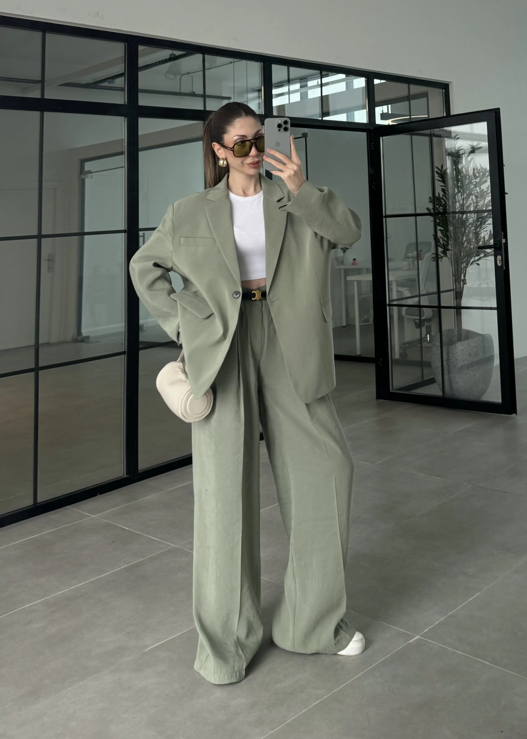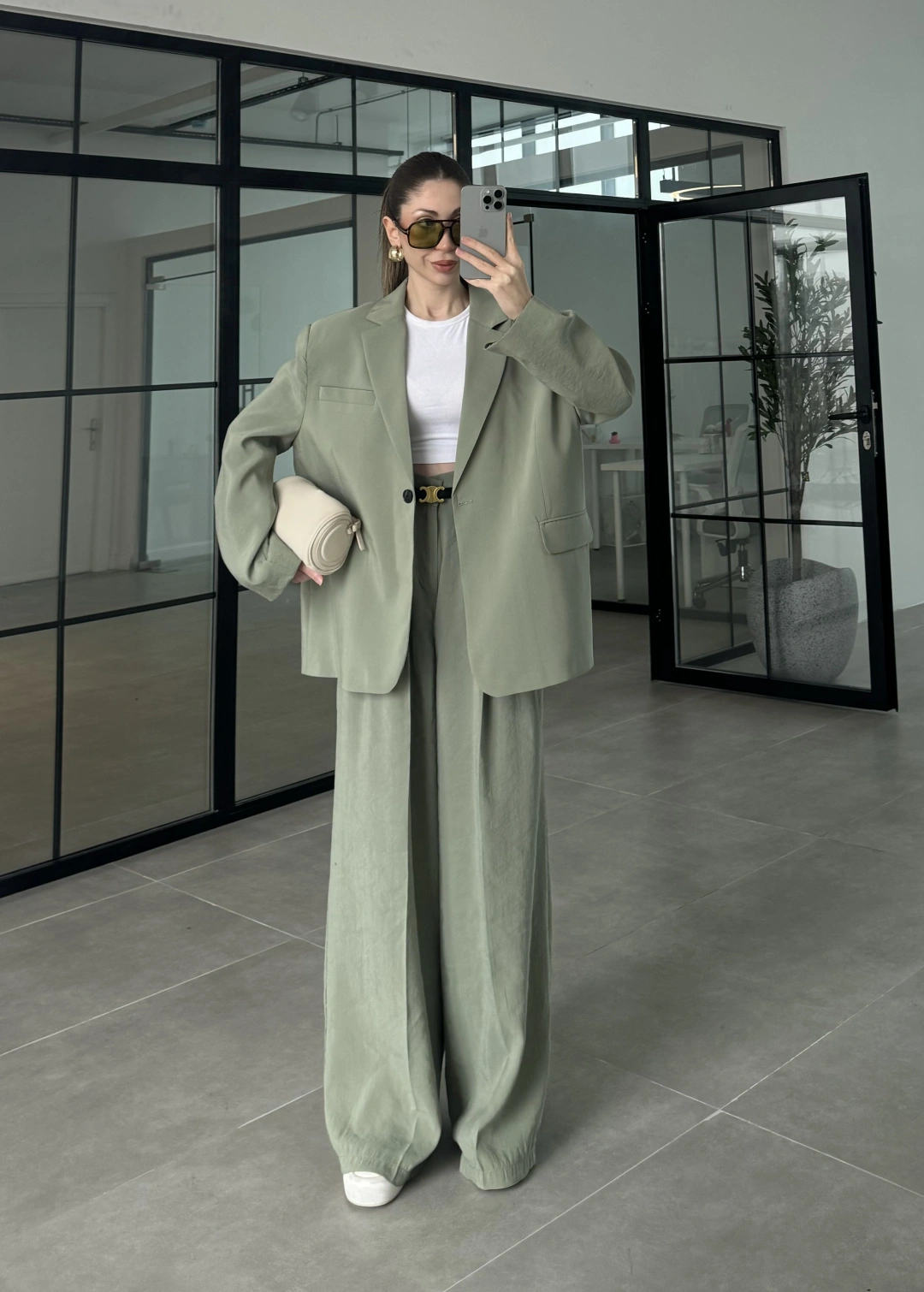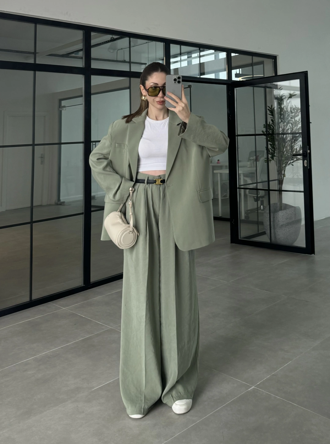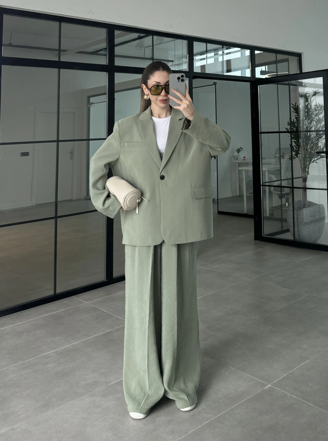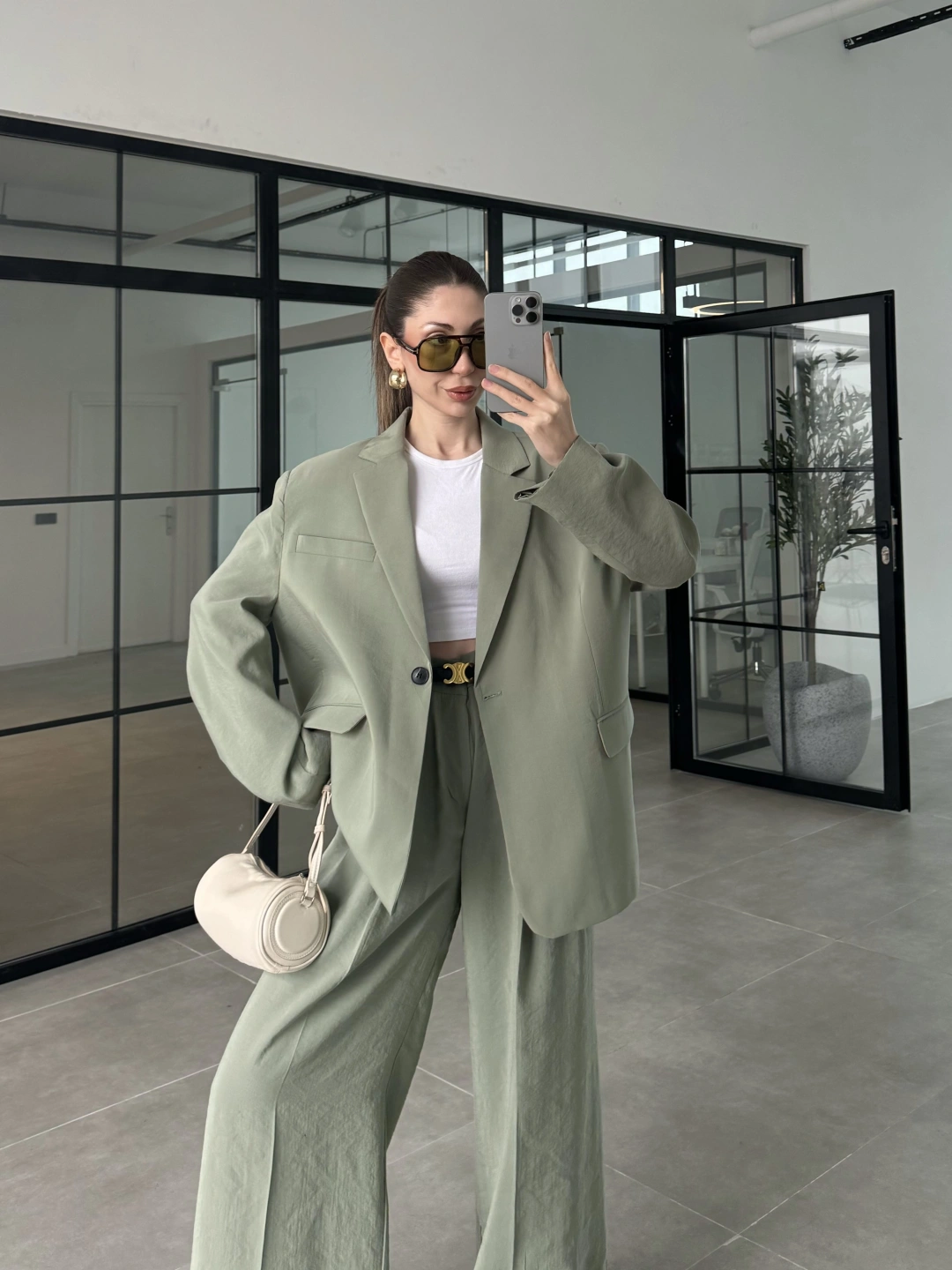 Asimetrik Kesim Marve Premium Haki Takım
