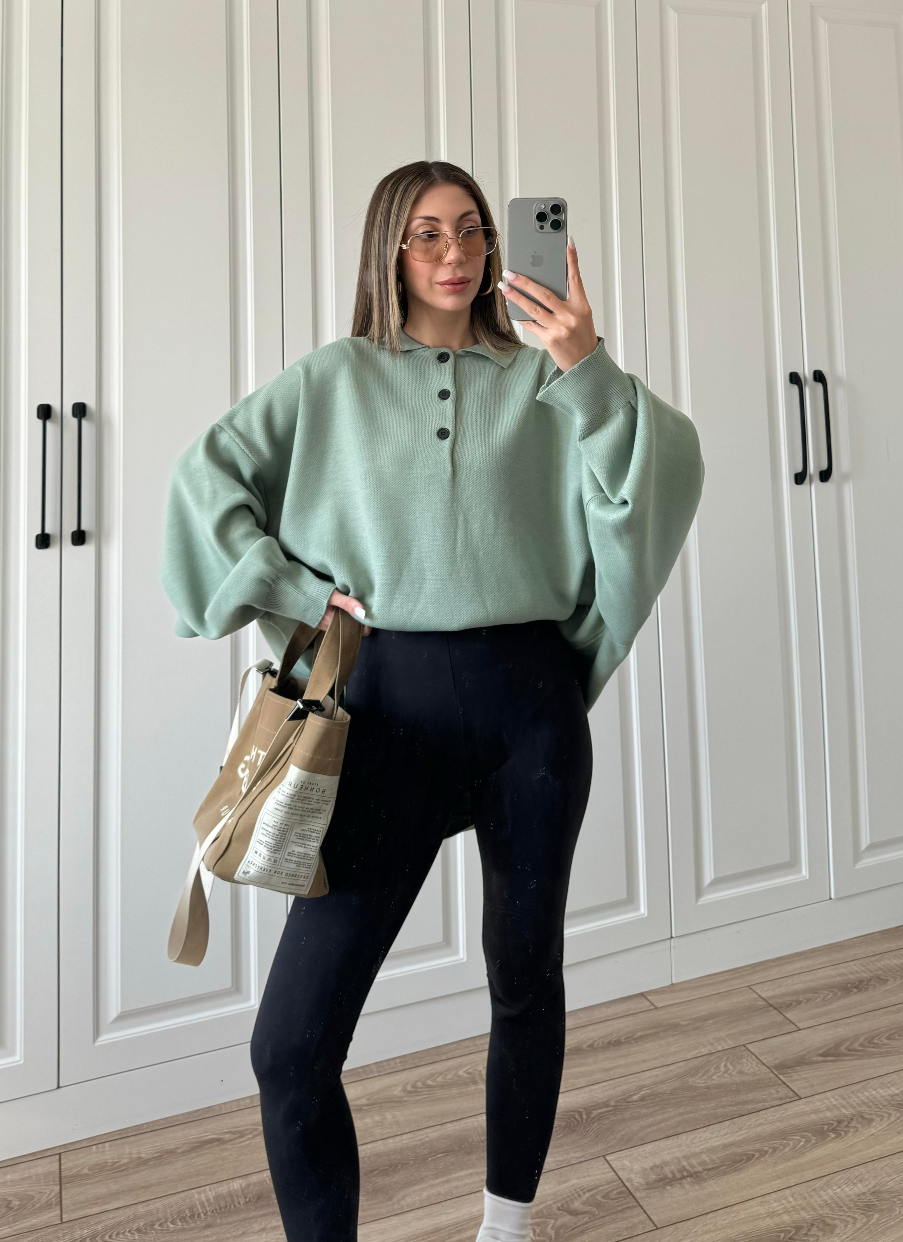 Polo Yaka Ekstra Oversize Salaş Çağla Yeşili Triko Kazak