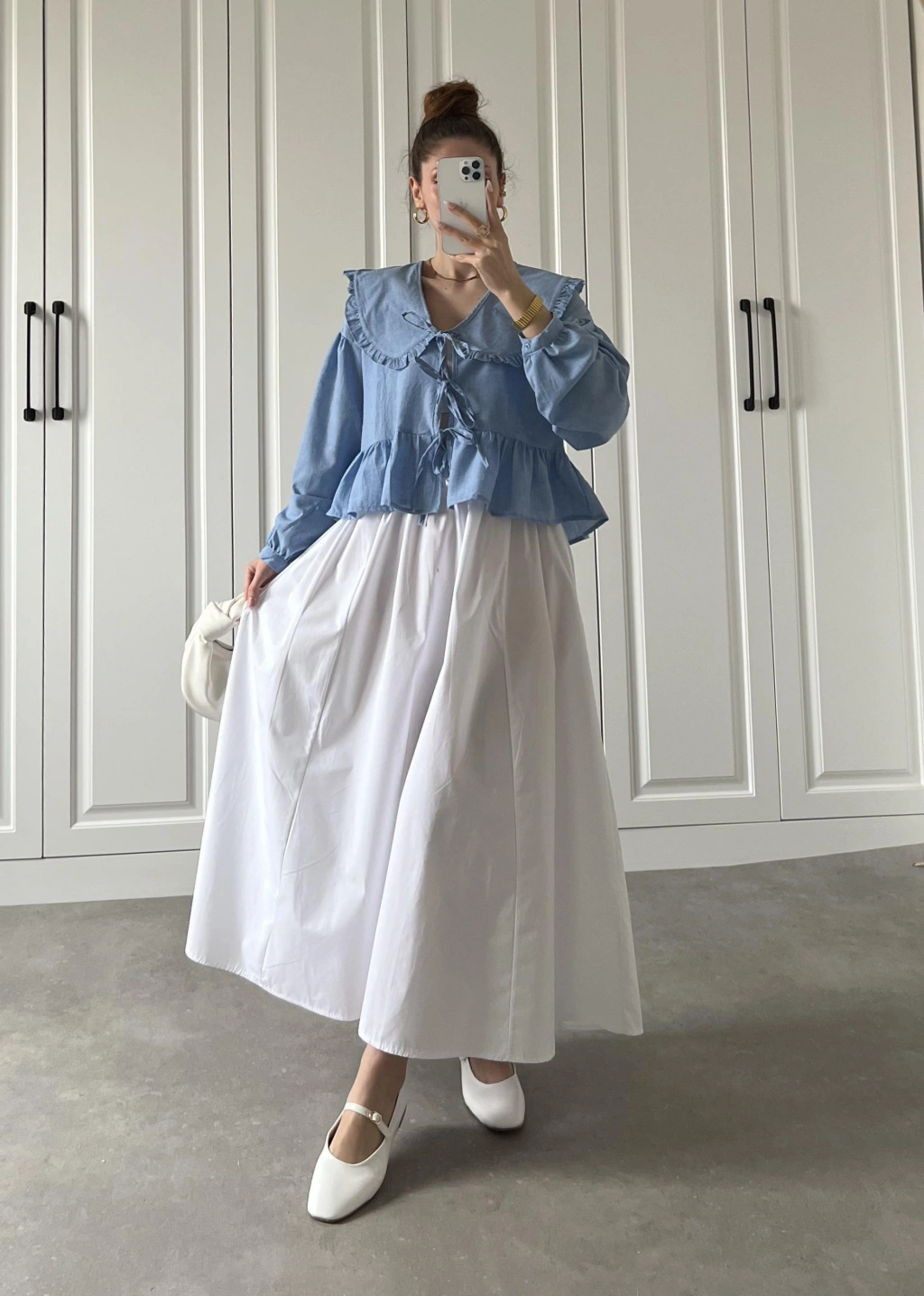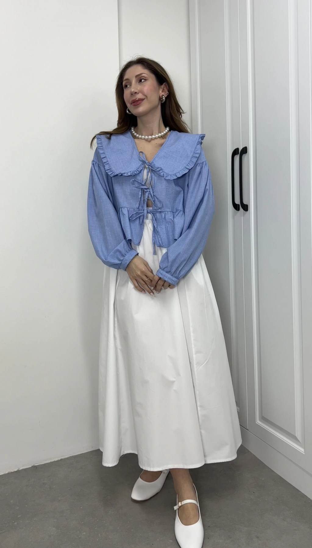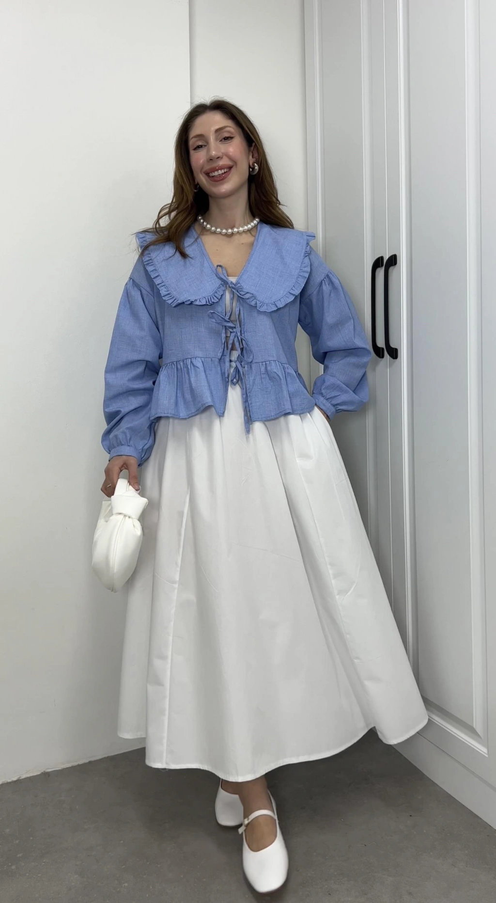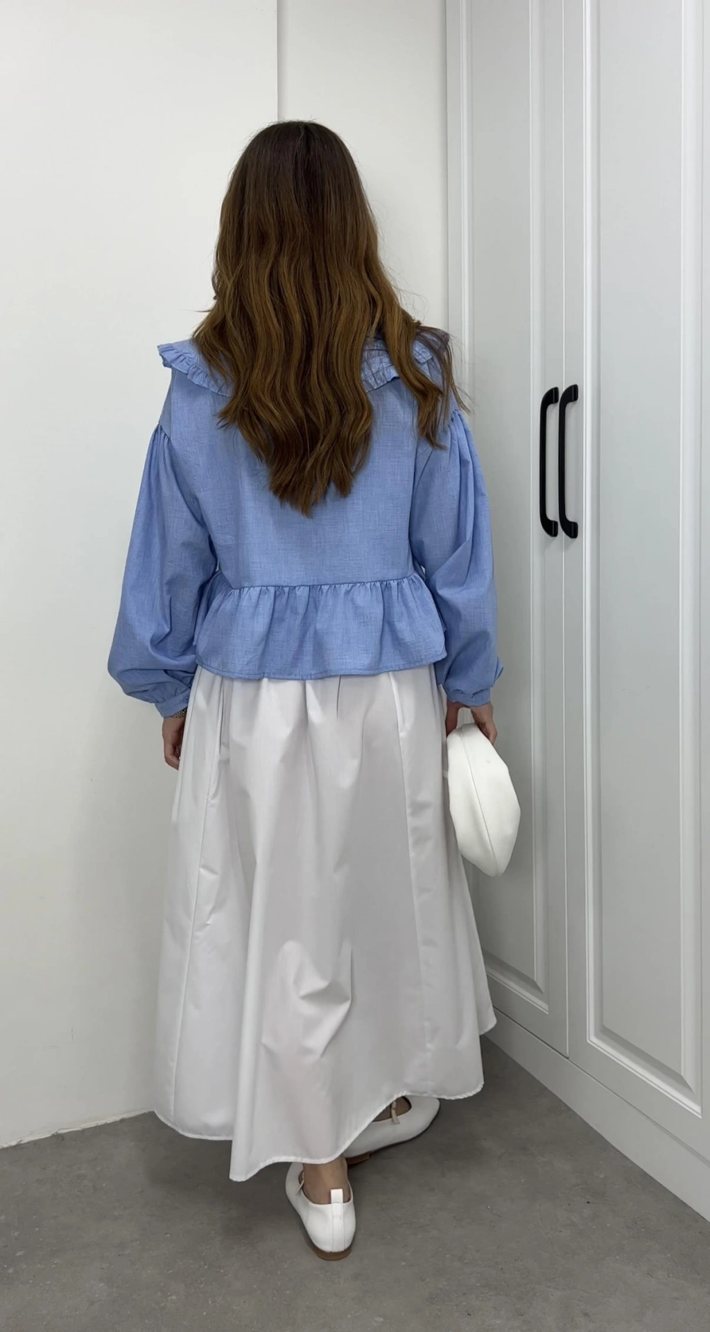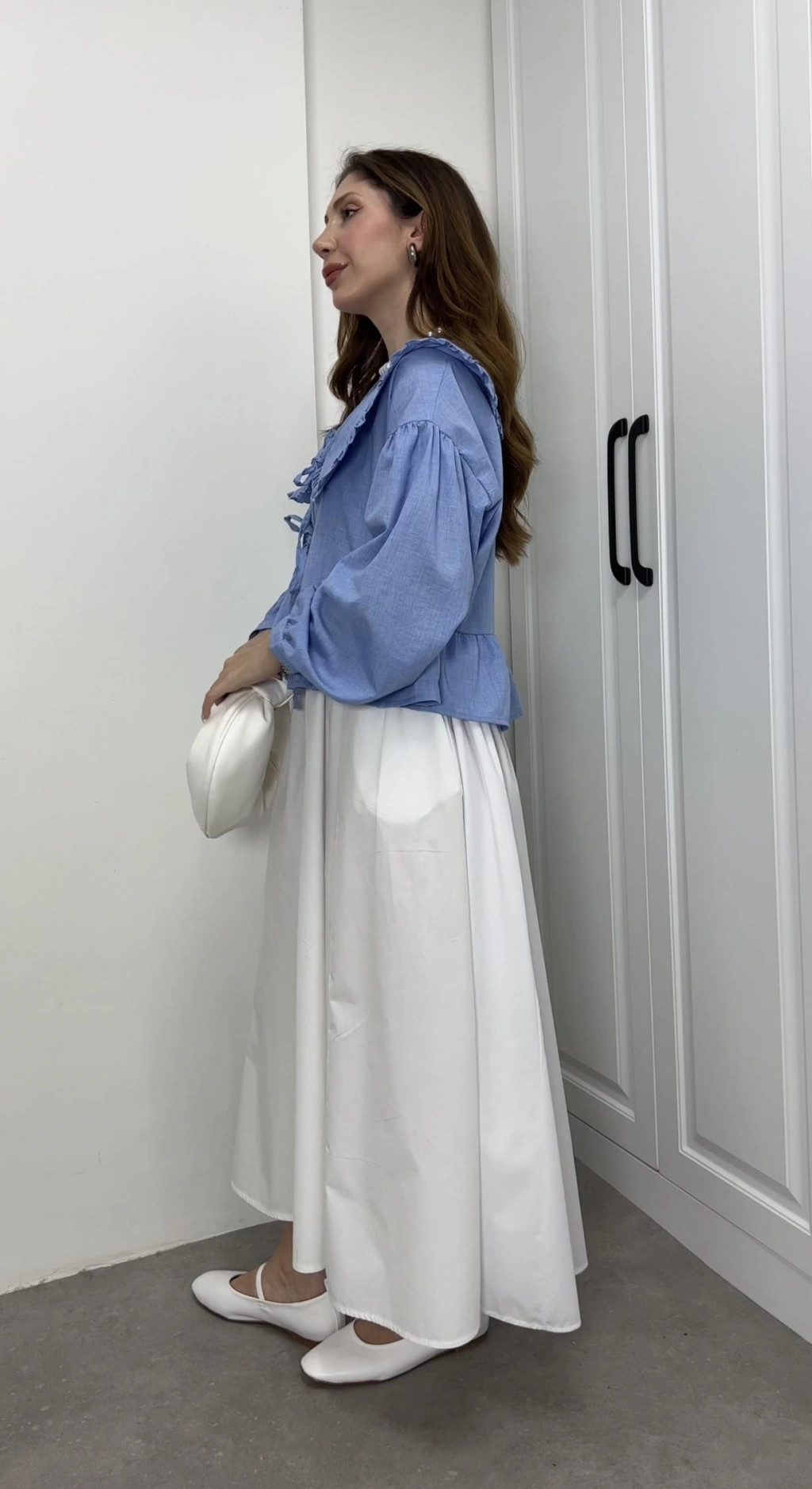 Holla Astarlı Kırışık Bebe Mavi Tül Etek
