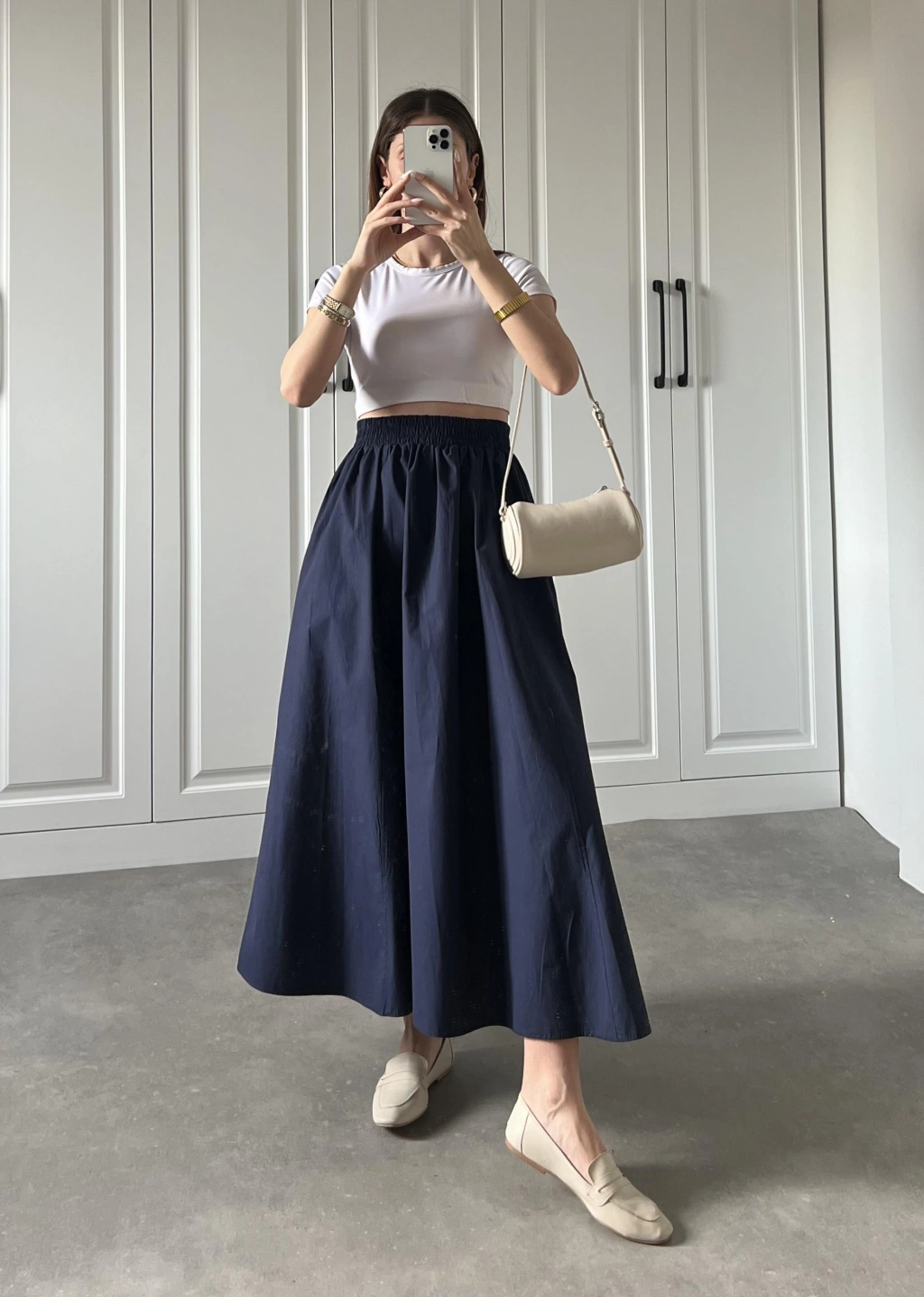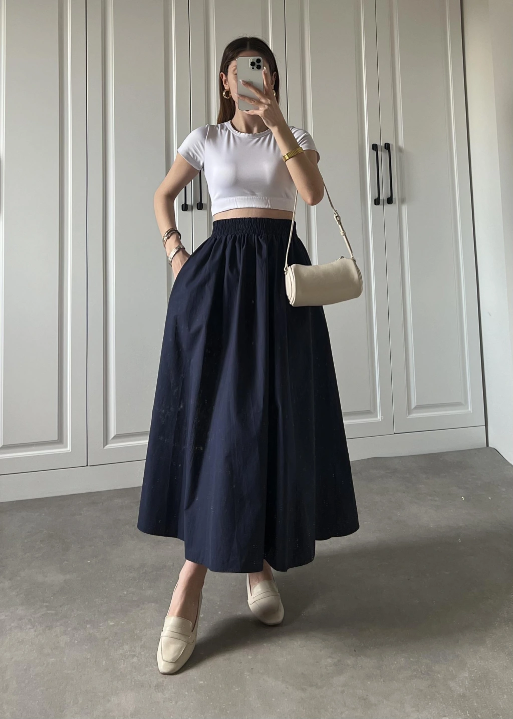 Midi Boy Şifon Astarlı Cappuccino Etek