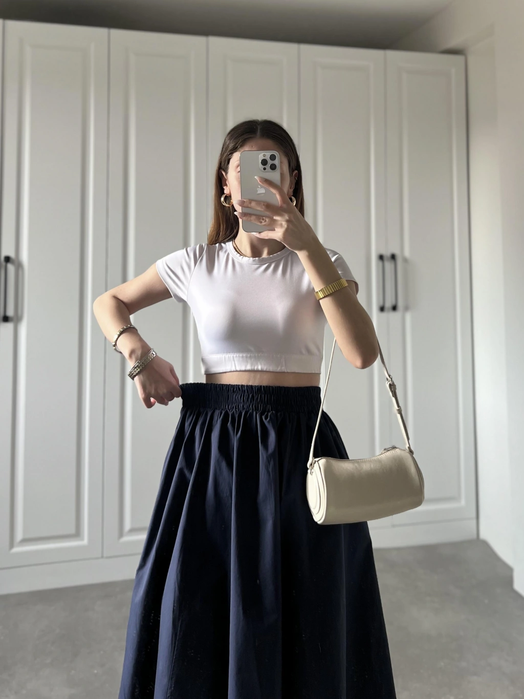 Holla Astarlı Kırışık Tarçın Tül Etek