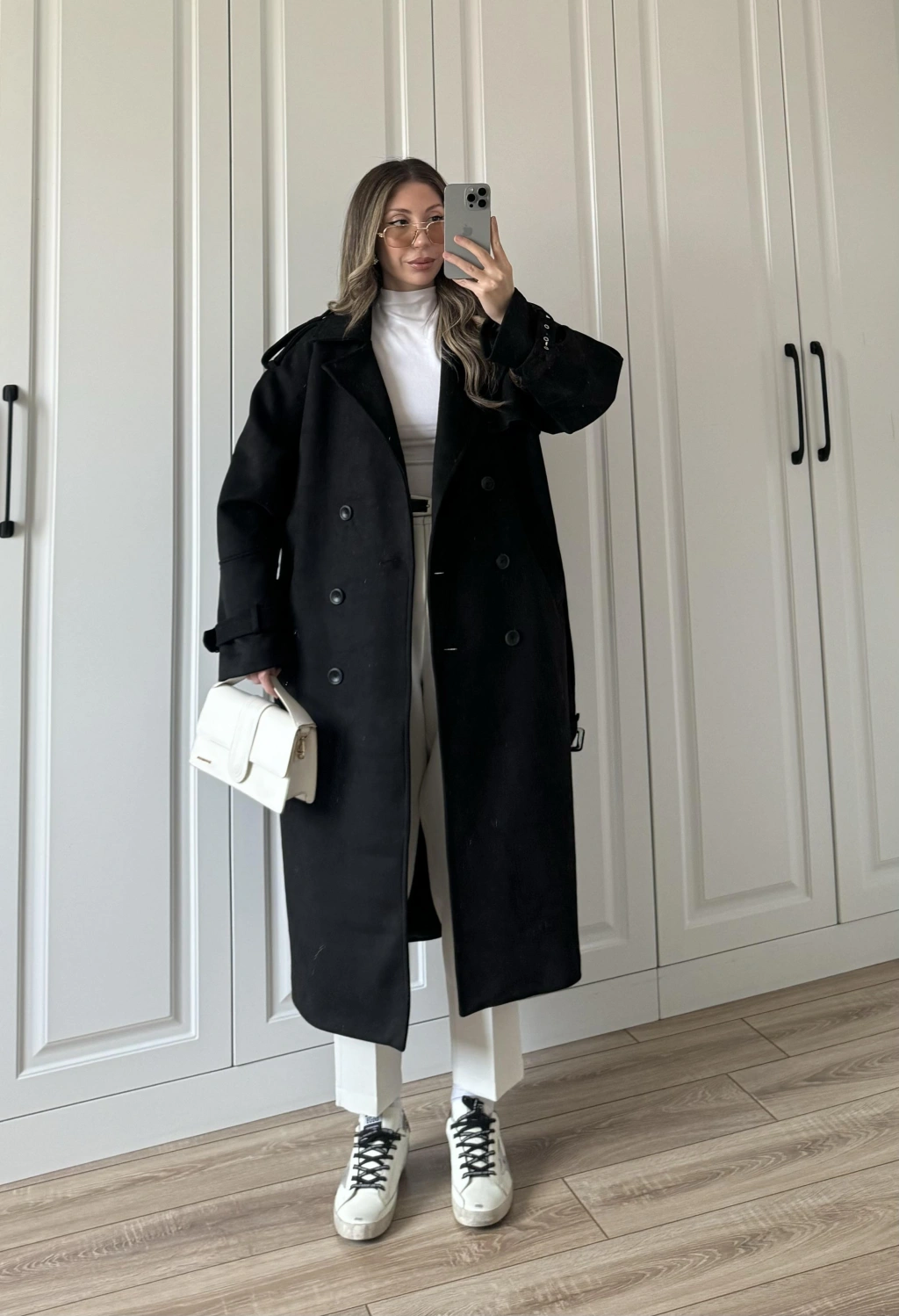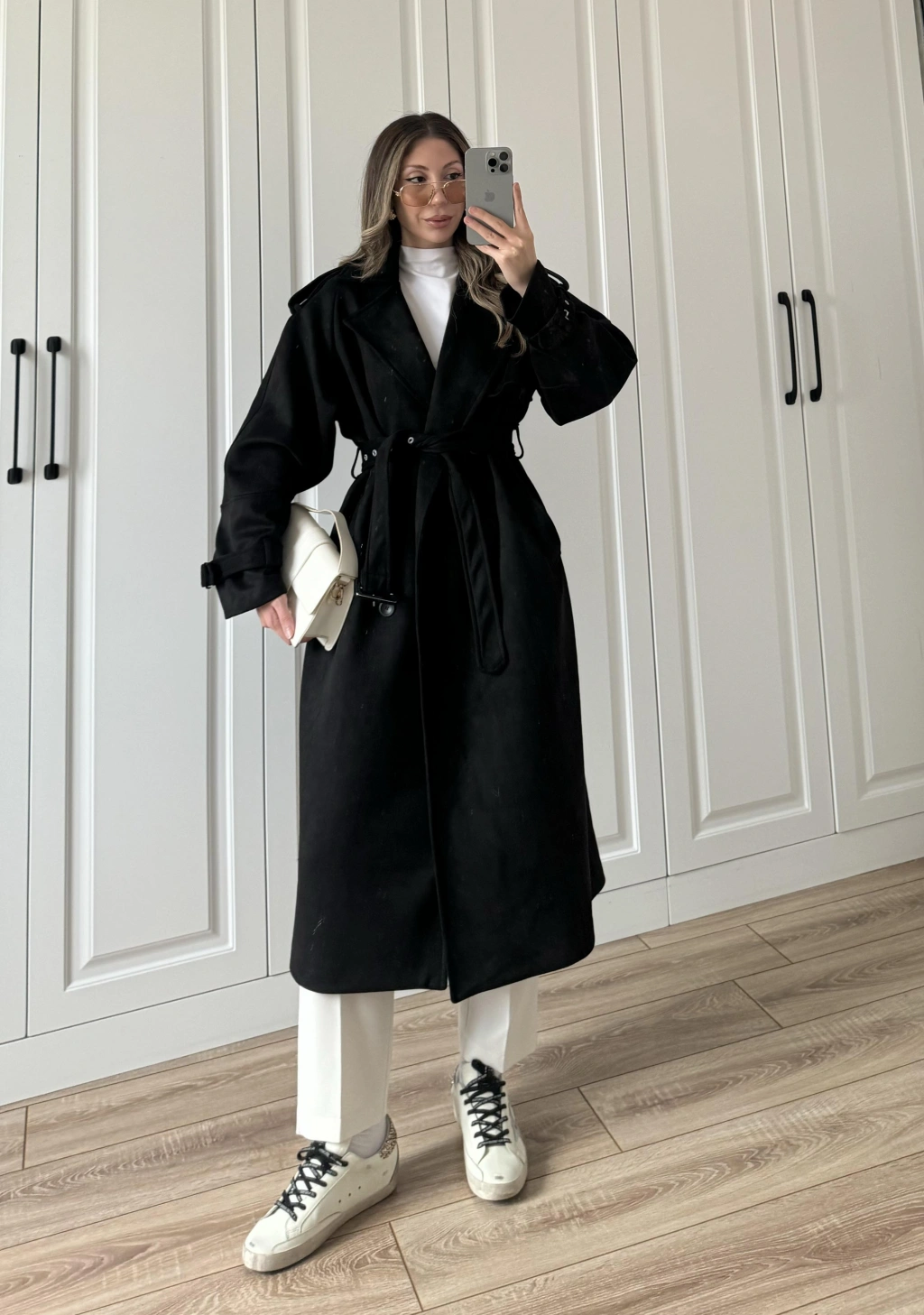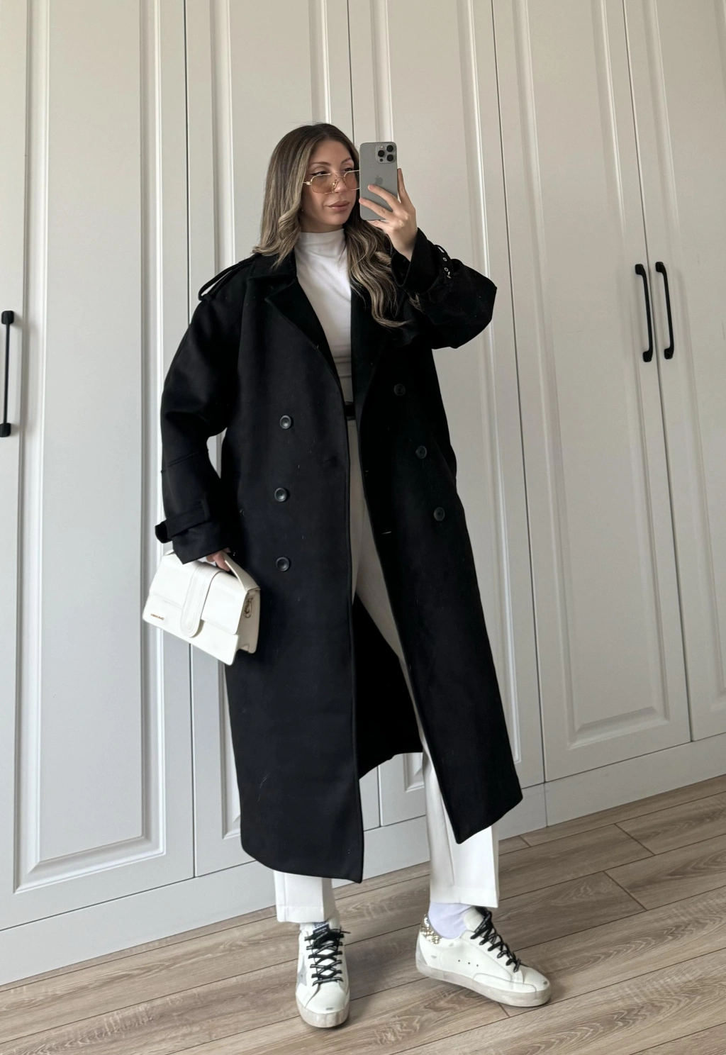 Fularlı Oversize Premium Siyah Trençkot