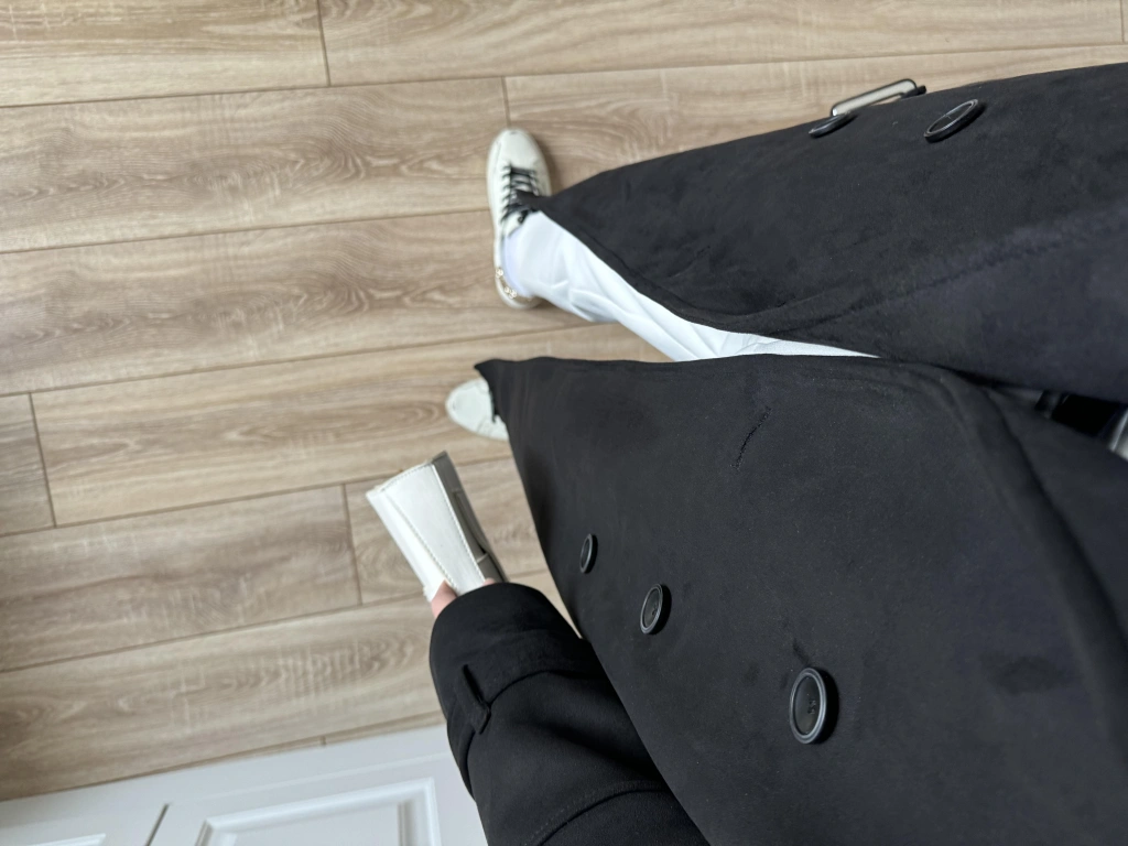 Premium Lux Kalite Astarlı Süet Siyah Trenç