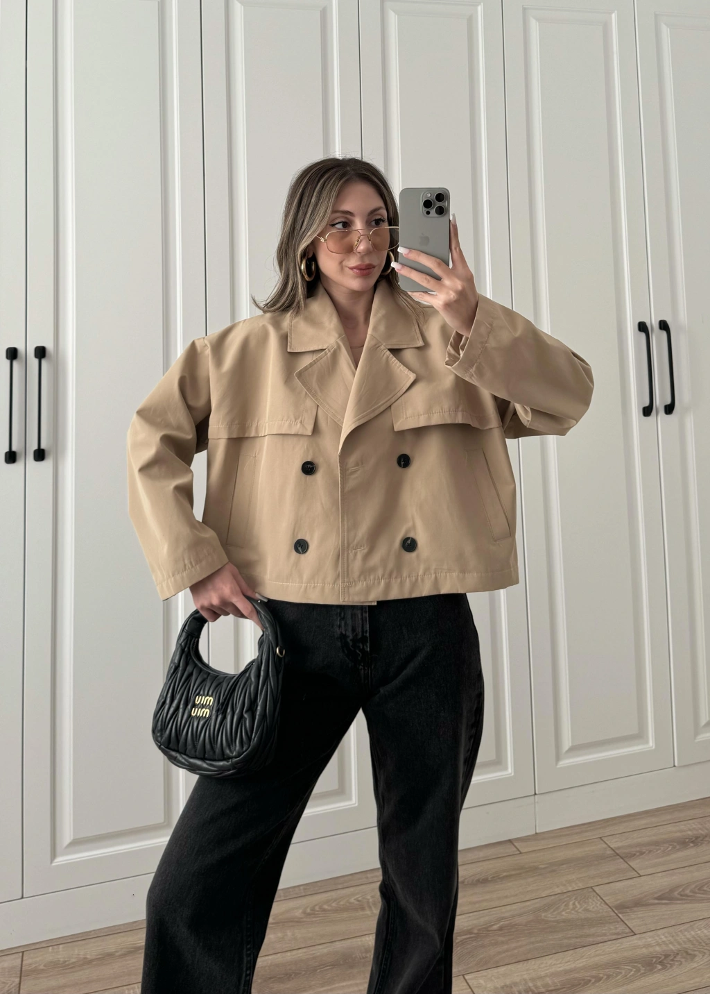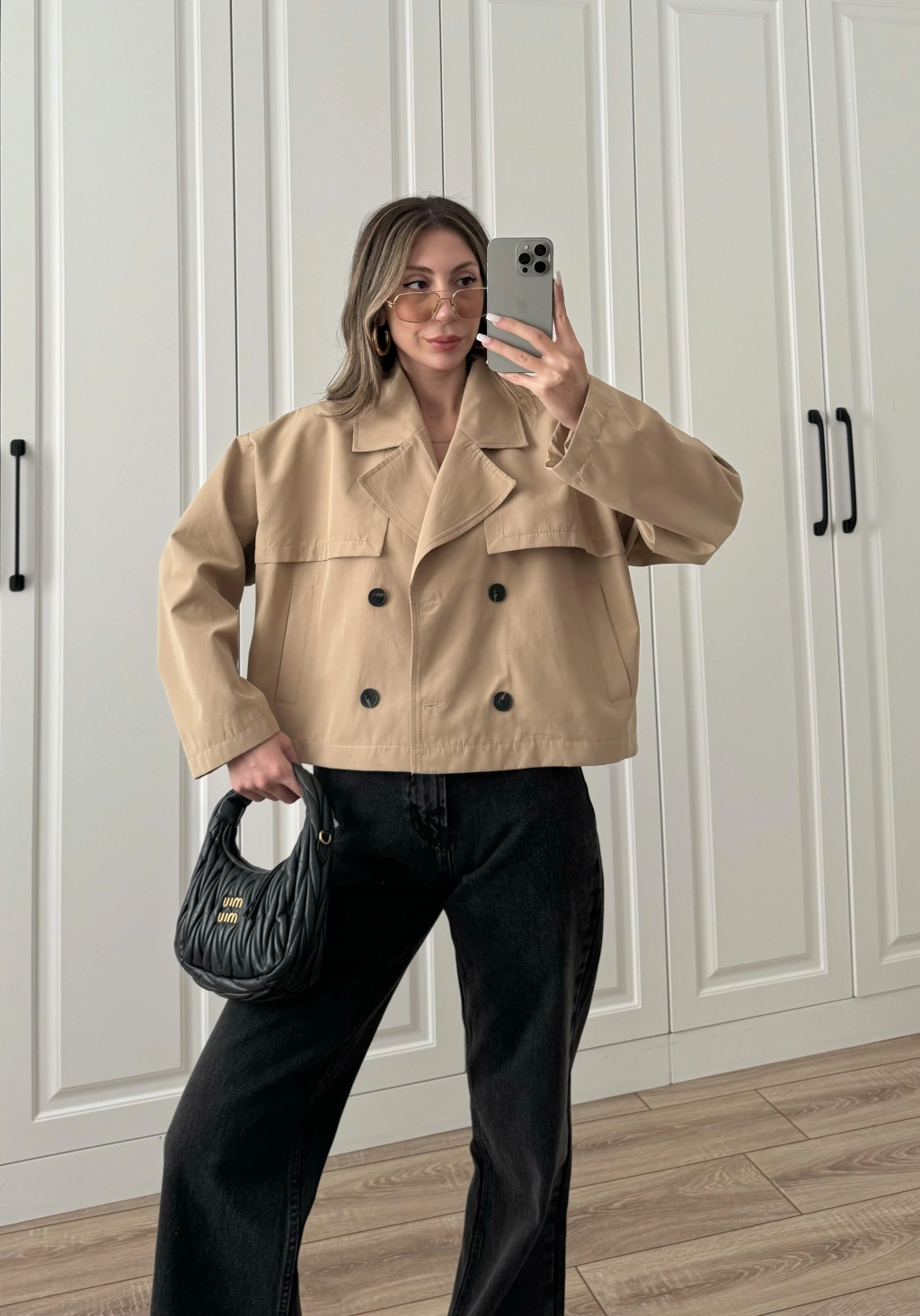Poem Kuşaklı Astarlı Oversize Bej Trençkot