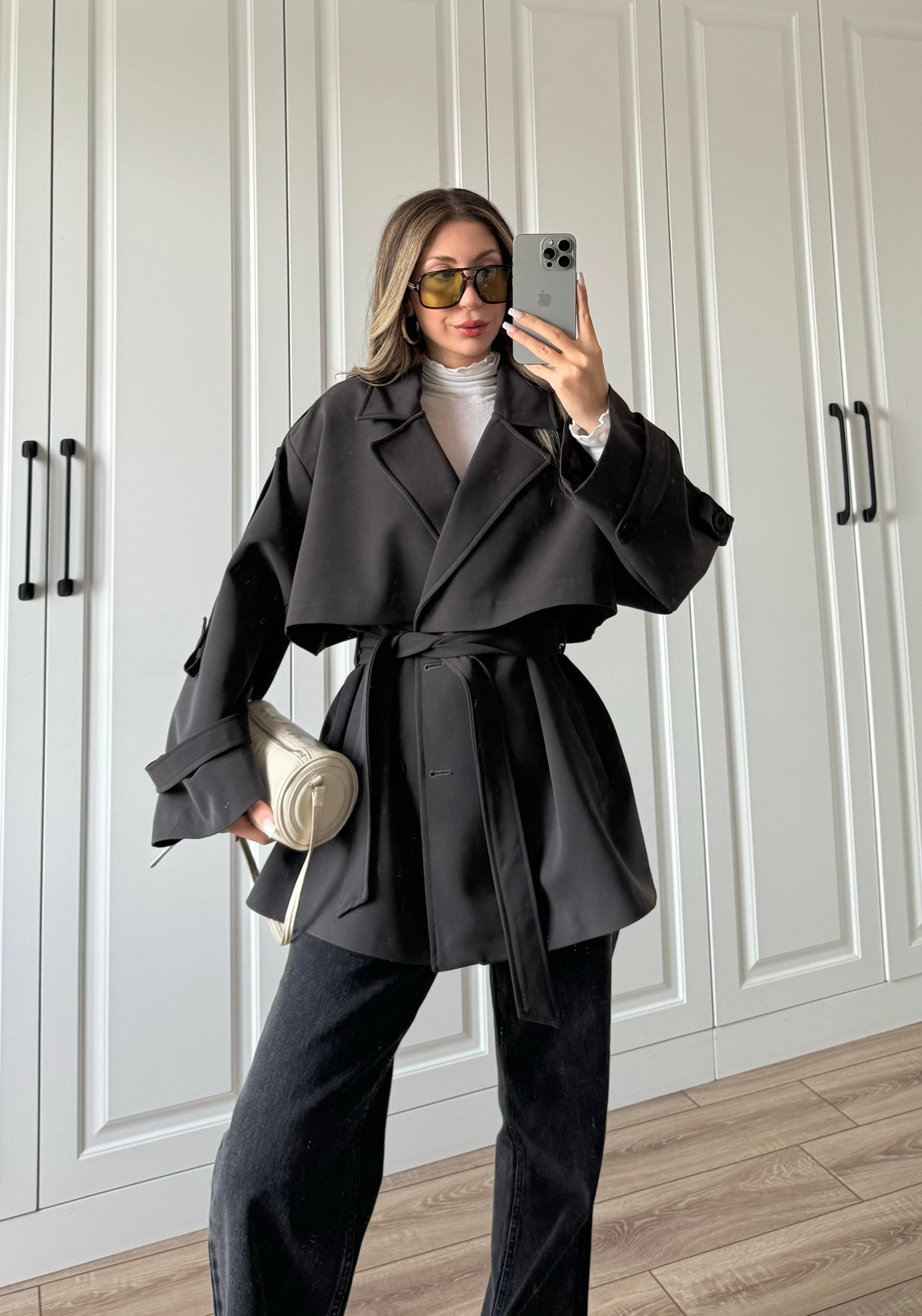 Rose Oversize Kuşaklı Koyu Kahve Trençkot