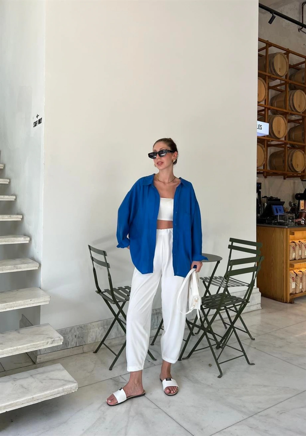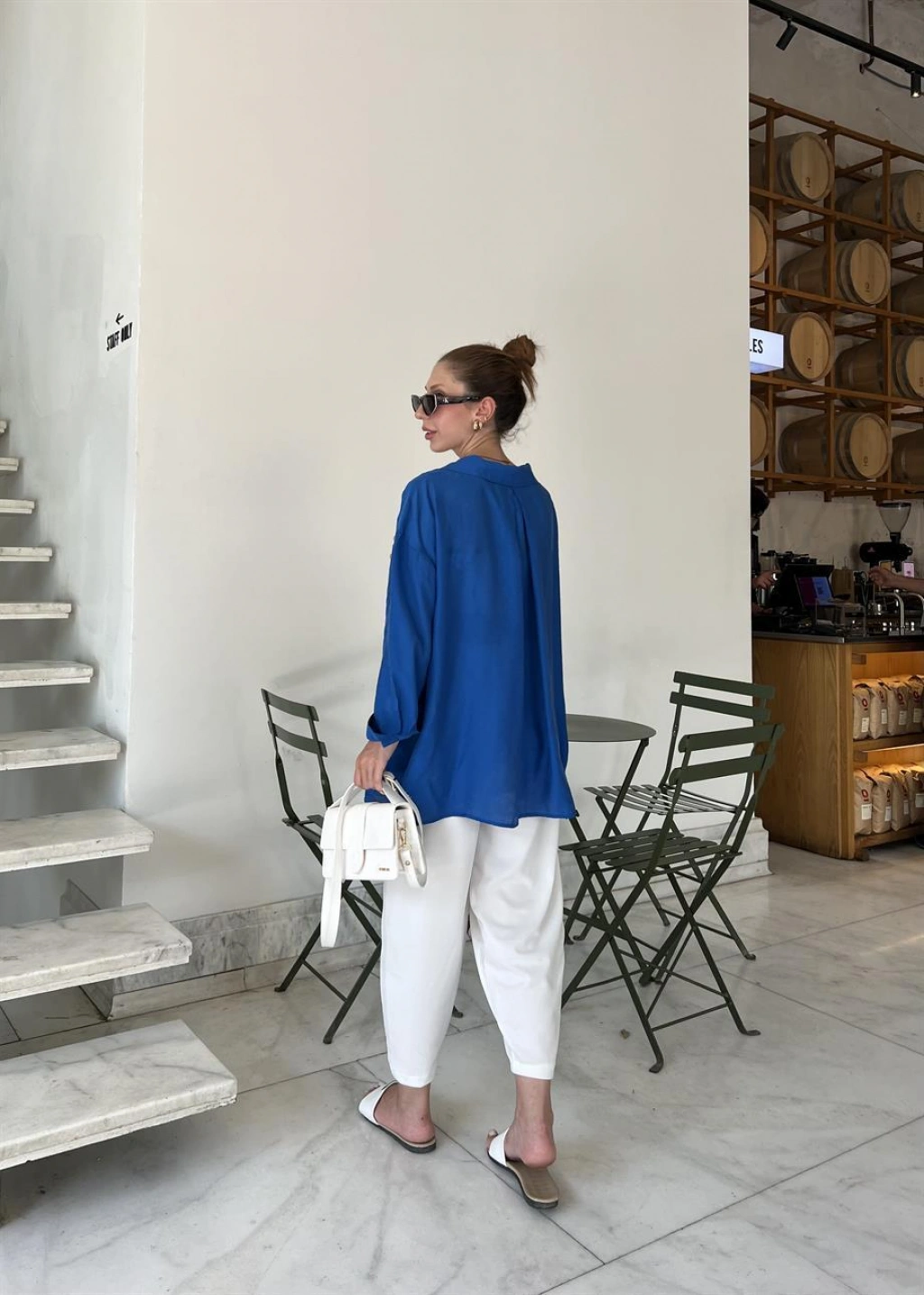 Yandan Düğmeli Çapraz Tasarım Beyaz Poplin Gömlek