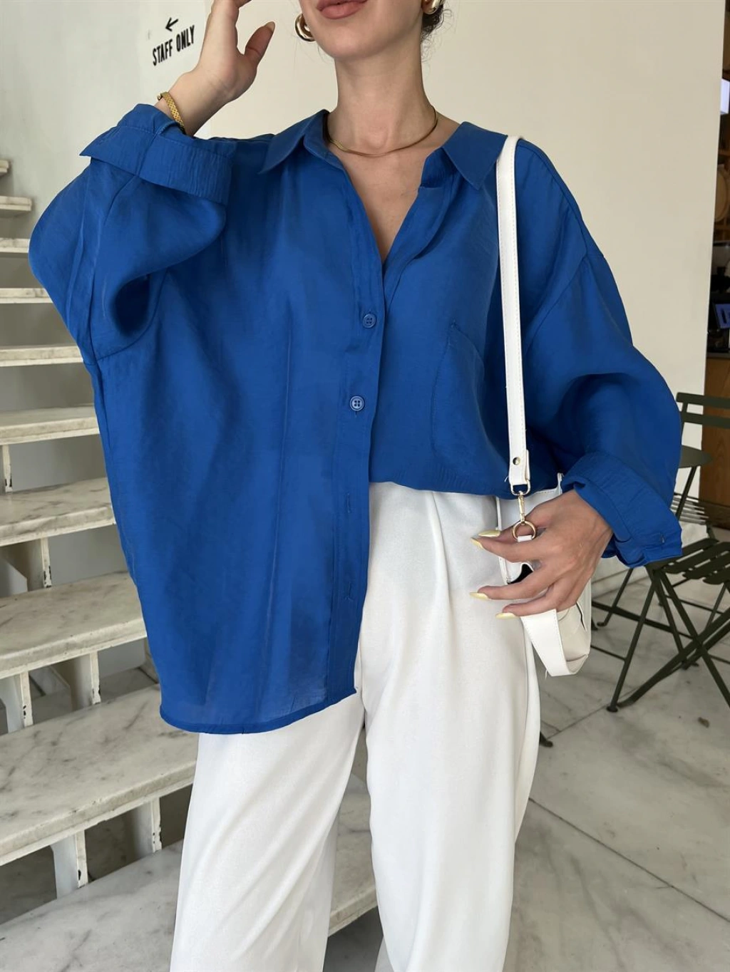 Sofi Düğmeli Oversize Kahve Crep Kumaş Gömlek