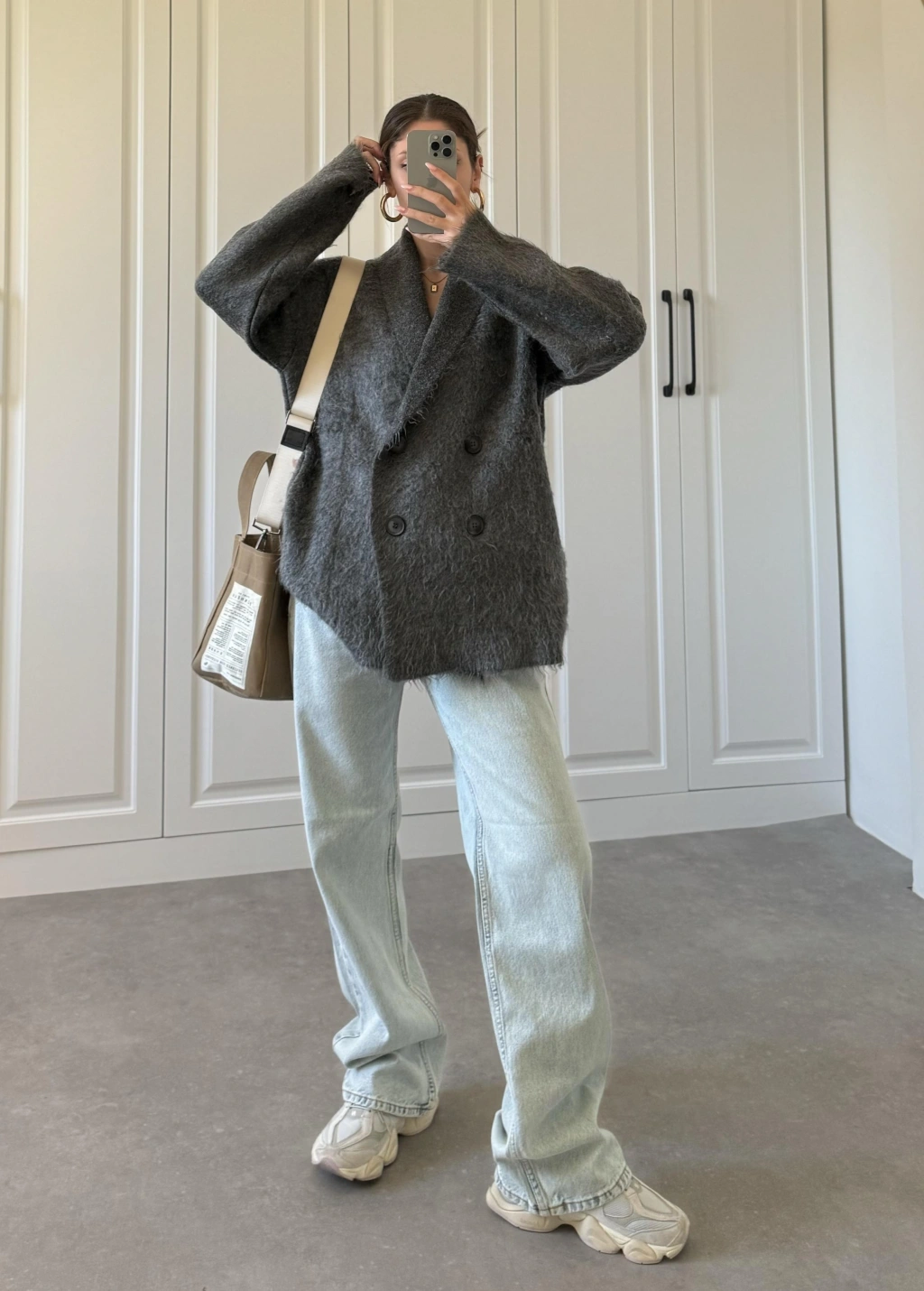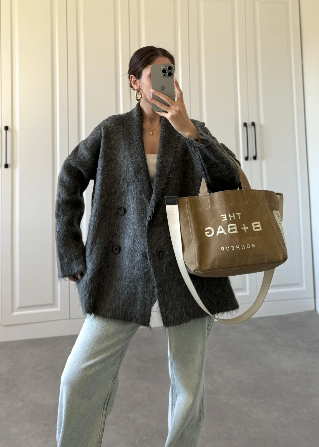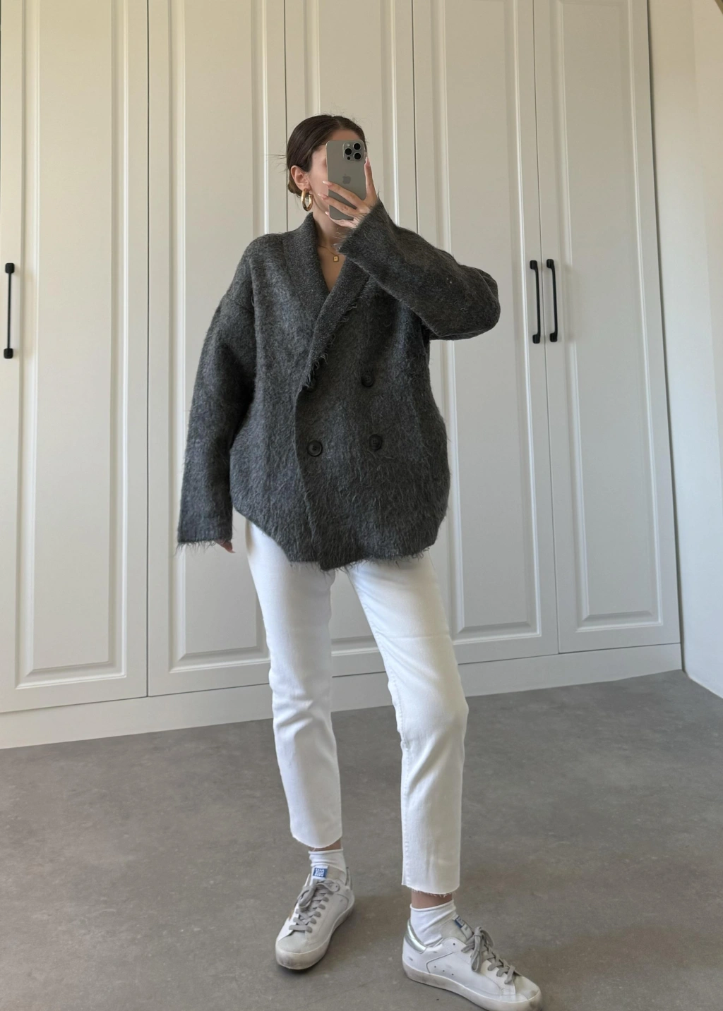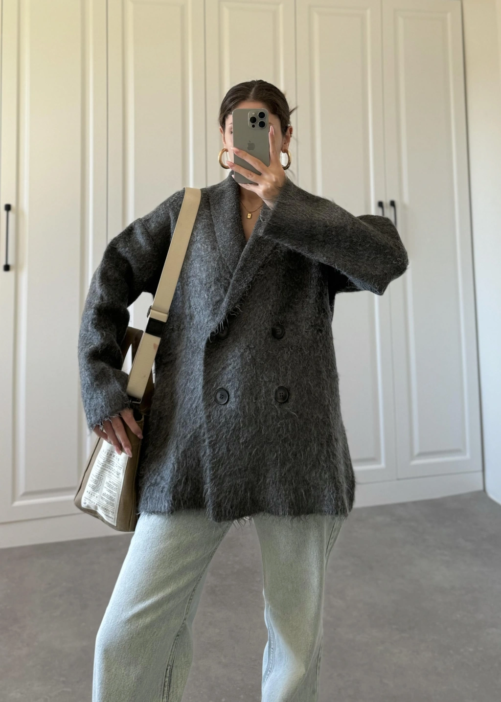 Şal Yaka Sakallı Premium Antrasit Hırka