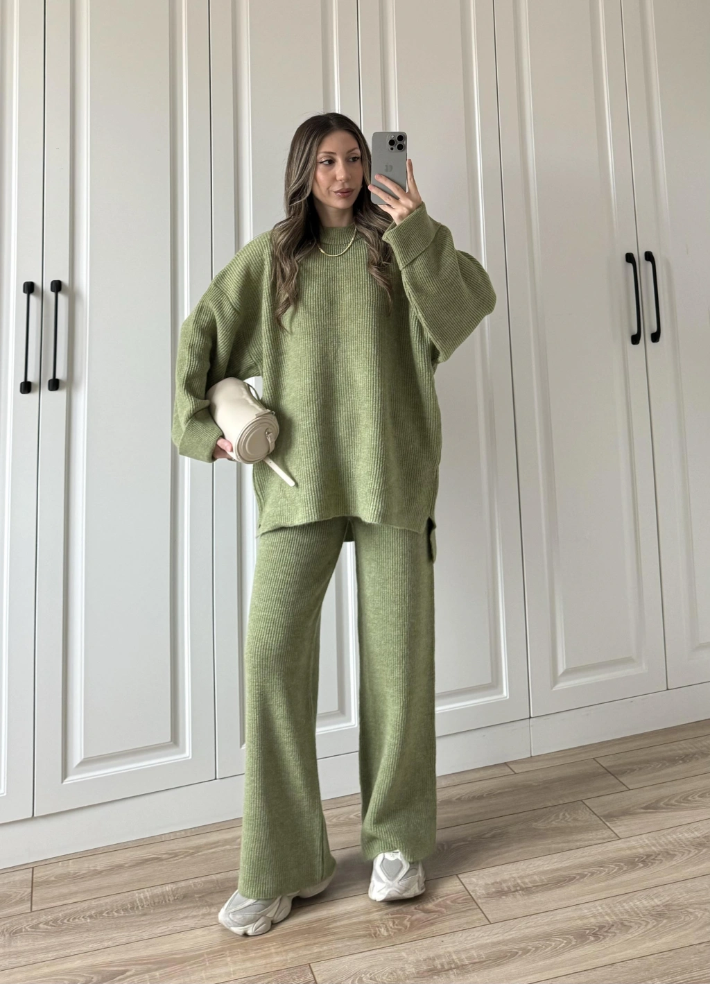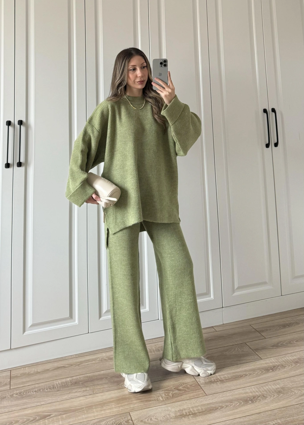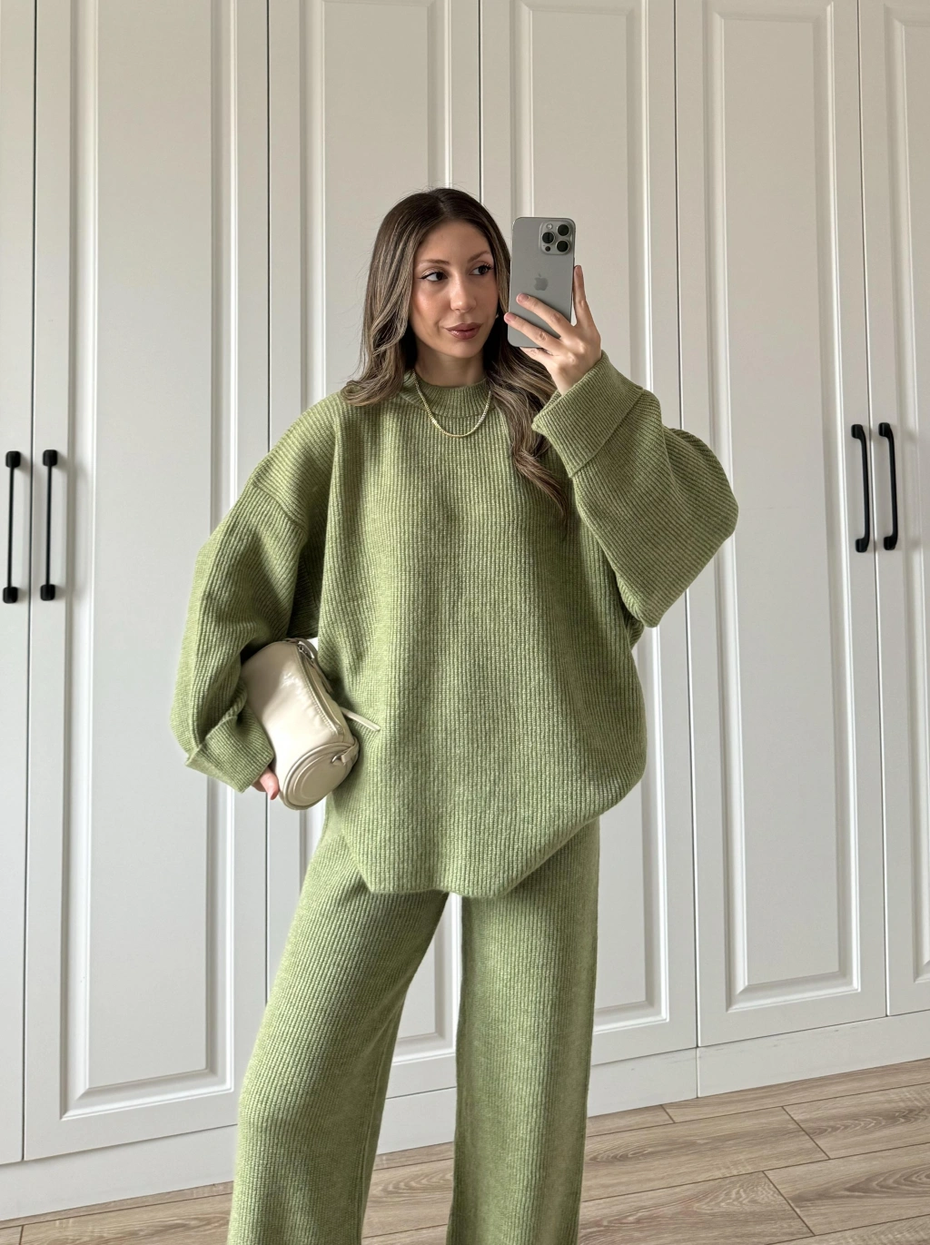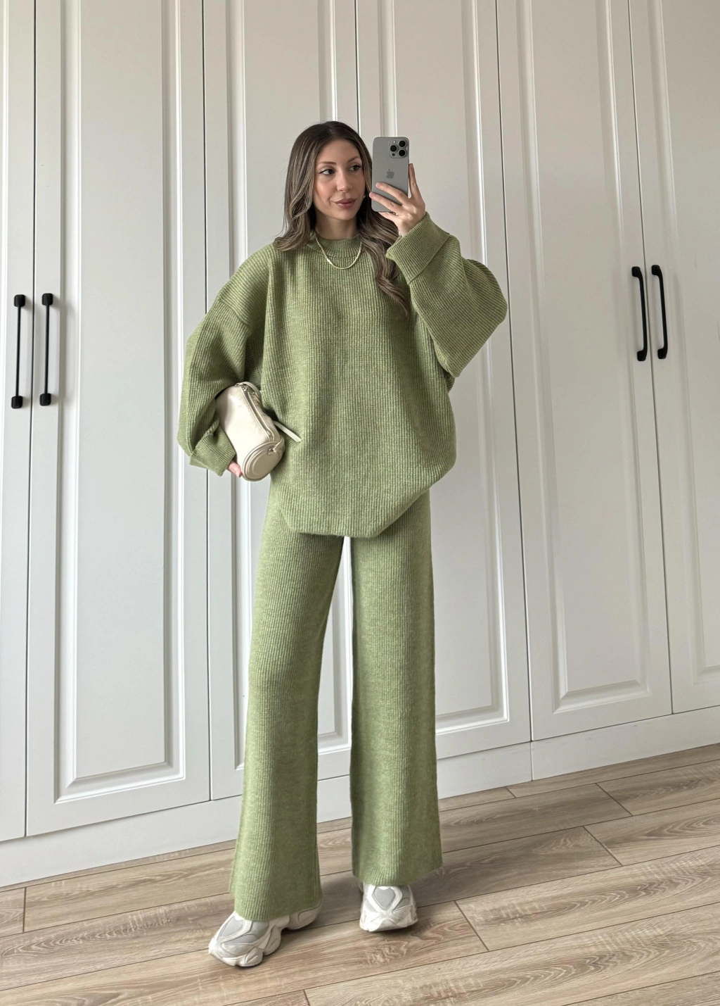 Sık Dokuma Tok Nude Yeşili Triko Takım