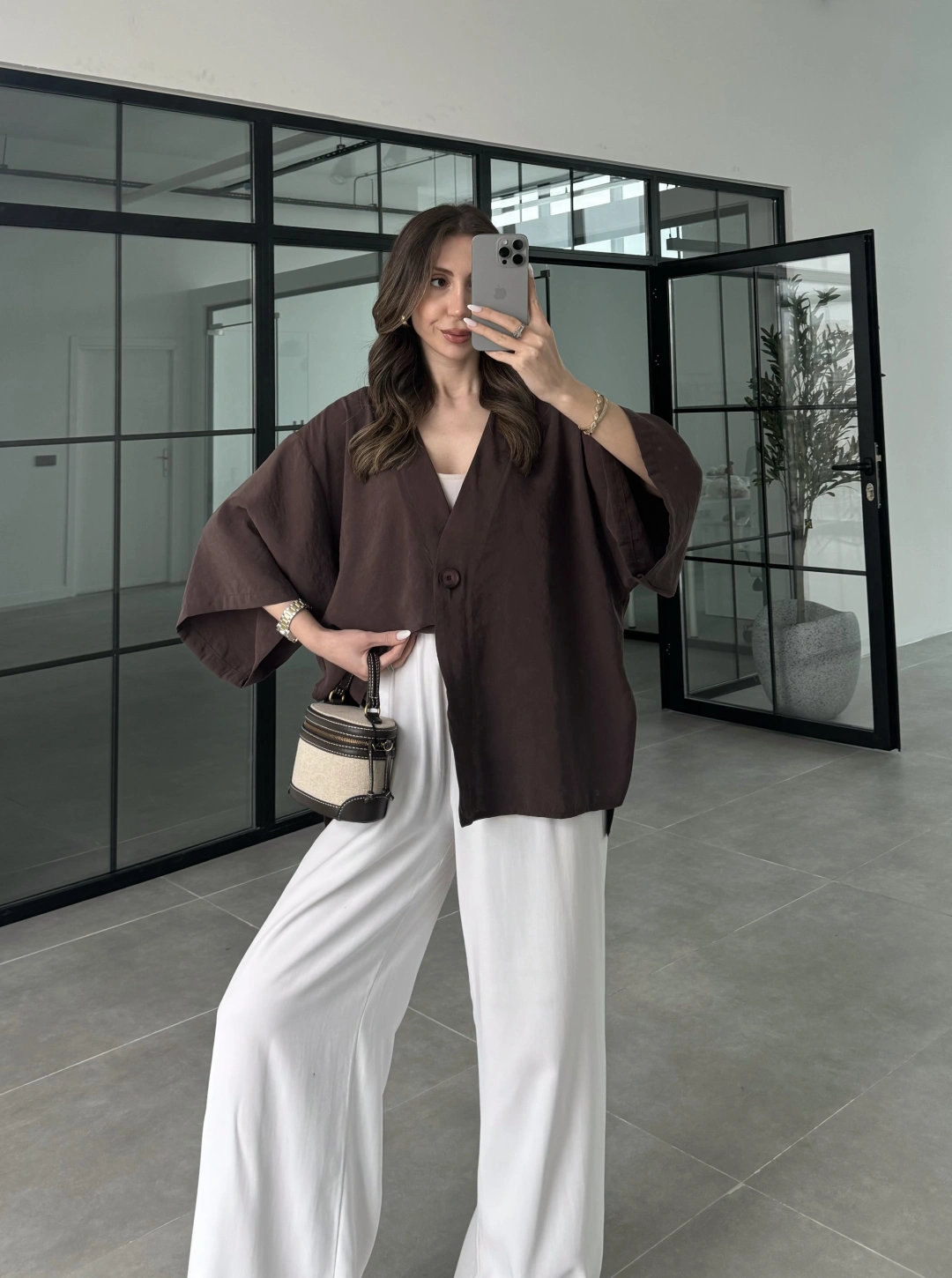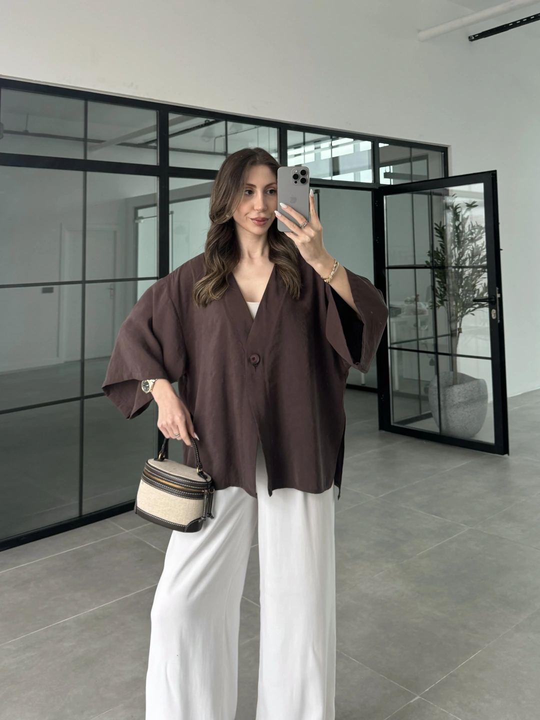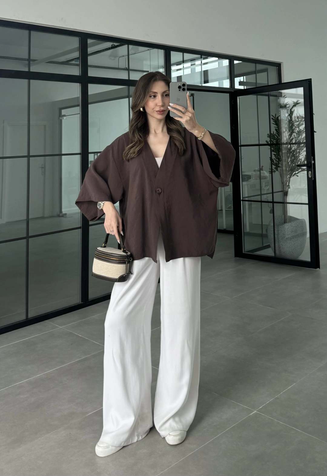 Sofi Tek Düğme Oversize Tensel Kahve Gömlek
