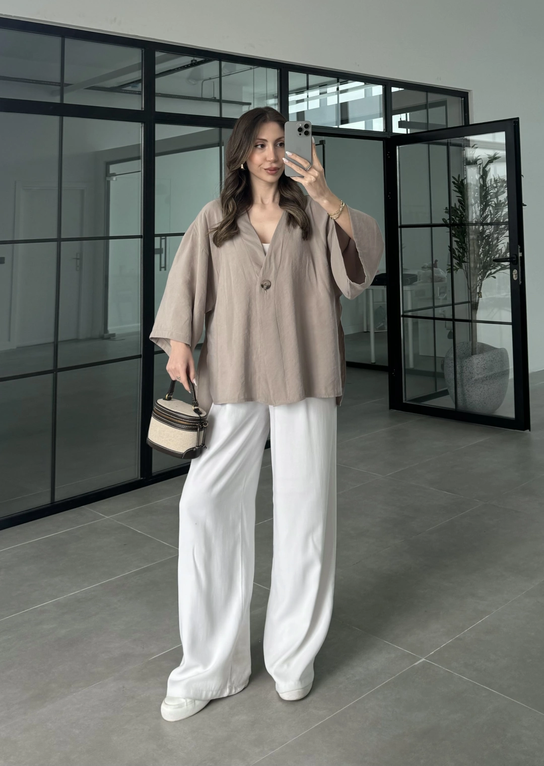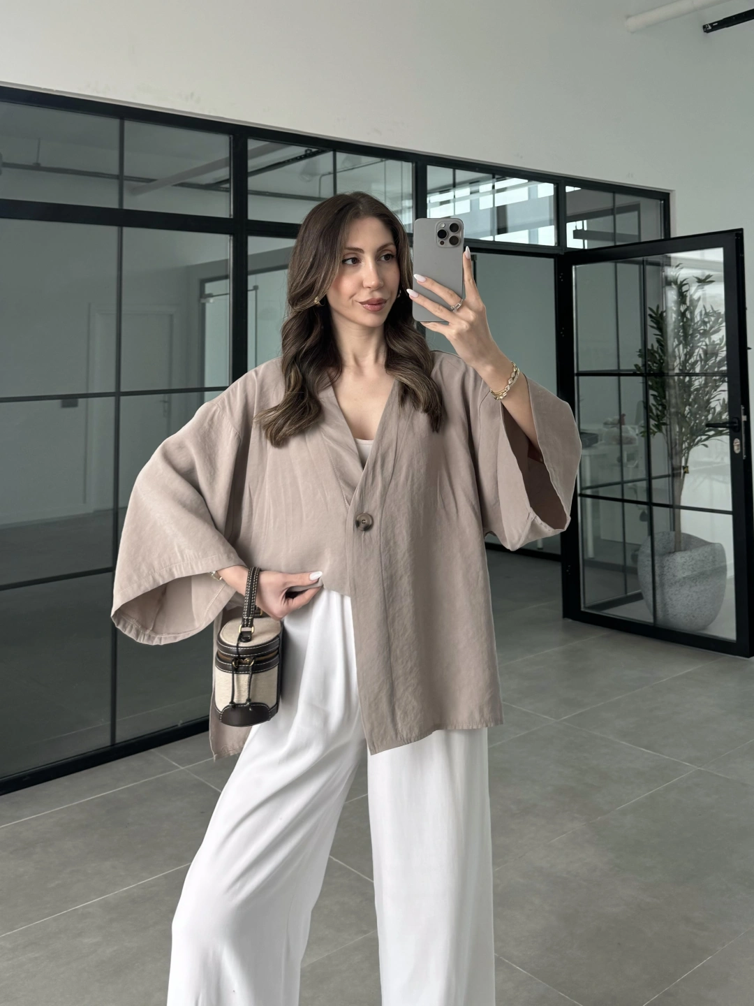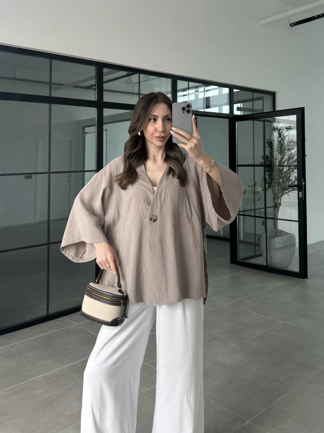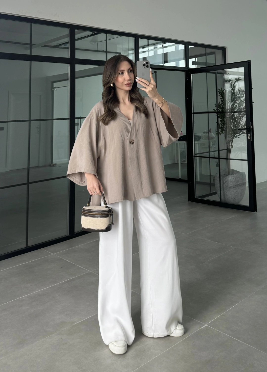 Sofi Tek Düğme Oversize Tensel Vizon Gömlek