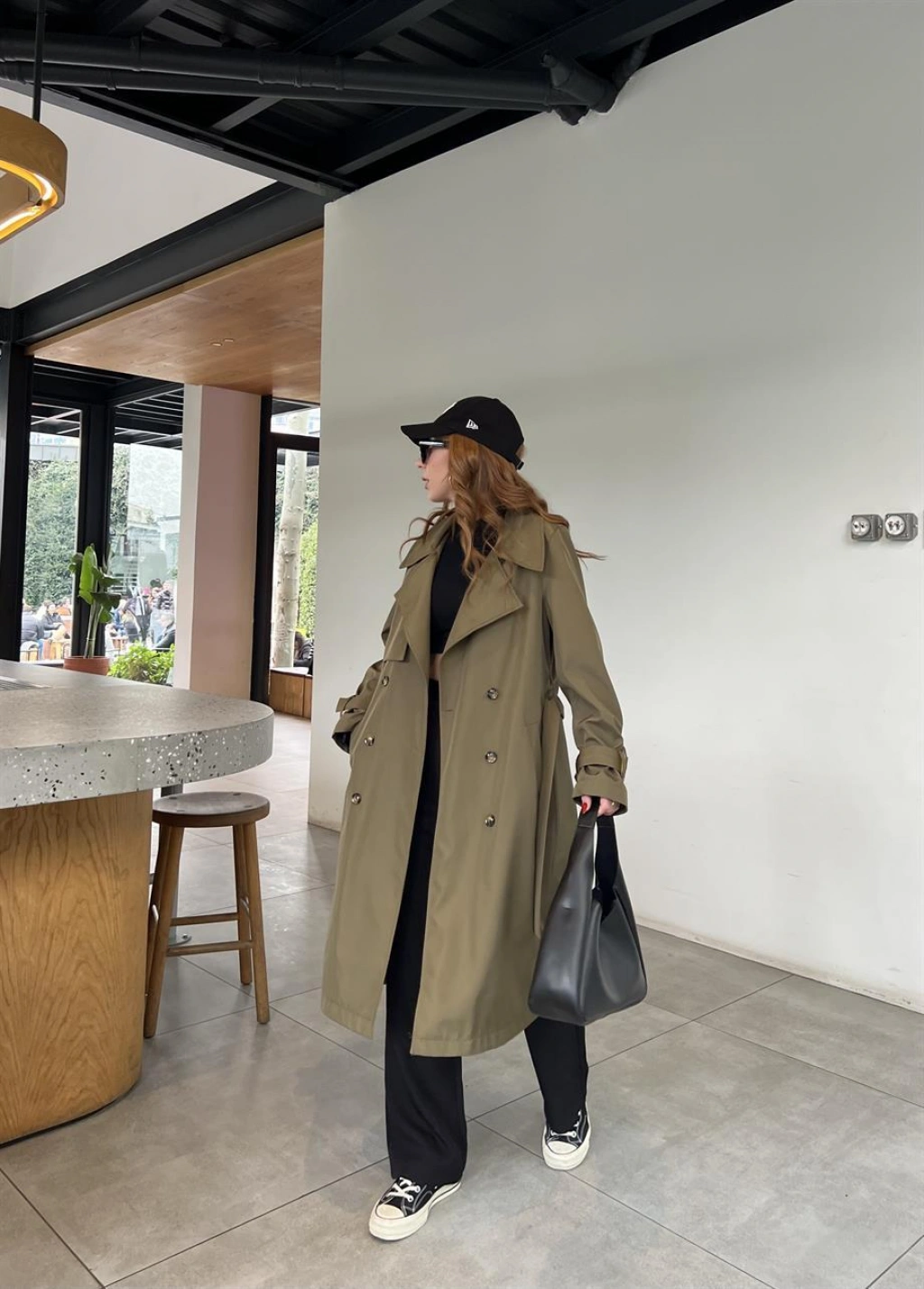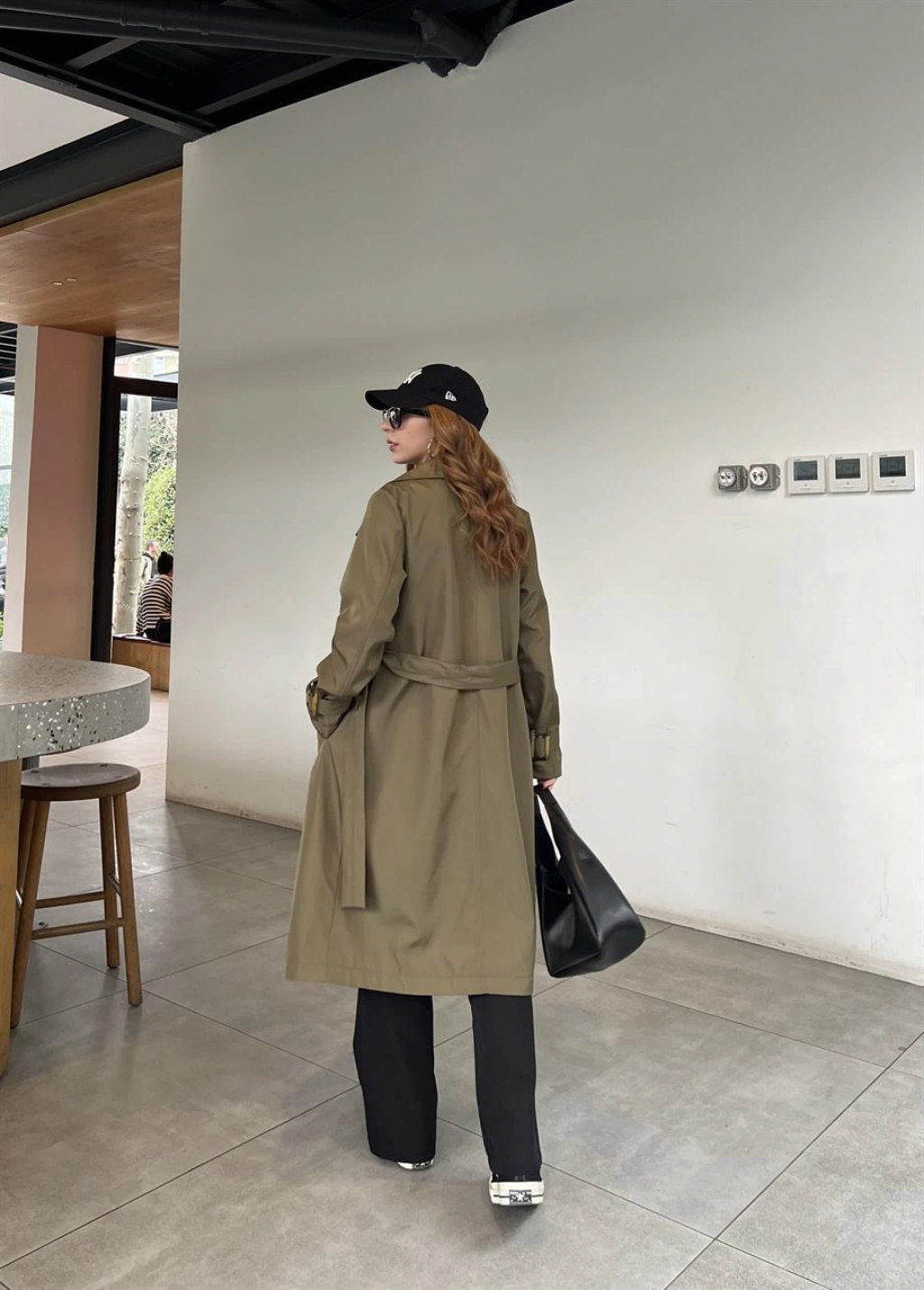 Aria Kuşaklı Astarlı Premium Haki Trençkot