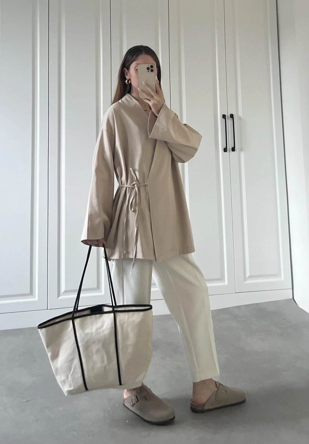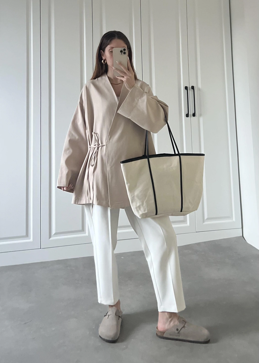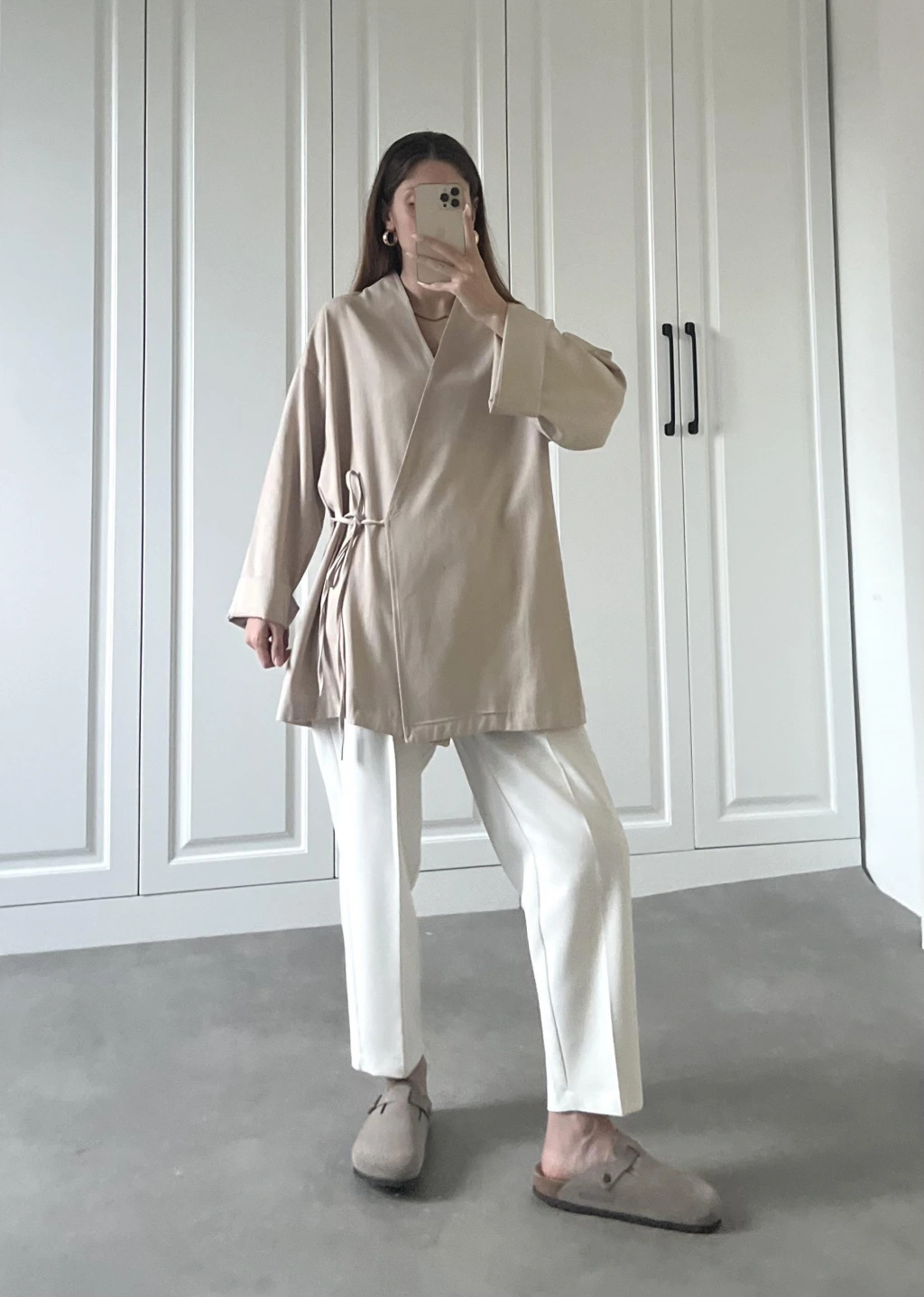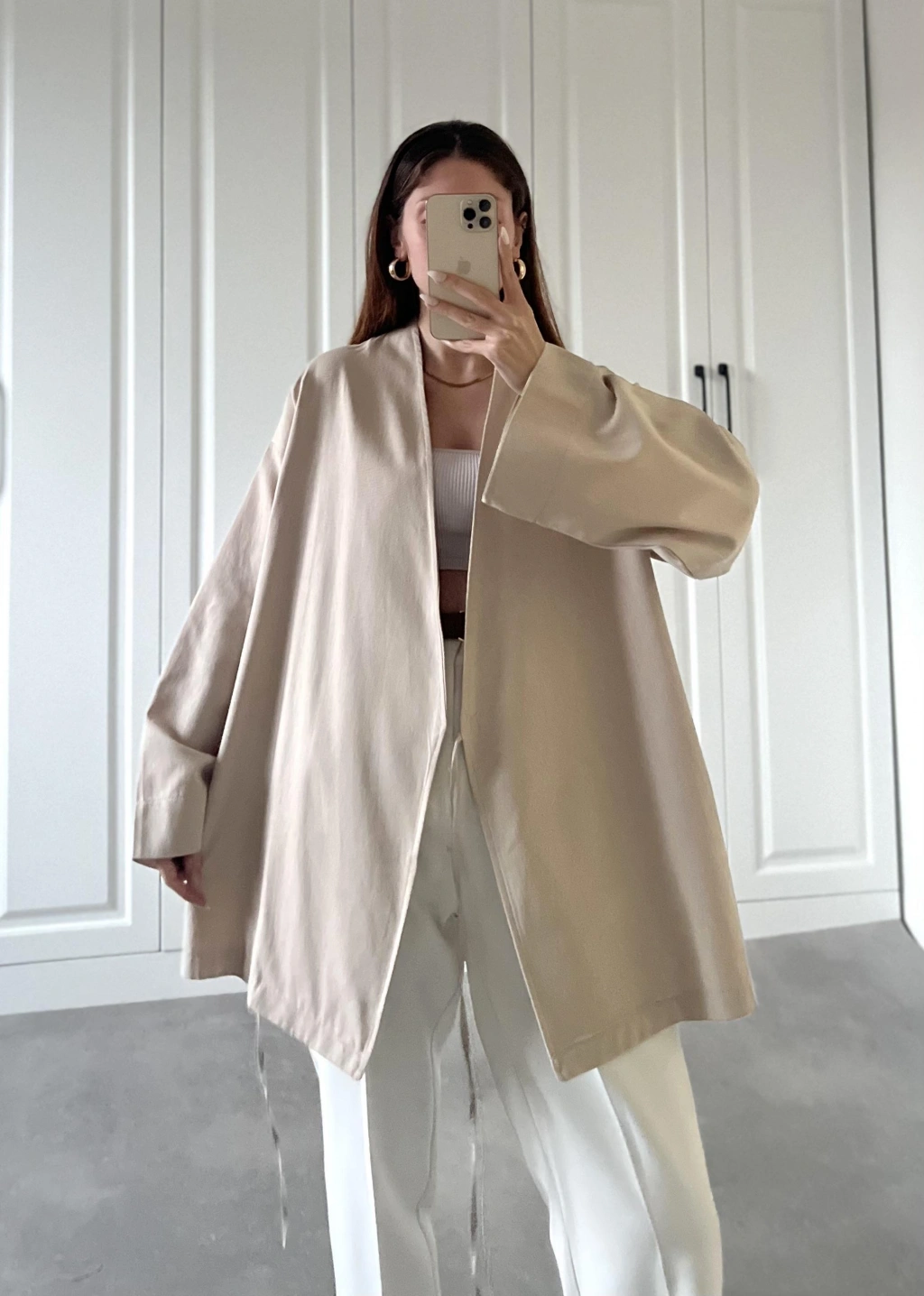 Cappuccino Yandan Bağlamalı Gabardin Kimono Ceket