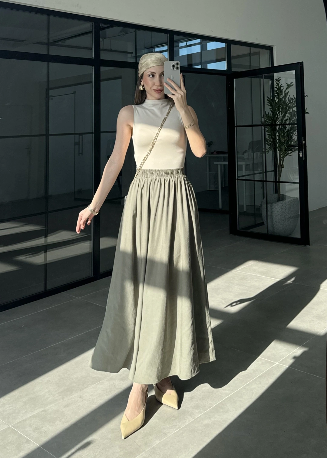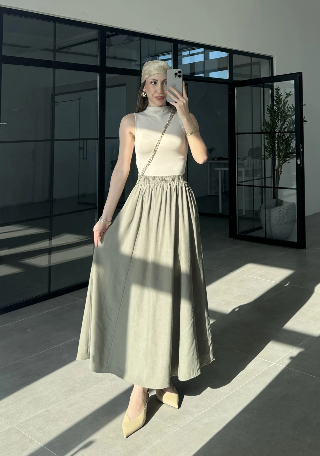 Tensel Beli Lastikli Haki Kilos Etek